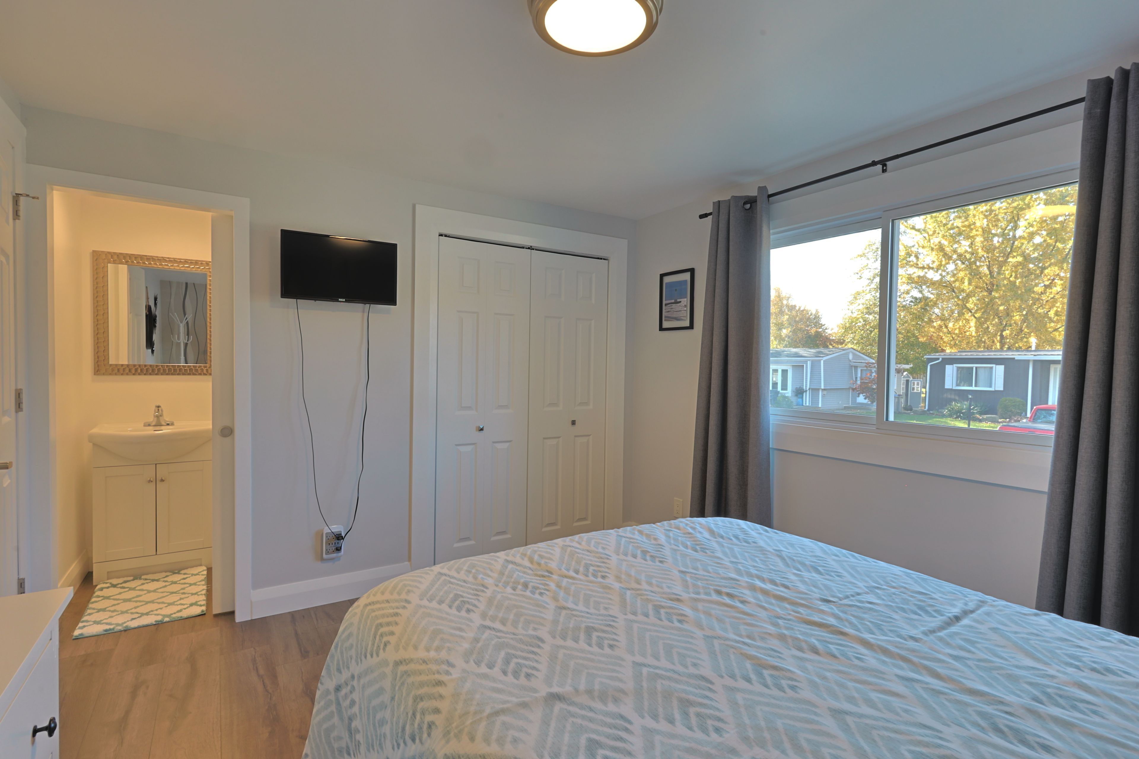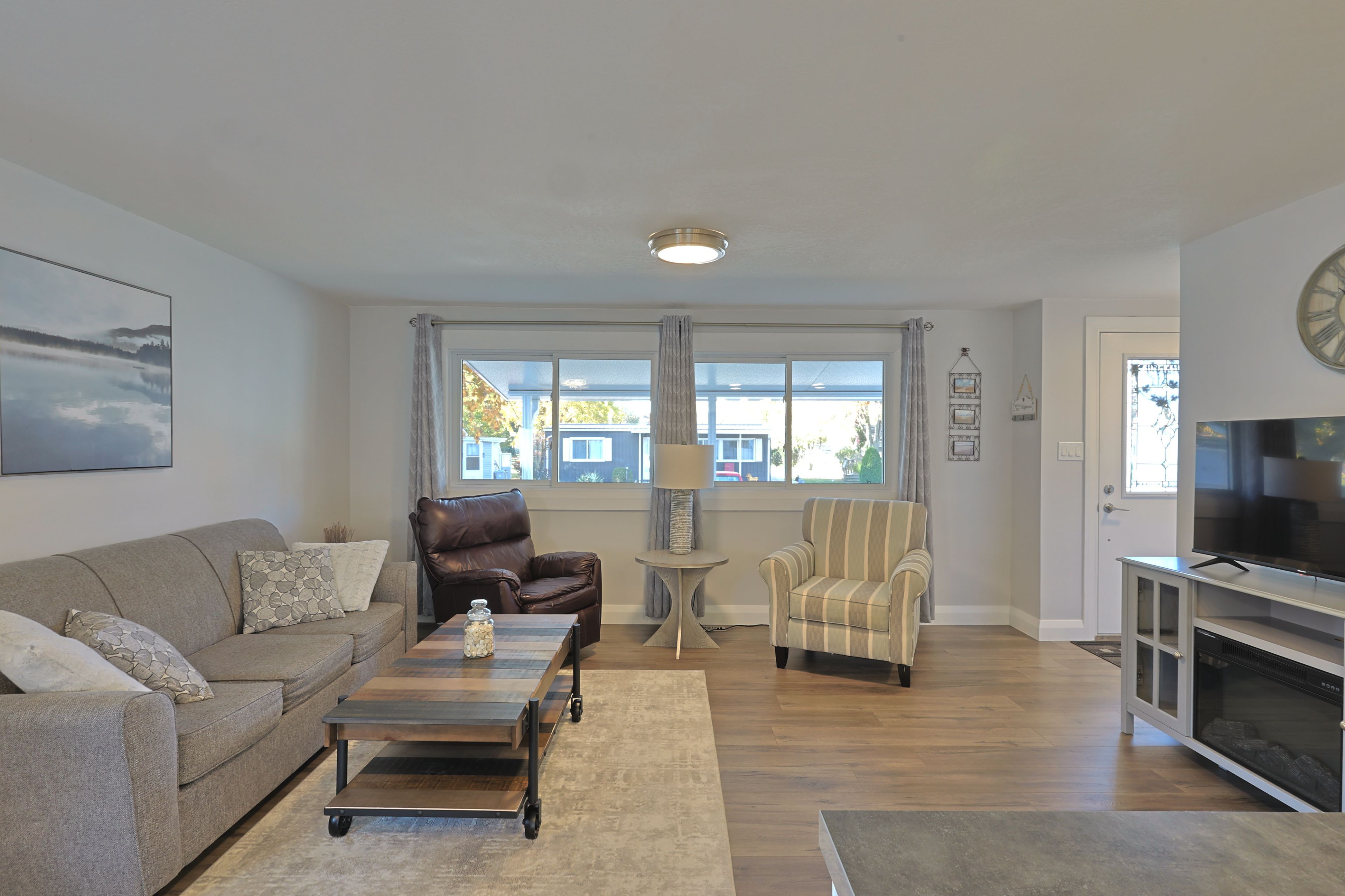 Extensively updated in 2022 with new floorplan allowing for open concept and two bathrooms! Welcome to 79 pebble beach parkway, grand bend in grand cove estates. Great curb appeal with newly painted exterior, low maintenance rock garden beds with only perennials and front covered porch. Home was extensively updated in 2022 from drywall walls/ceilings, flooring, kitchen, appliances, bathrooms and much more. Open concept floorplan with neutral colours throughout. Kitchen offers center island, newer appliances, tiled backsplash and more. Lots of windows throughout for lots of natural light! Bonus room is a great space to relax and kick back featuring a screen door to back deck. Primary bedroom with double closet and two piece ensuite. Floorplan also allows for another bedroom, full updated three piece bathroom with walk-in shower and laundry closet. Enjoy the updated back deck with space for patio furniture. Newer garden shed included to hold your garden tools and more. Grand cove estates is a 55+ land lease community located in the heart of grand bend. Grand cove has activities for everybody from the heated saltwater pool, tennis courts, woodworking shop, garden plots, lawn bowling, dog park, green space, nature trails and so much more. All this and you are only a short walk to downtown grand bend and the sandy beaches of lake huron with the world-famous sunsets. Monthly land lease fee of $865. 52 includes land lease, access to all amenities and taxes.