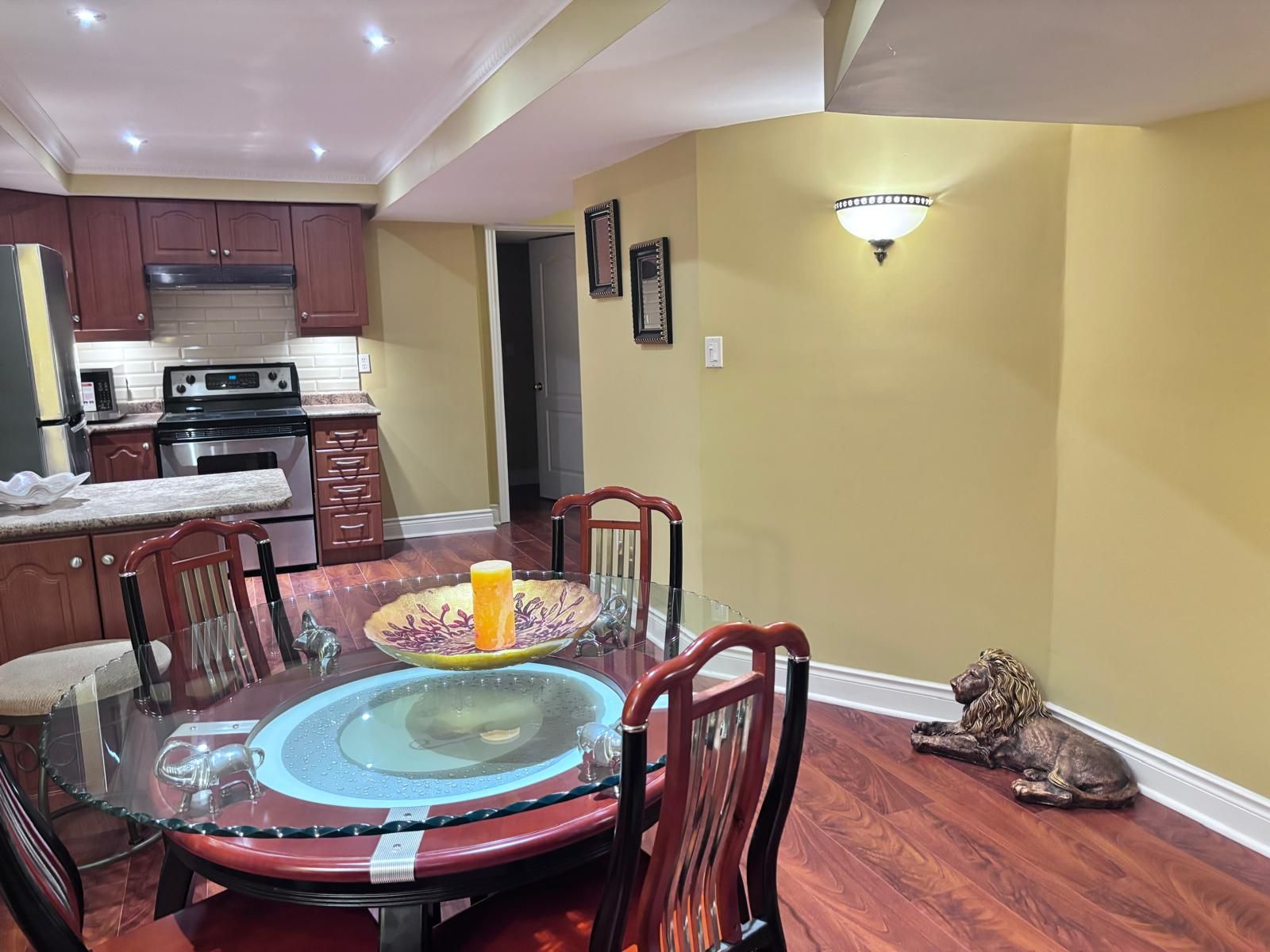 Beautiful newly constructed 3-bedroom basement suite, fully furnished and finished with hardwood flooring throughout. Exceptionally clean and very well maintained with a bright, functional layout and private entrance. Warm and cozy during winter months, making it an ideal living space all year. Comes with 2 parking spots and is situated in a peaceful neighbourhood roughly 50 minutes from the airport. Tenant is to pay 30% utilities.