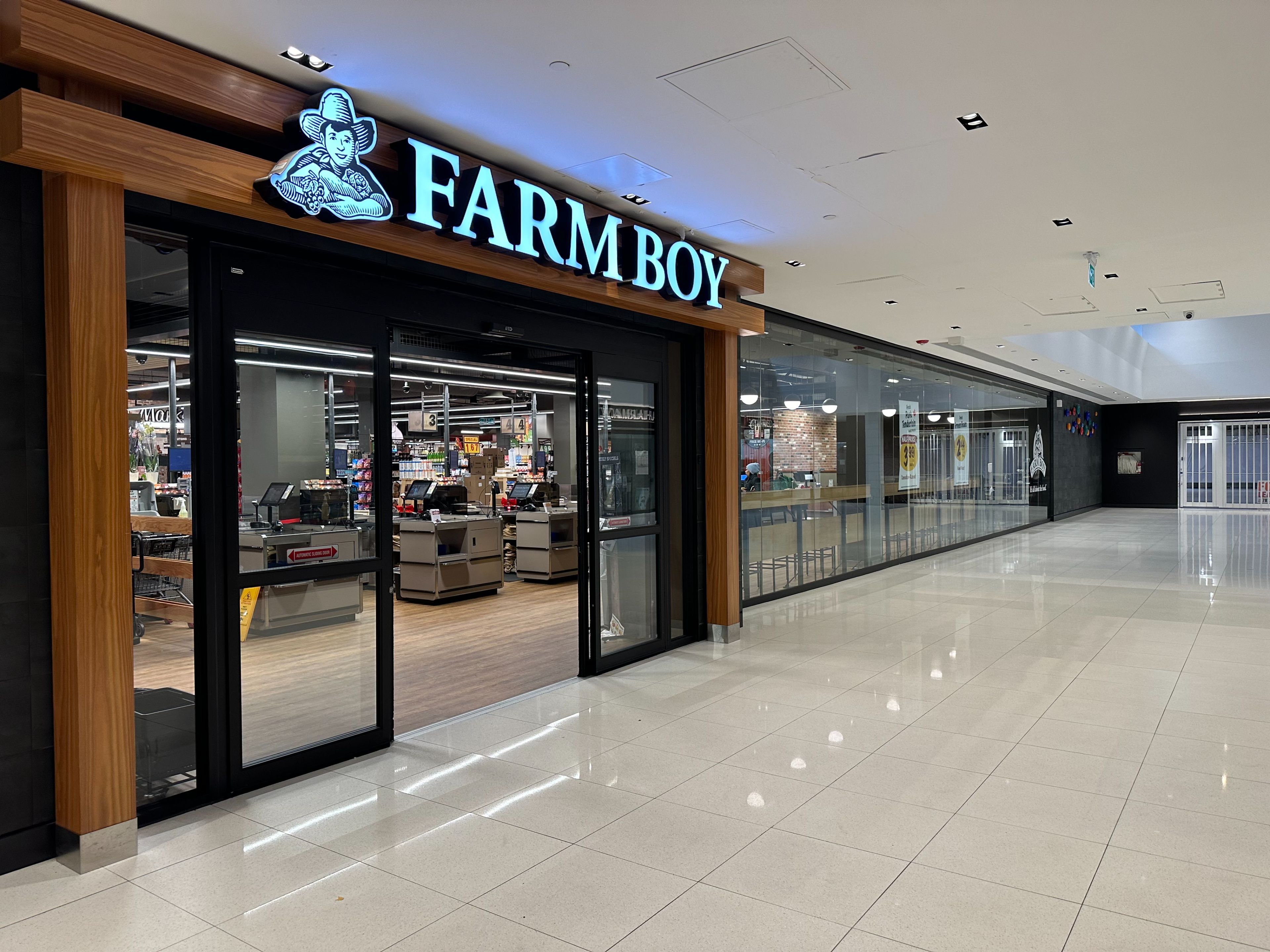 • Located above a busy grocery store and near a mall lobby.
