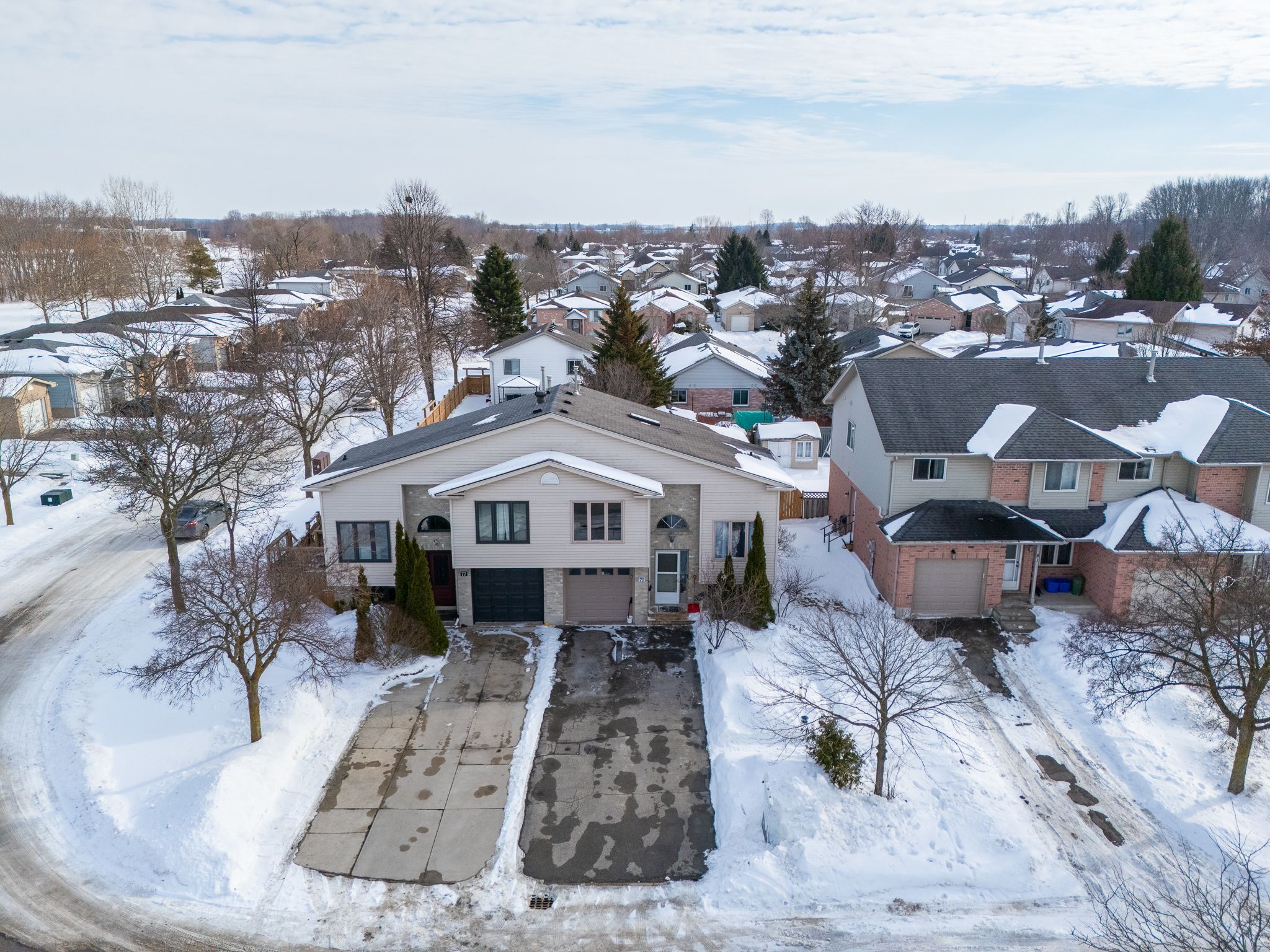This meticulously cared-for property is ready for its next chapter. Set in the highly desirable trafalgar heights neighbourhood, you're close to excellent schools, shopping amenities, fanshawe conservation area, parks, community centres, and have easy access to highway 401 for commuting. Inside, you'll find a fully carpet-free interior finished with modern laminate and vinyl flooring. Oversized windows, a soaring ceiling, and a skylight flood the home with natural light, giving it an airy, open feel. The upper level features a generous eat-in kitchen complete with stainless steel appliances, ample cabinetry and prep space, an updated four-piece bath, and three well-sized bedrooms. Just a few steps away, the open dining and family area offers a warm gas fireplace and overlooks the kitchen below - a great layout for hosting guests or keeping everyone connected. The lower level is set up as a self-contained in-law suite, offering its own kitchen, bedroom, full bathroom, and comfortable living space - ideal for extended family or added privacy. Thoughtfully finished, it also includes a dedicated laundry and storage area. With a separate covered entrance leading out to the stamped concrete patio and backyard, the space offers excellent flexibility for multi-generational living or income potential. Well-appointed, versatile, and truly move-in ready, this home stands out for its layout, location, and opportunity.
