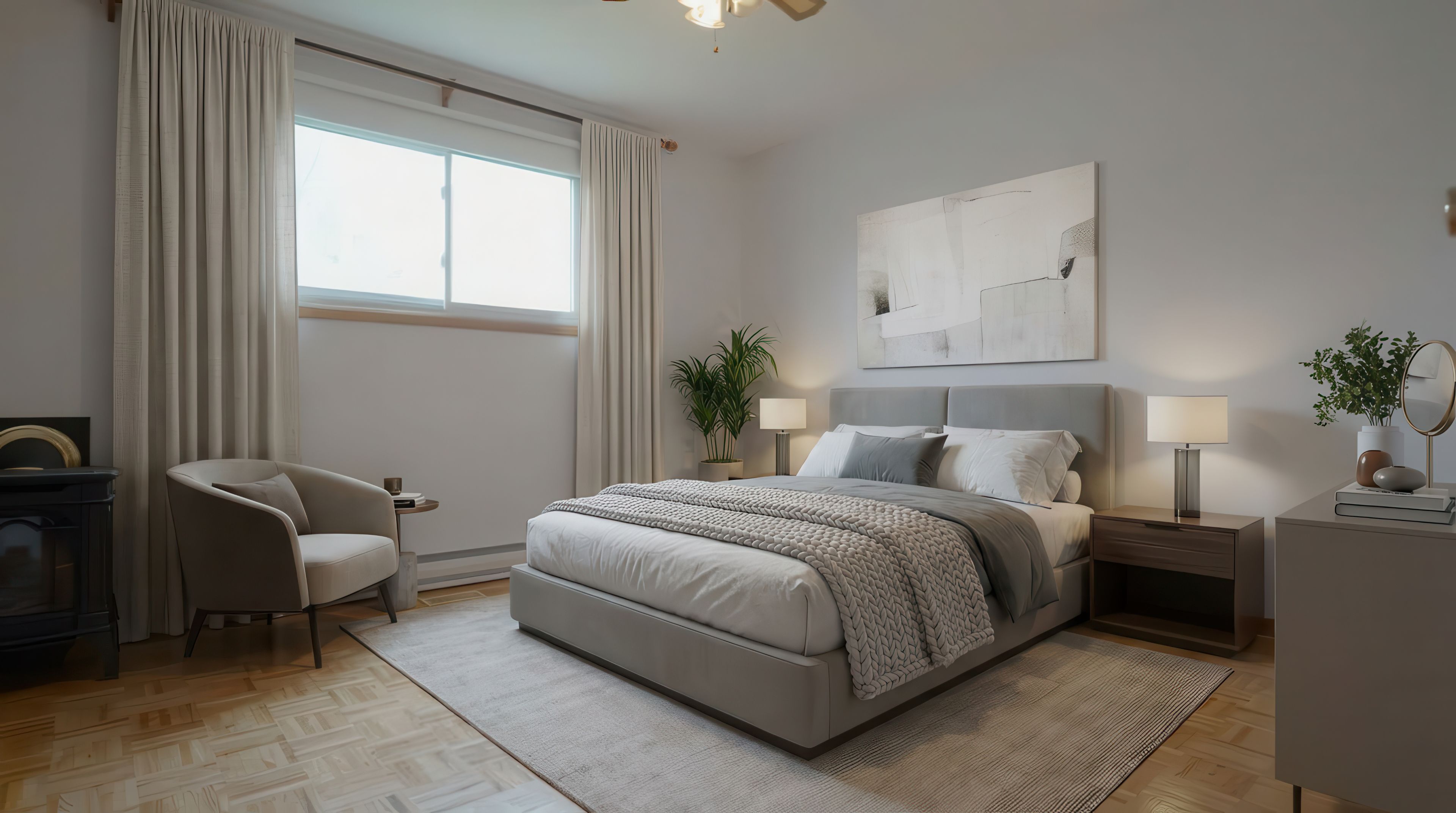 • Cozy primary bedroom with a gas fireplace for comfort.
