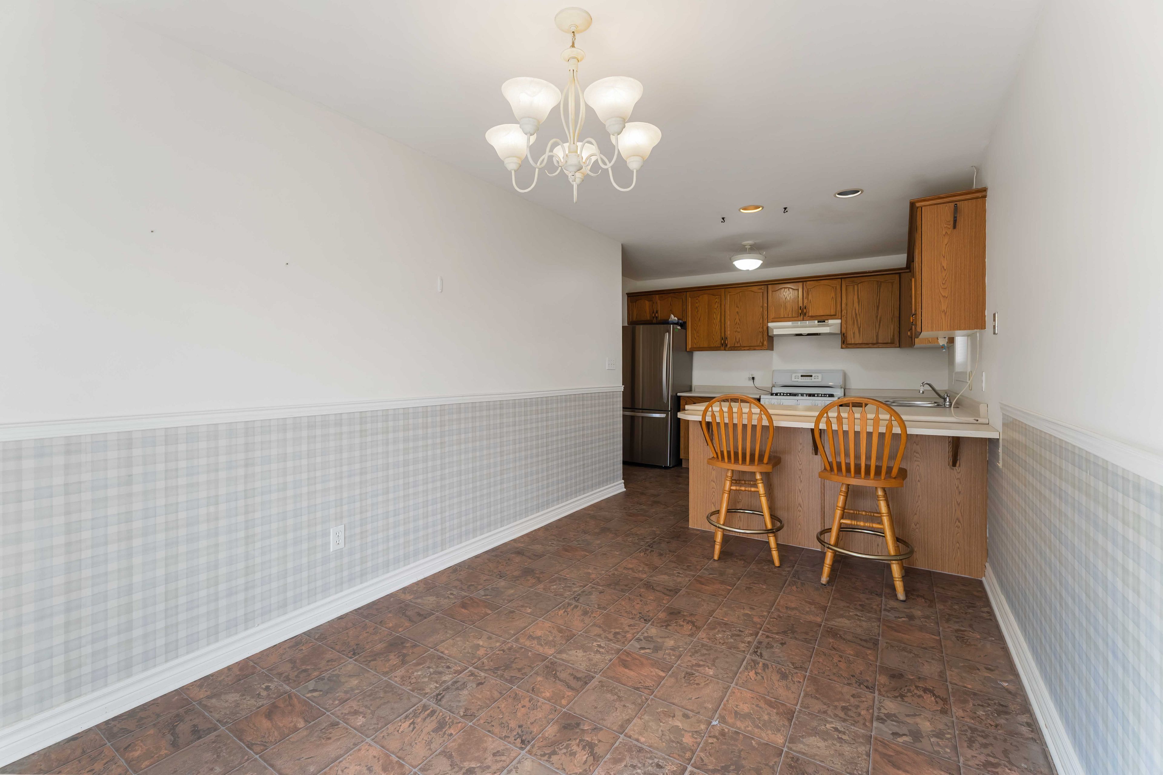• South-facing kitchen with ample cupboards and included breakfast bar.