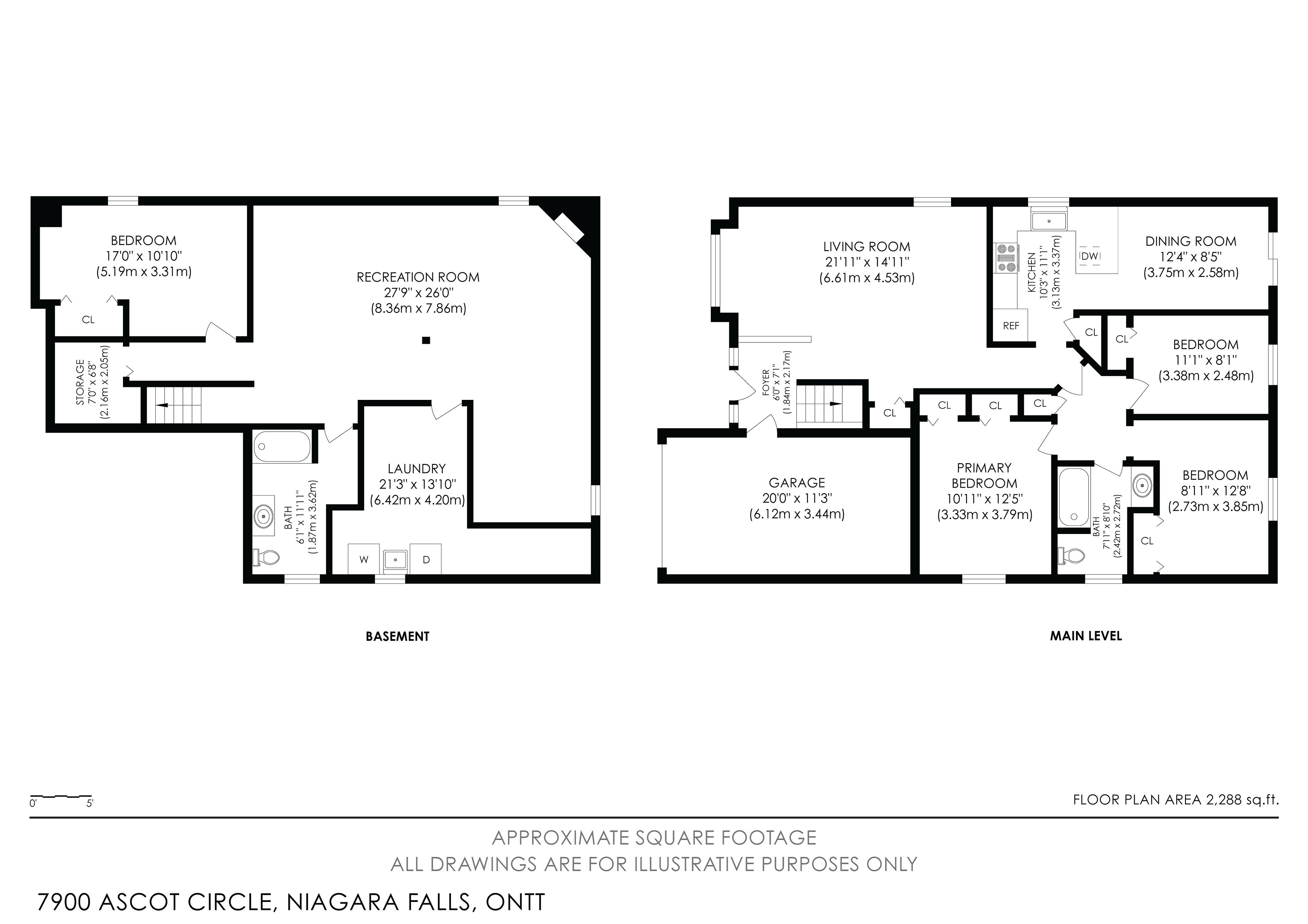 Welcome to 7900 ascot circle. This lovely 3 + 1 bedroom home has been well cared for an nicely updated over the years. Nice curb appeal leads up to the front concrete drive has parking for four cars with attached single garage with inside entry. Enter into the foyer and front living room with plenty of light and large north facing window - option of making a combo open concept living/dining space or just extra large living room. The 3 bedrooms and main floor bath are somewhat private at the southwest rear with a separate door - great for families and noise reduction. South facing kitchen/dining room with lots of cupboards and breakfast bar, stools included. Sliding doors from the dining room lead to the lovely rear yard and gardens and two tier deck with covered area. Storage shed at the rear of the property as well. Downstairs is fully finished with an large open l shaped family/rec room with gas fireplace, 4th bedroom, 2nd full 4 piece bath, and laundry utility room. Also a handy storage room under stairs with sump pump. Convenient north niagara falls location, close to schools, parks, shopping, bus route and highway access. Great home in a great neighbourhood- make arrangements to view for yourself.