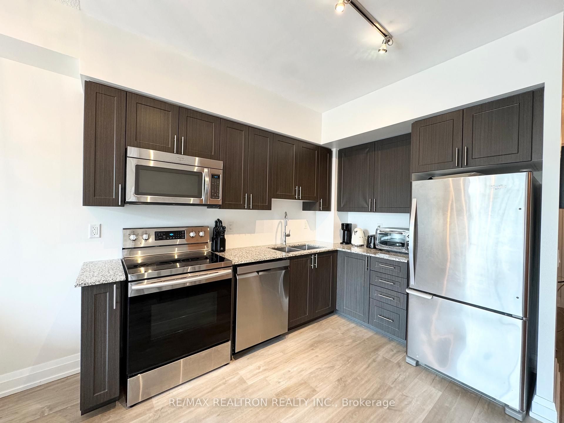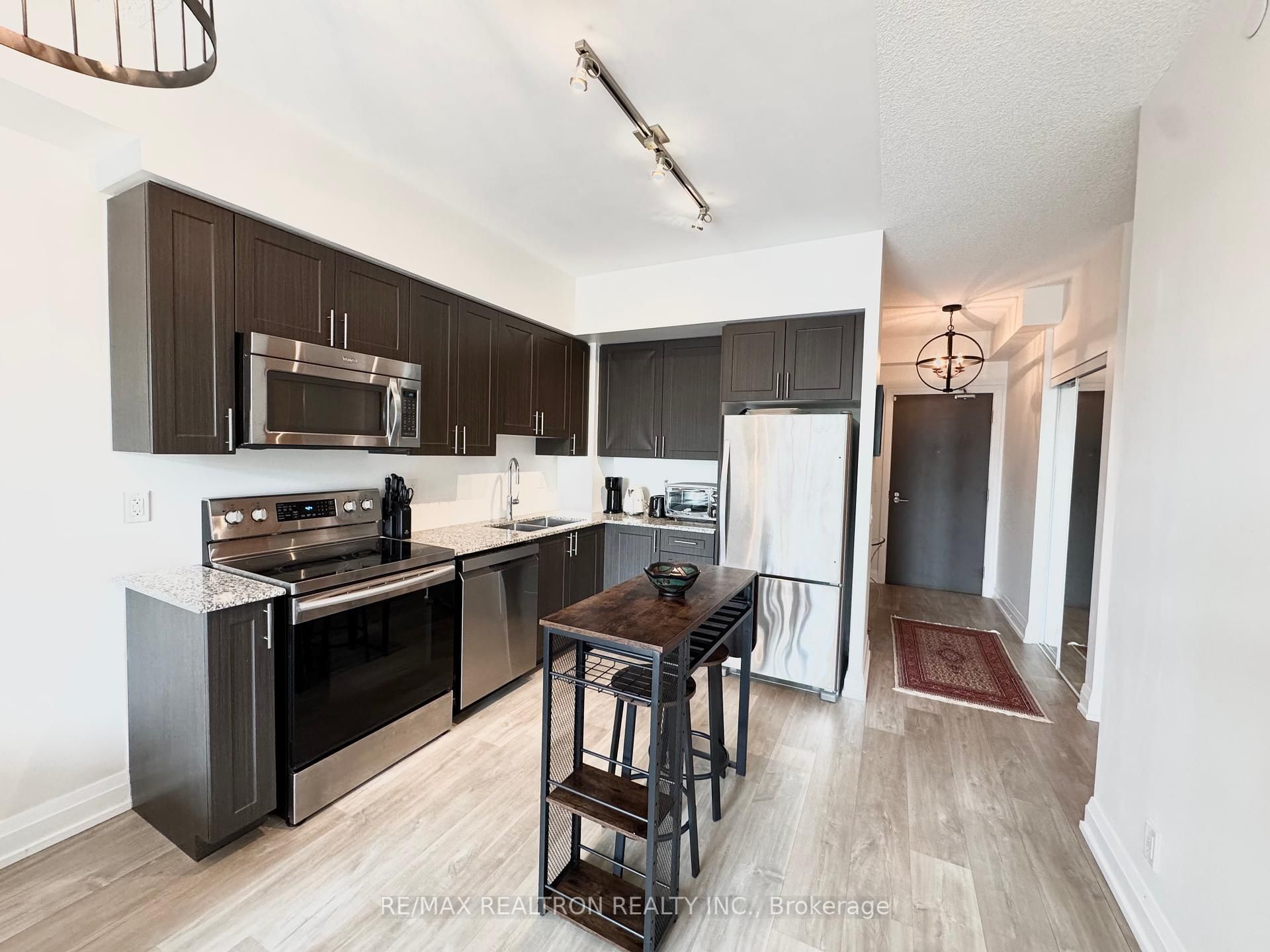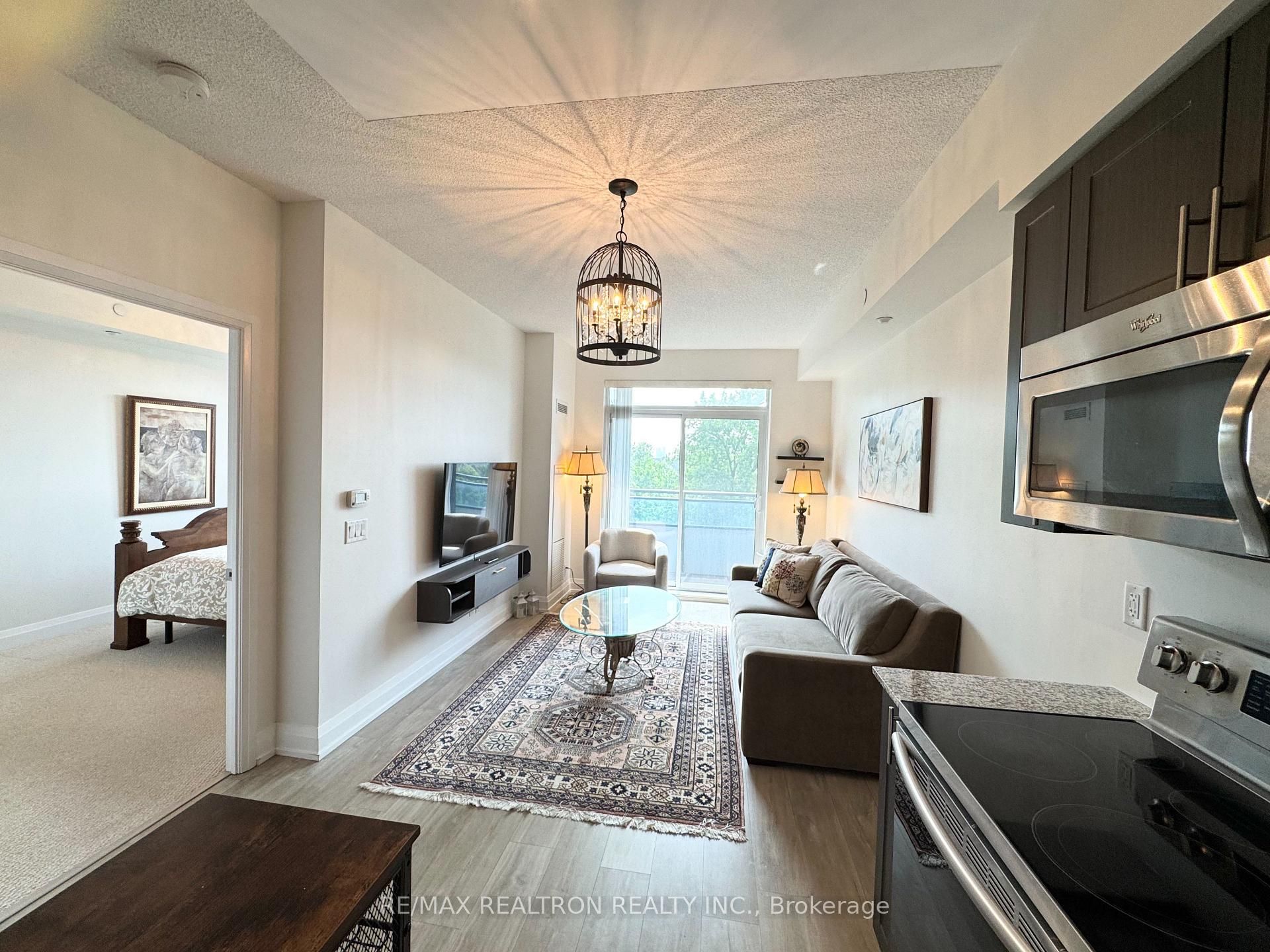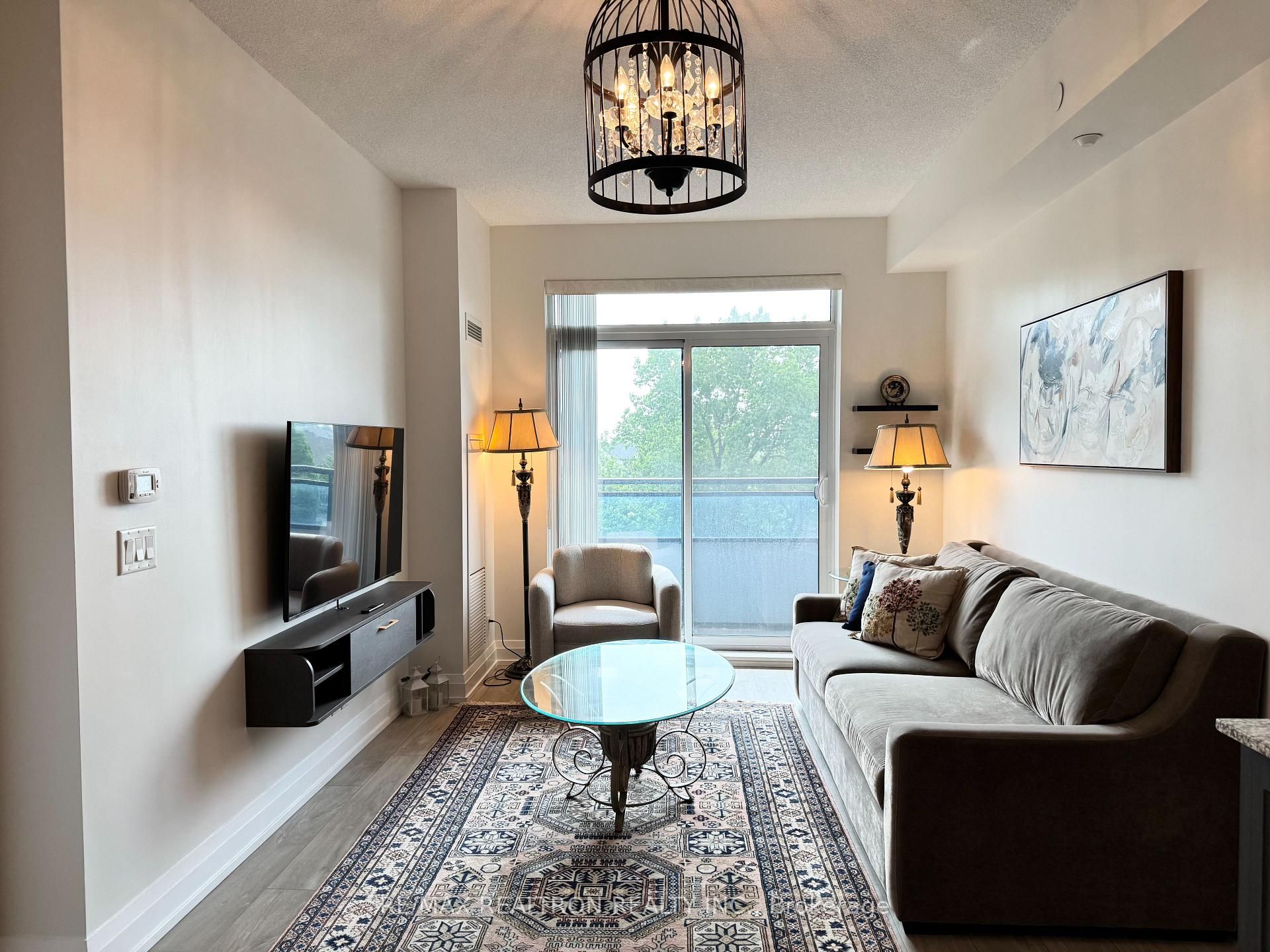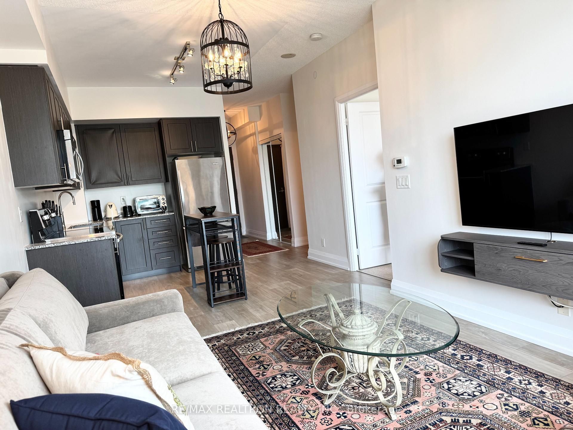 Welcome to this bright and spacious 1 bedroom + den condo in the highly desirable legacy park in thornhill. This well-maintained unit features 9-foot ceilings, floor-to-ceiling windows, and a walkout to a large private balcony. The modern kitchen includes stainless steel appliances, granite countertops, and ample storage. The primary bedroom offers a walk-in closet, and the den can be used as a second bedroom. Enjoy premium amenities including a 24-hour concierge, fitness centre, sauna, steam room, party room, and guest suite. Conveniently located within walking distance to promenade mall, walmart, shoppers, starbucks, restaurants, and public transit. Quick access to hwy 7 and 407. The unit is full furnished includes one underground parking spot.