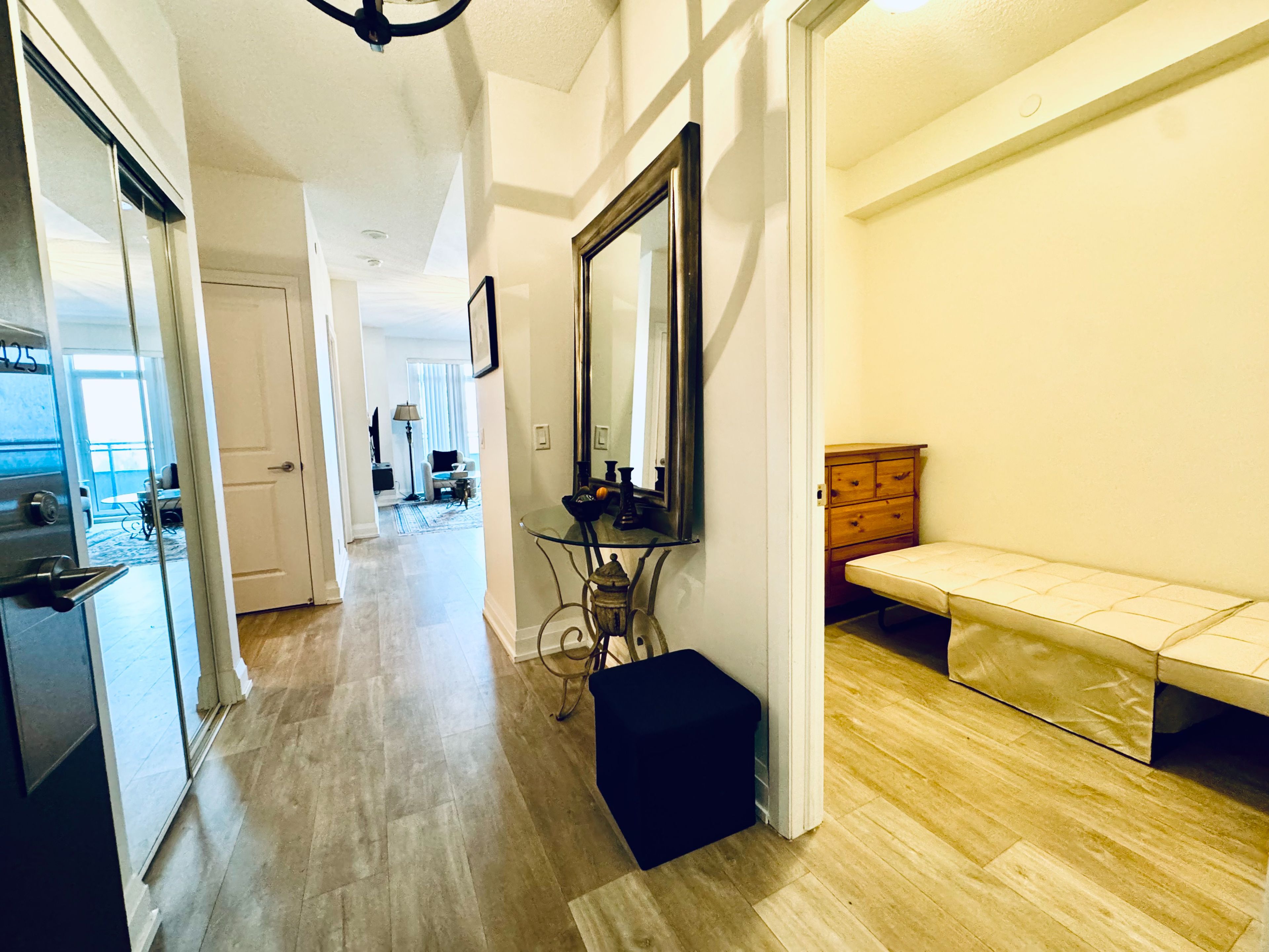 • Large private balcony with floor-to-ceiling windows for natural light.