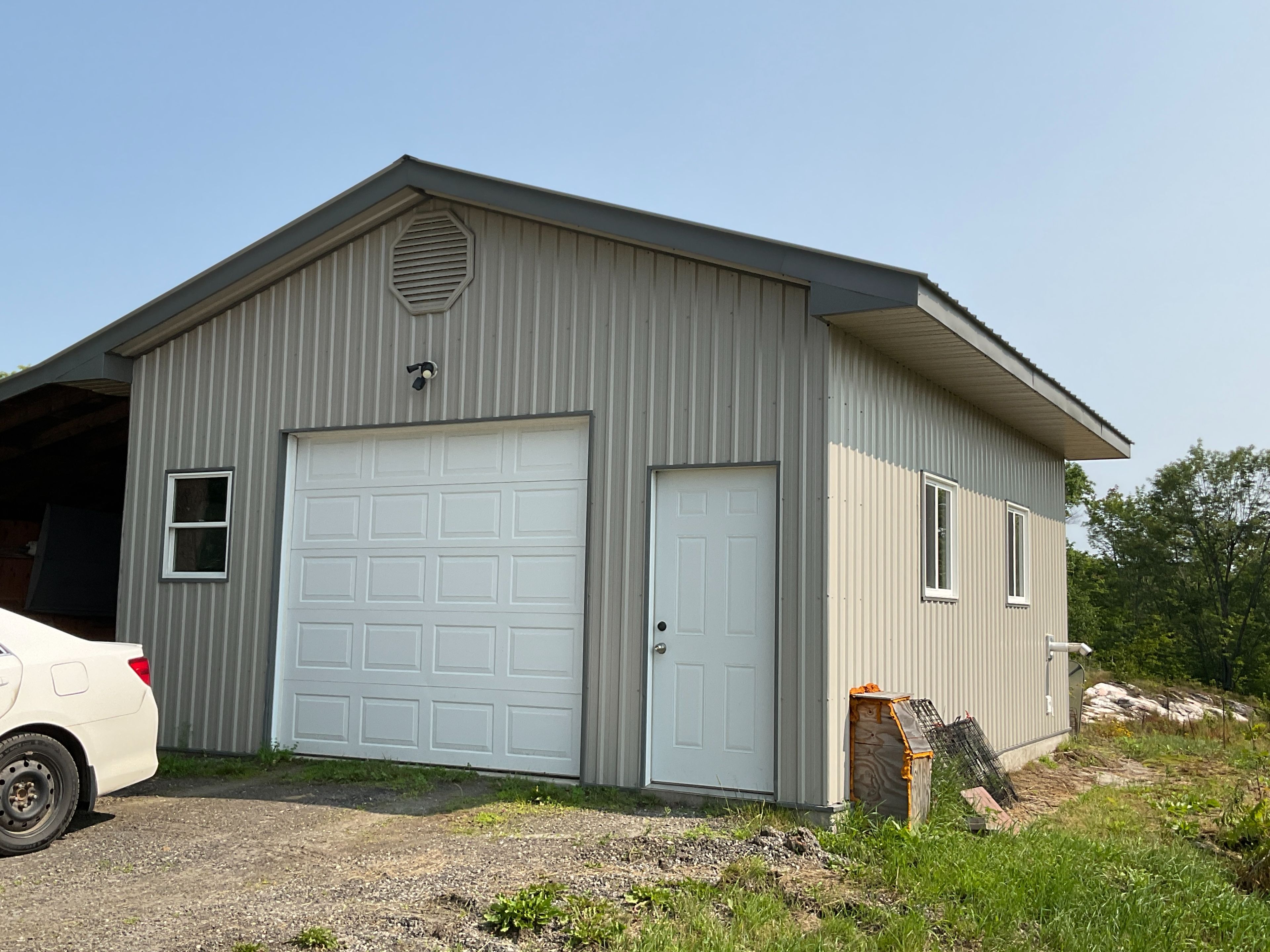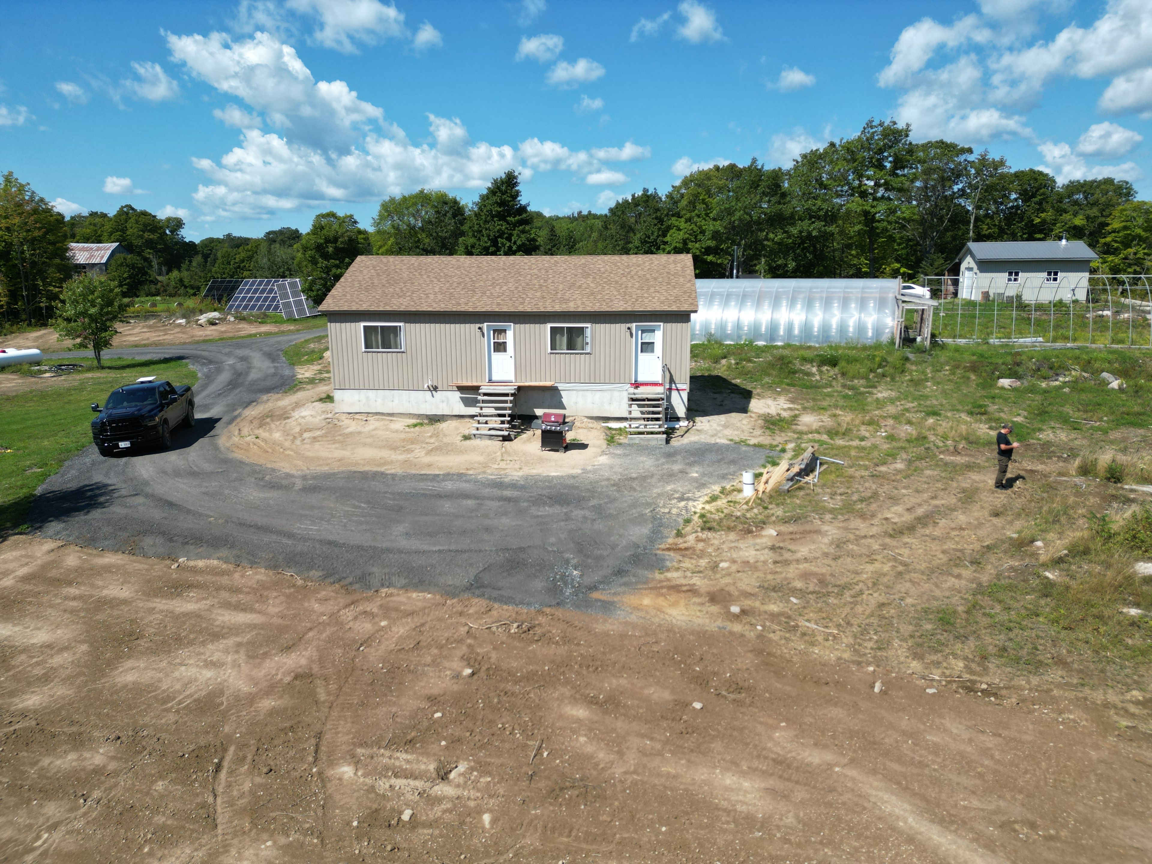 Bananas and tropical fruit growing in northern ontario greenhouses. This newly built house is off grid, situated on 44 acres with a large oversized garage and set up as a turnkey business with huge potential. Future potential to create additional lots with a private road cleared ready for gravel and culverts. There are two operational approx. 48' x 24' greenhouses with a third frame ready to be completed. There are also frames for another two and plenty of extra hoops. The unique thing about these greenhouses is that they contain tropical fruit plants; bananas, passion fruit, dragon fruit along with naranjilla, and papaya trees. Seasonal vegetables are established and growing. Seller will spend time to provide orientation of the greenhouse operation to the successful buyer. The outdoor wood burning furnace supplies heat to the greenhouses with propane furnaces as back up. The property is serviced by 34. 2 kw of solar and a 2000 amp hour battery pack along with a 15 kw standalone automatic generator. The chickens provide eggs and meat source adding potential additional income. Situated in an unorganized township, construction is done without building permits, only septic and if you were to hook to hydro. You still need to build to ontario building code as a minimum standard but build where, when and how you want on your property. As a family playground, explore the property and surrounding area with 1000's of acres of crown land in close proximity with plenty of wildlife. Many lakes and ofsac snowmobile trails in the area provide opportunity for enjoyment. Property is situated in wmu47 and is home to many wildlife including deer, moose, bear, wolves and small game. If you are looking to get out of the city and live the farming life, this may be the place for you and your family.