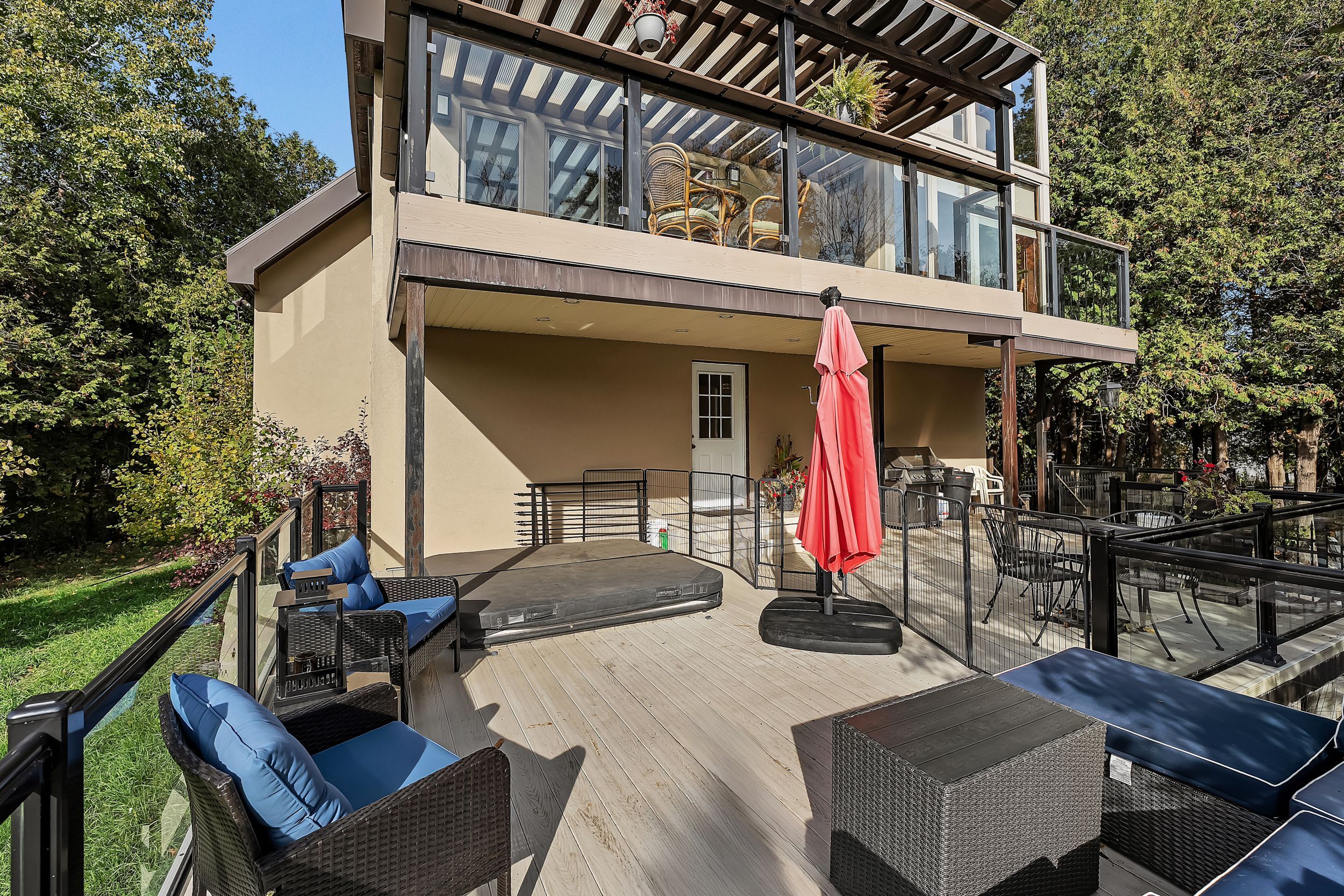 • Outdoor space includes a pool, hot tub, and gazebo for relaxation.