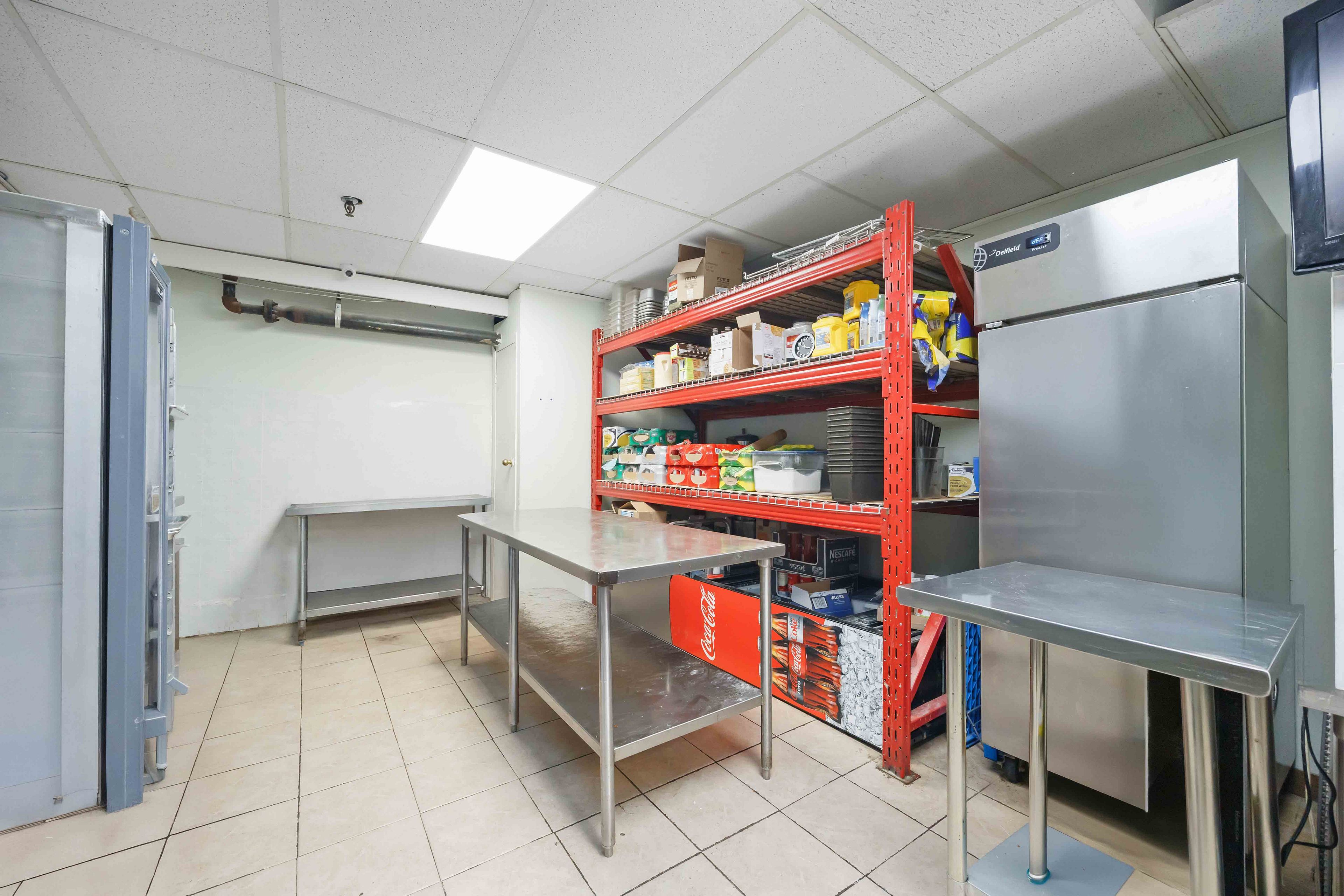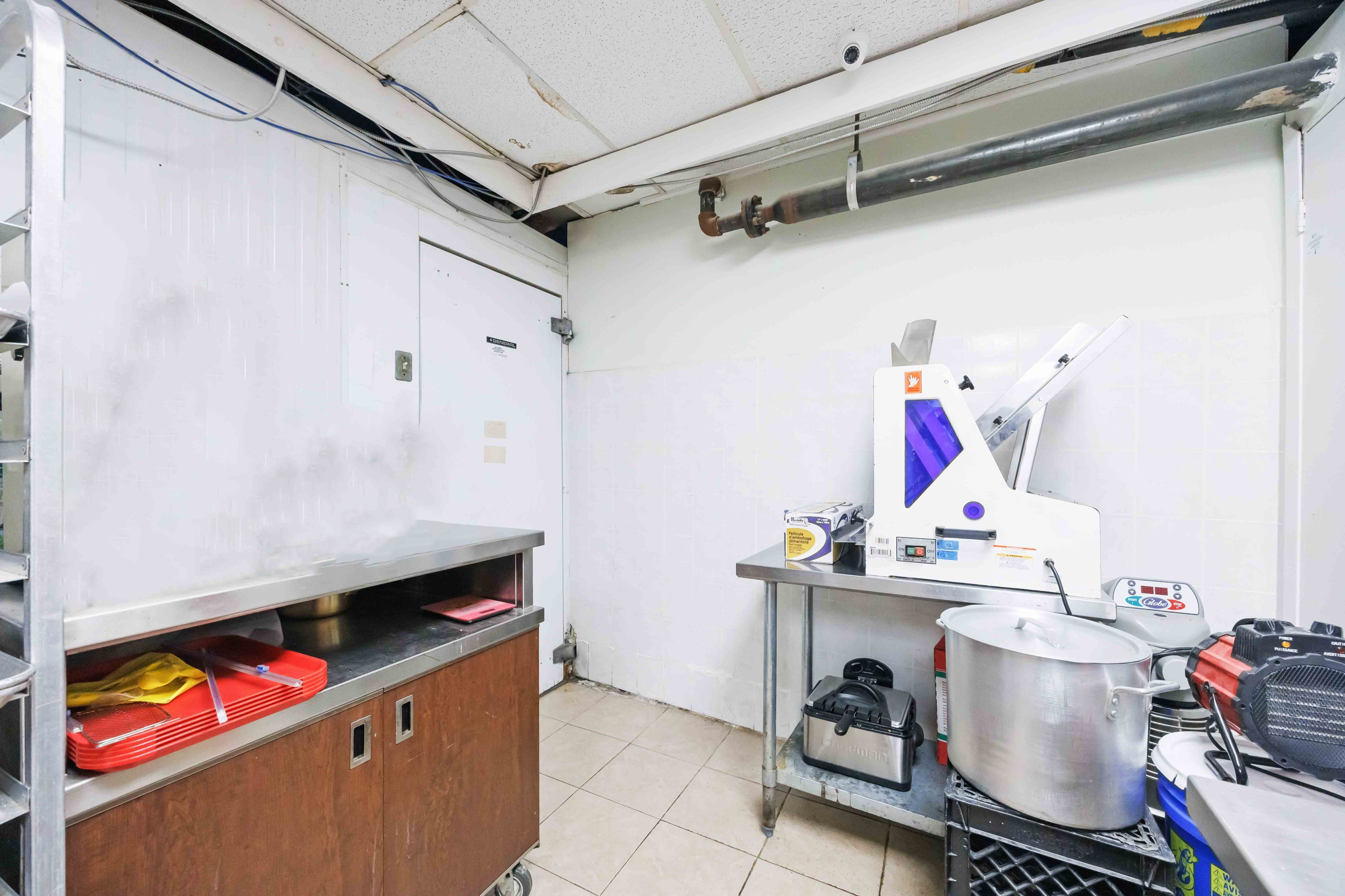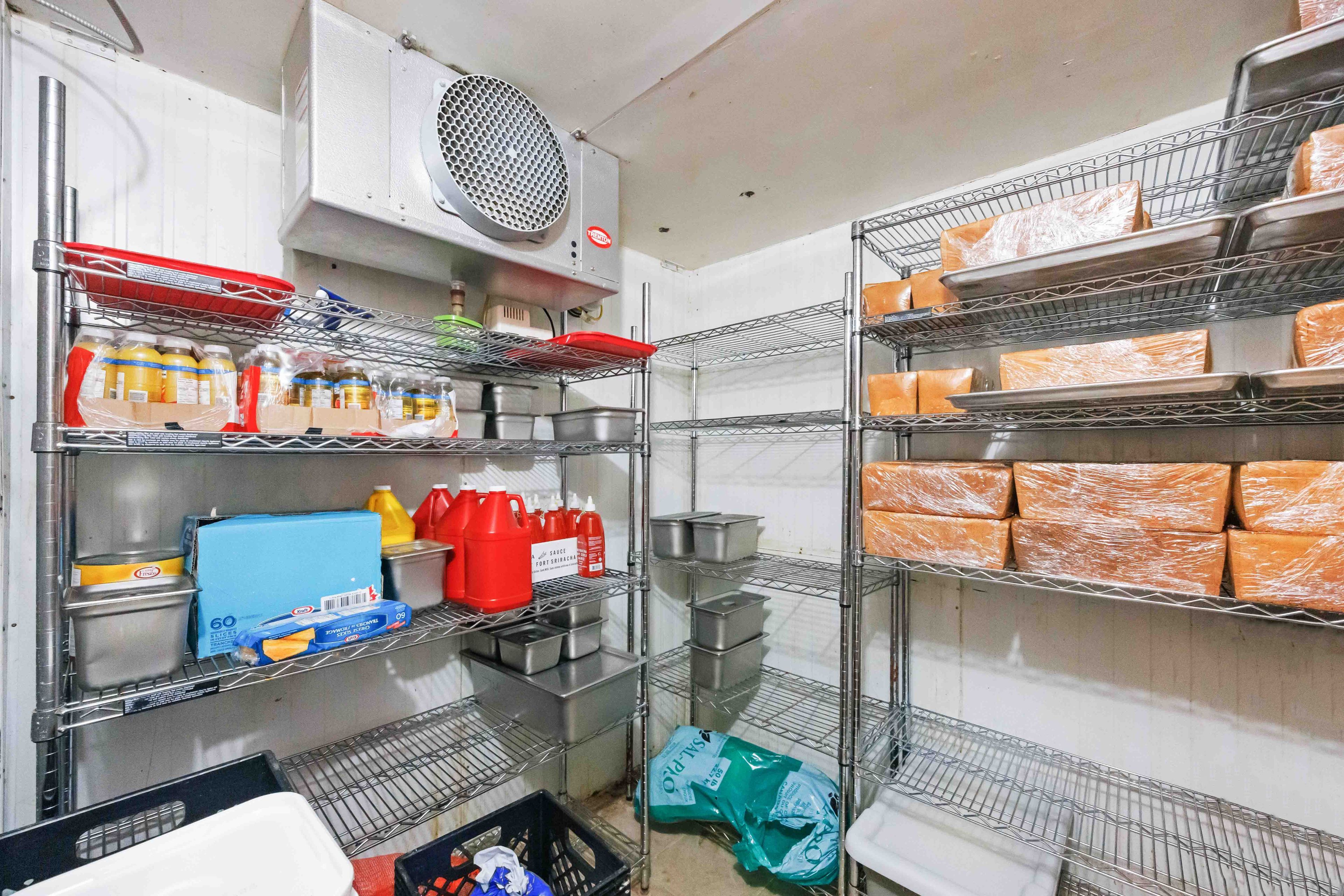 • Fully equipped commercial kitchen with a walk-in cooler for efficient operations.