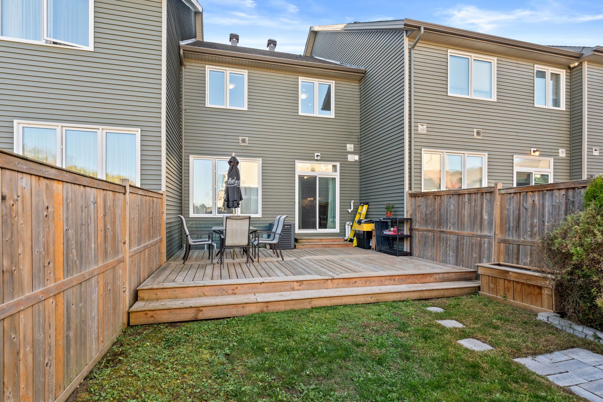 • Expansive fenced backyard with a custom deck for entertaining.