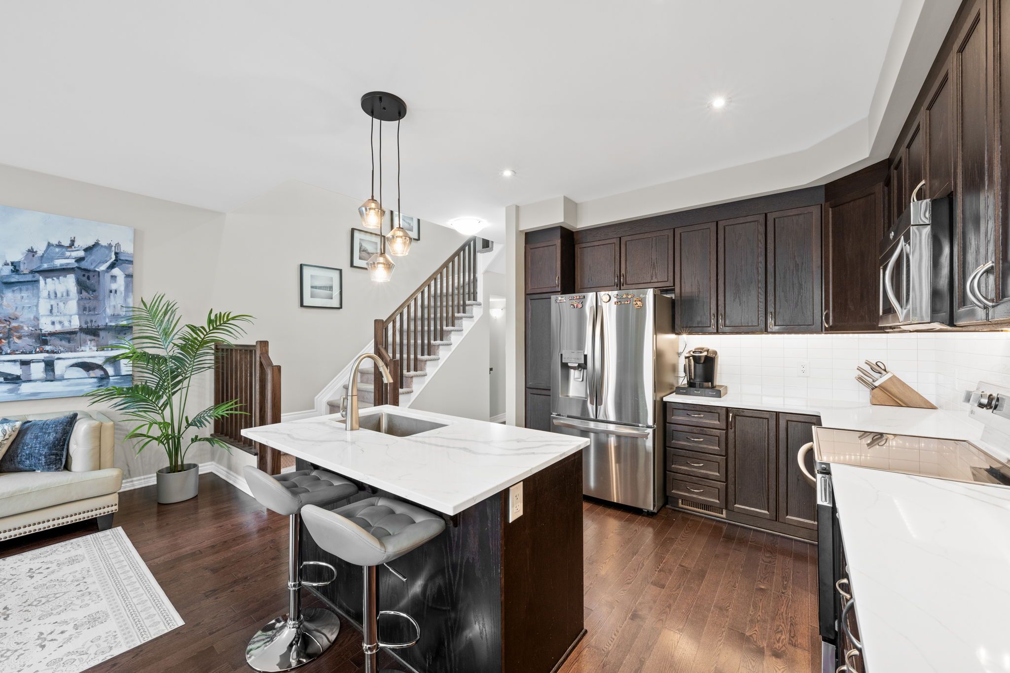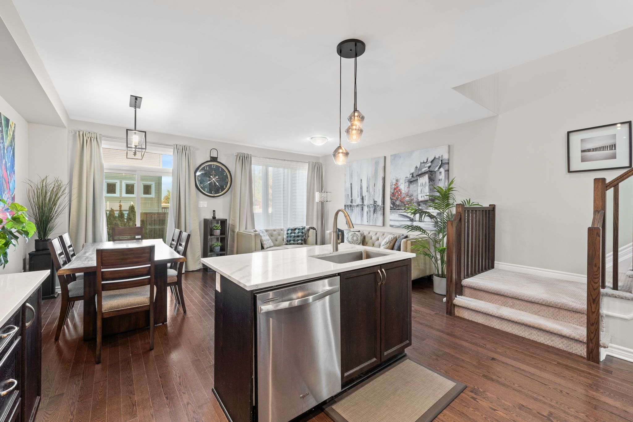 • Open concept main floor with upgraded kitchen and oak flooring.