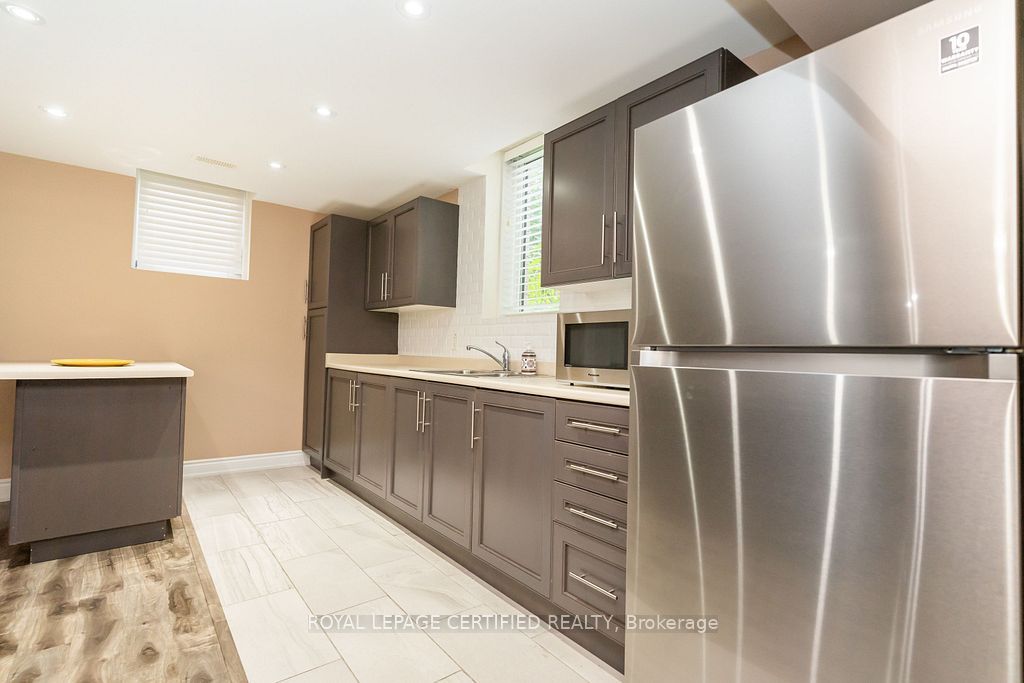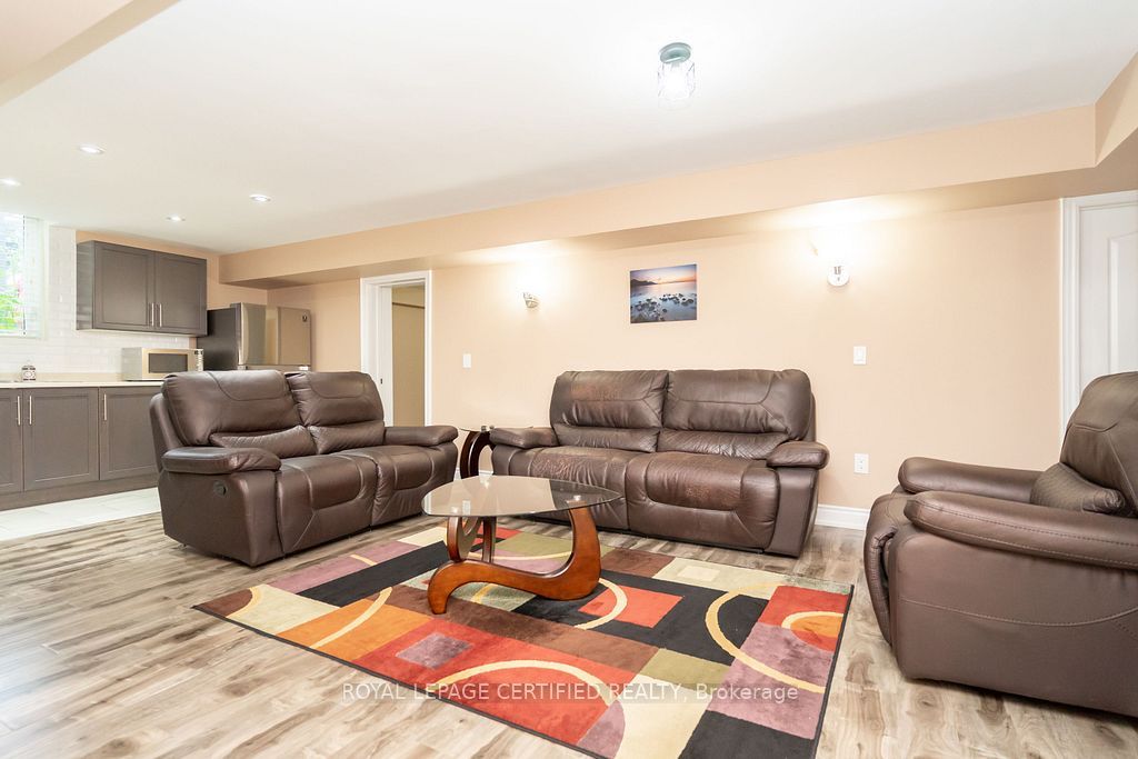 • Basement includes additional bedroom, living area, kitchen, and ample storage.