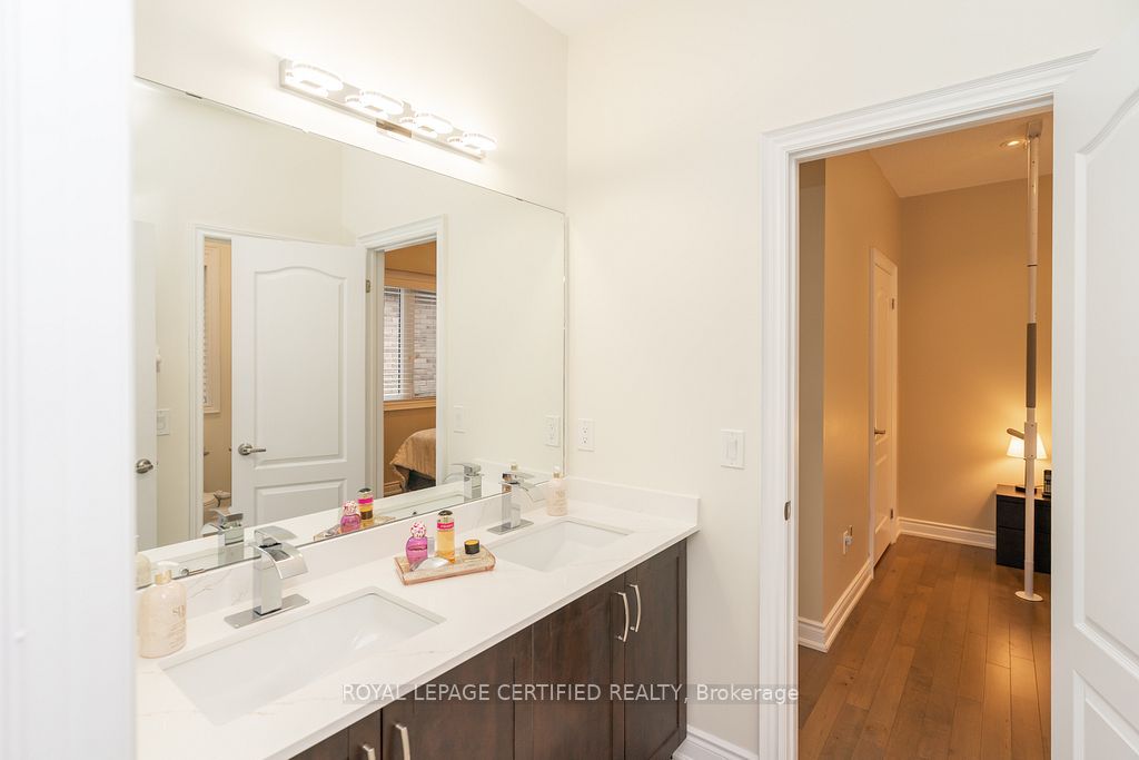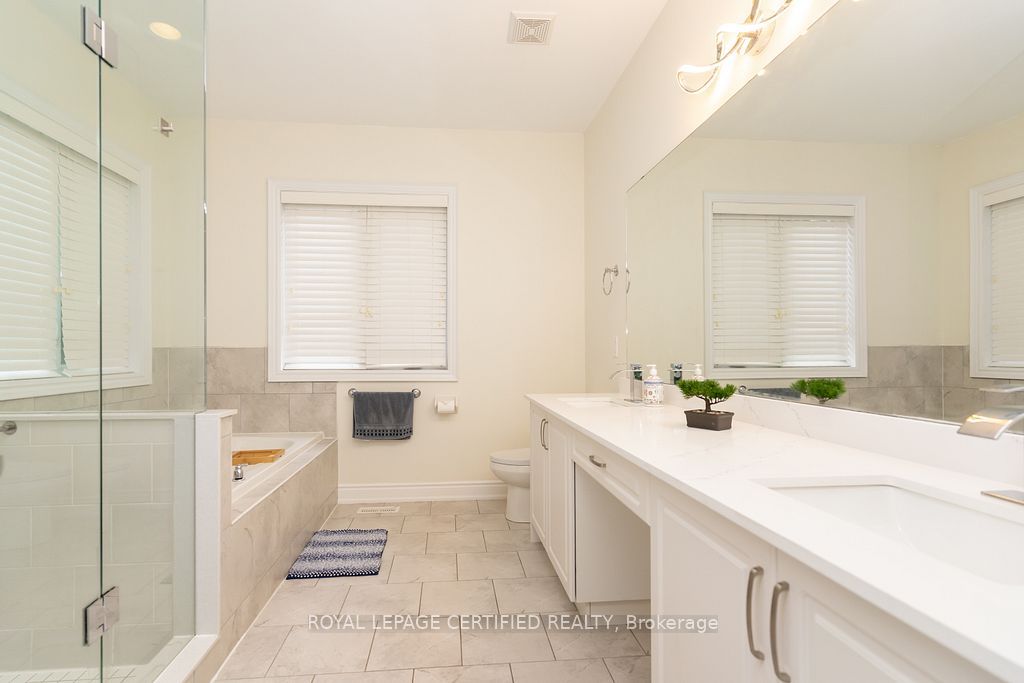 Spacious 5 bedroom , 5 washroom, upgraded detached home in a quite neighbourhood of burlington. Open concept layout with custom built kitchen , quartz counter tops. Stainless steel appliances. Living and family room with double sided stone fire place. No carpet throughout the house large bedrooms, prime bedroom with a walk in closet and ensuite. Basement features 1 bedroom, living/ family room, kitchen and lots of storage space. Close to park, walking trails and grocery . Easy access to hwy 403