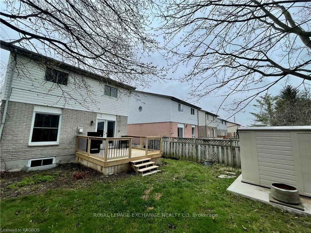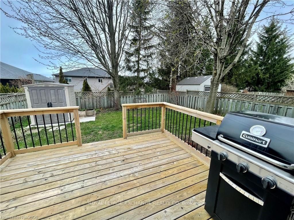 Welcome to this beautifully maintained, move-in-ready link home in the heart of kincardine - offering versatility, comfort, and income potential. From the moment you step inside, you'll appreciate the functional layout and inviting atmosphere. The main floor features a tasteful, fully equipped kitchen that flows seamlessly into the dining area, a convenient 2-piece bath, and a spacious living room anchored by a cozy natural gas fireplace - perfect for relaxing evenings at home. Step through the patio doors to a newer 12' x 12' deck overlooking a private backyard with mature trees, lush seasonal foliage, and a handy storage shed. This peaceful outdoor space is ideal for unwinding, entertaining, or enjoying warm summer days. Upstairs, you'll find three generously sized bedrooms, each with ample closet space, along with a bright 4-piece bathroom. The primary bedroom offers the added convenience of ensuite privilege. A major highlight of this home is the legal, self-contained basement suite with its own separate entrance - an excellent opportunity for rental income, multigenerational living, or added privacy for guests. Prefer a single-family setup? The basement remains easily accessible from the main floor, giving you flexibility to use the space however you choose. Additional features include a double-wide concrete driveway providing plenty of parking, convenient garage access through the main-floor laundry room, and a location in a mature, well-established neighbourhood. Enjoy being within walking distance to the davidson centre and downtown kincardine, with bruce power just an approximate 20-minute drive away. All measurements are aprrox
