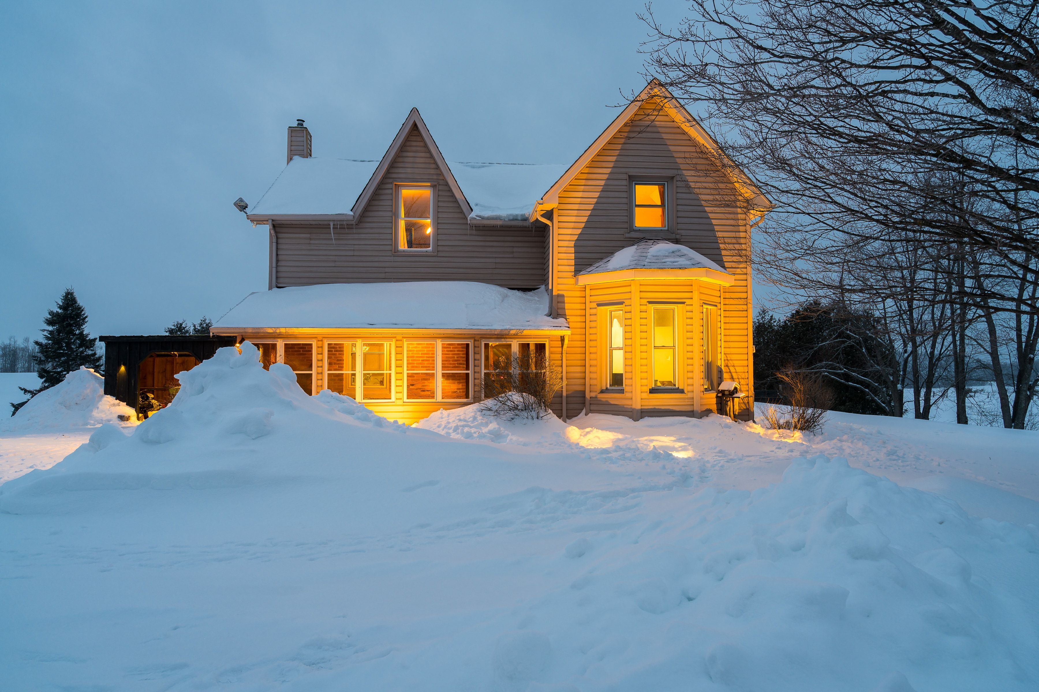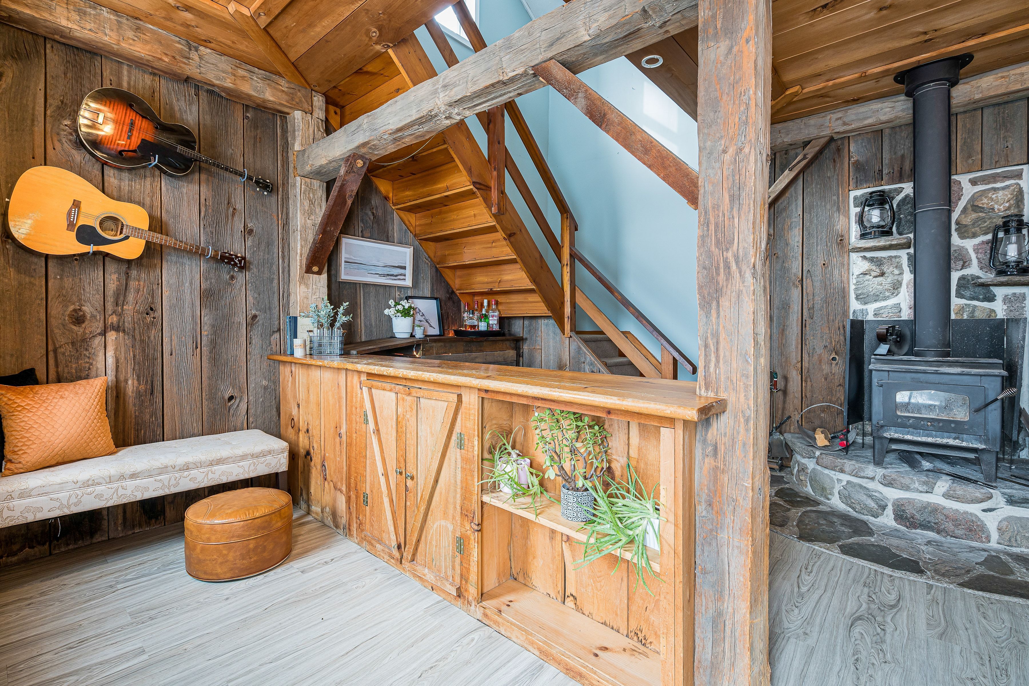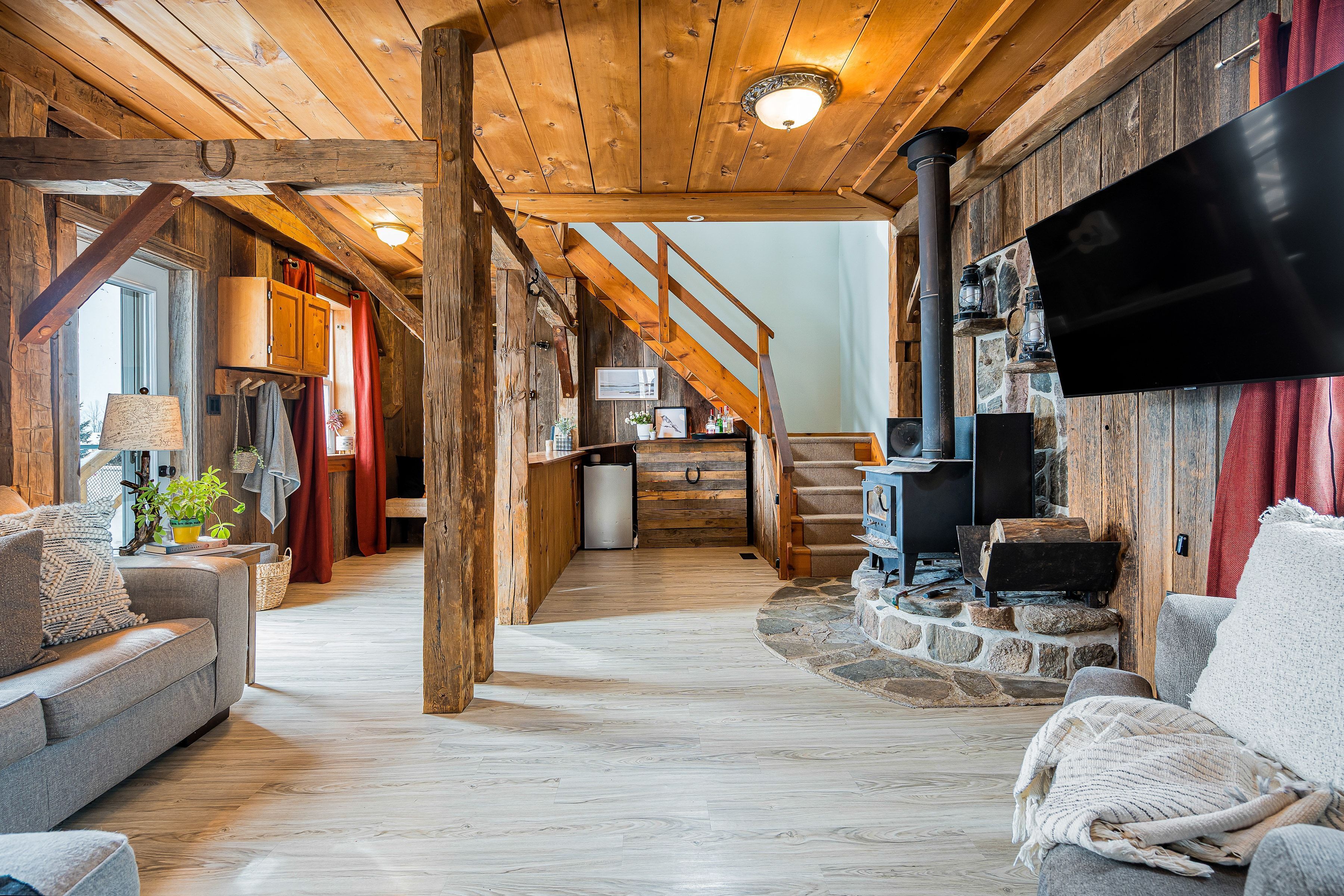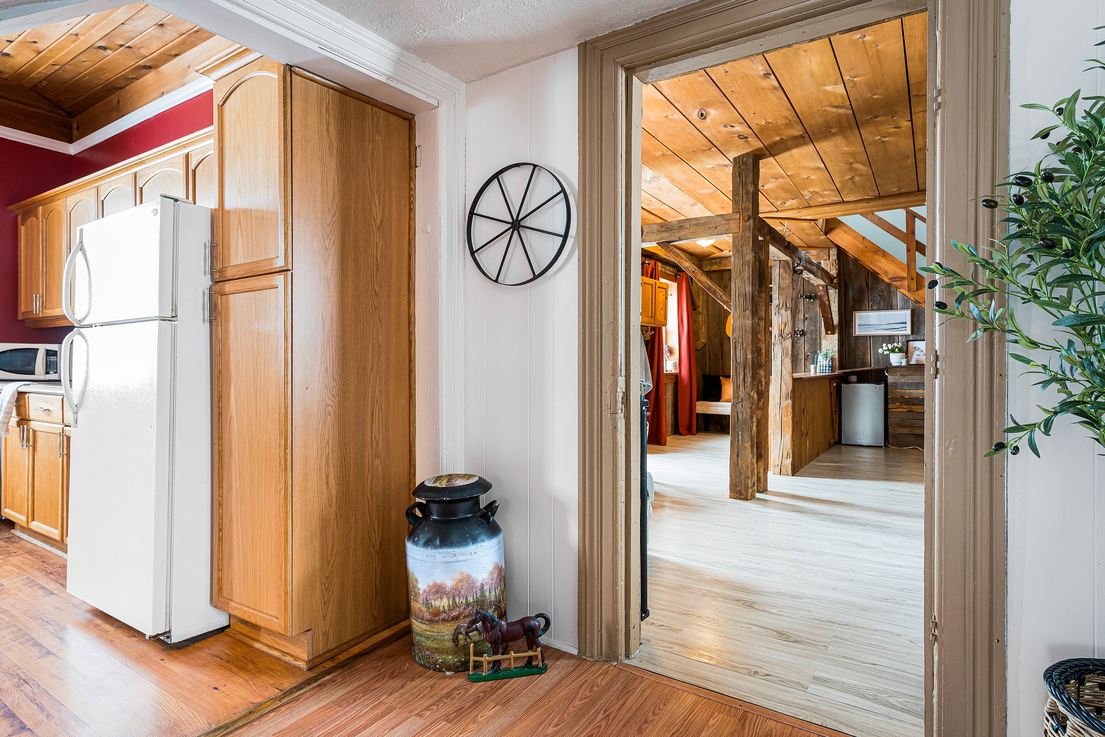 Set on a fully gated and beautifully landscaped 1. 5 acre property near singhampton, this 1905 country farmhouse offers a rare blend of historic character and privacy. The circular back driveway and mature landscaping create a sense of calm upon arrival, while the covered front porch/mudroom welcomes you inside. A central hall with approximately 9'8" ceilings sets the tone for the home's warmth and craftsmanship. The south-facing farmhouse kitchen is the heart of the home, featuring a generous dining area and a propane gas fireplace that creates a cozy backdrop for everyday living and entertaining. Multiple main-floor living spaces offer flexibility for family life, hosting guests, or working from home, while the inviting living/recreation room is accented with natural wood details and anchored by a wood-burning stove. Practical updates enhance functionality, including a dedicated main-floor laundry room and an attached garage that has been thoughtfully finished to include an office or gym -professionally wired, making it ideal for a home-based business or creative workspace. Upstairs, two separate staircases lead to four generously sized bedrooms, including two with built-in closets, offering comfortable accommodation for family and guests. The outdoor spaces are equally impressive: relax and unwind in the hot tub, rinse off in the outdoor shower, or entertain on the patio surrounded by extensive landscaping and a peaceful water feature. A rooftop patio offers elevated views of the surrounding countryside, while the fully fenced and gated property provides privacy and peace of mind. With ample space for future expansion-such as a pool, horses, or additional outbuildings (subject to approvals)-this property offers the freedom to grow and evolve. Ideally located for outdoor enthusiasts, the home is minutes from year-round recreation and trails, yet conveniently close to everyday amenities: a perfect balance of country living and accessibility.
