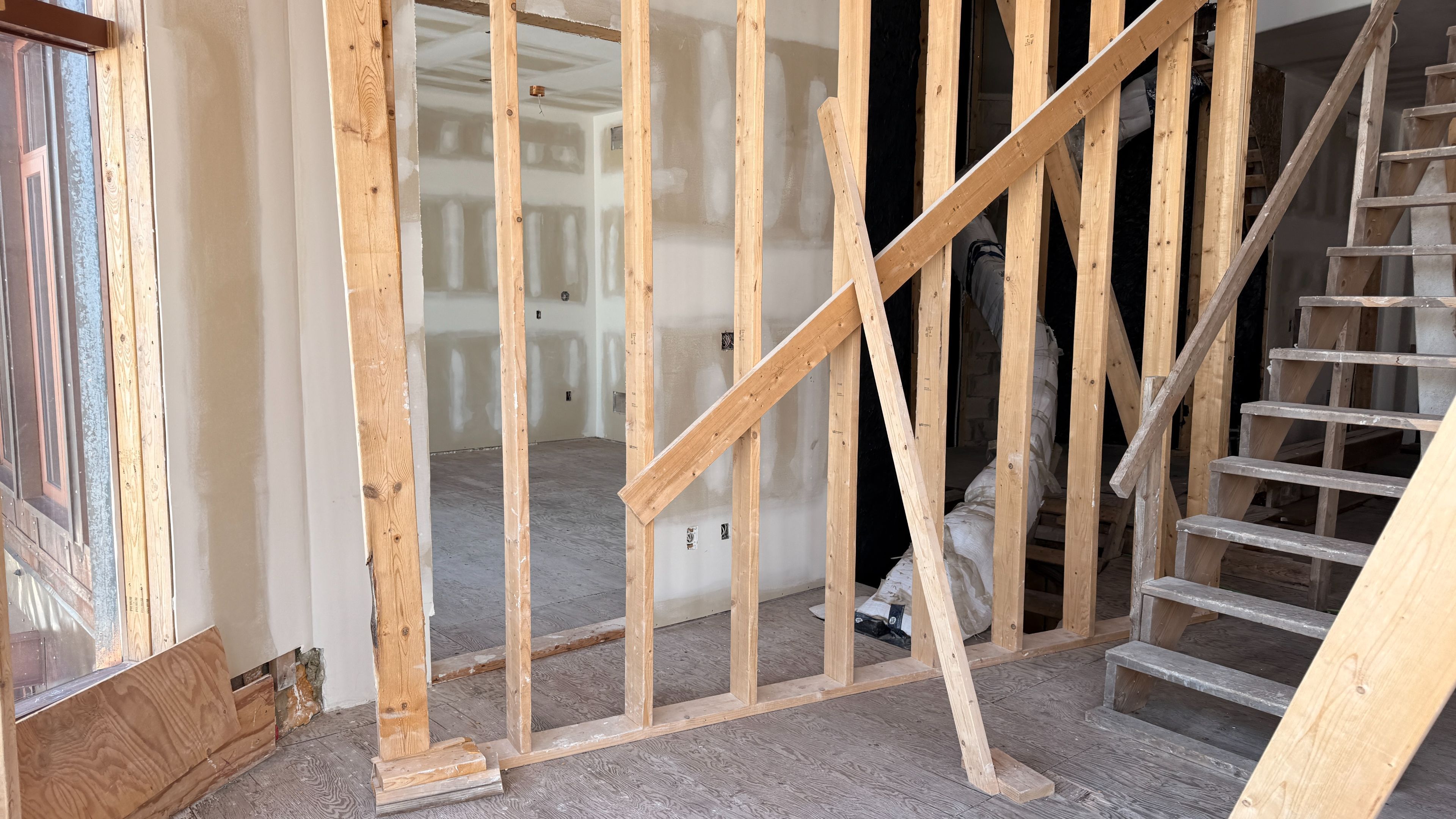 • 5+1 bedrooms and 5 bathrooms already framed and mostly drywalled.