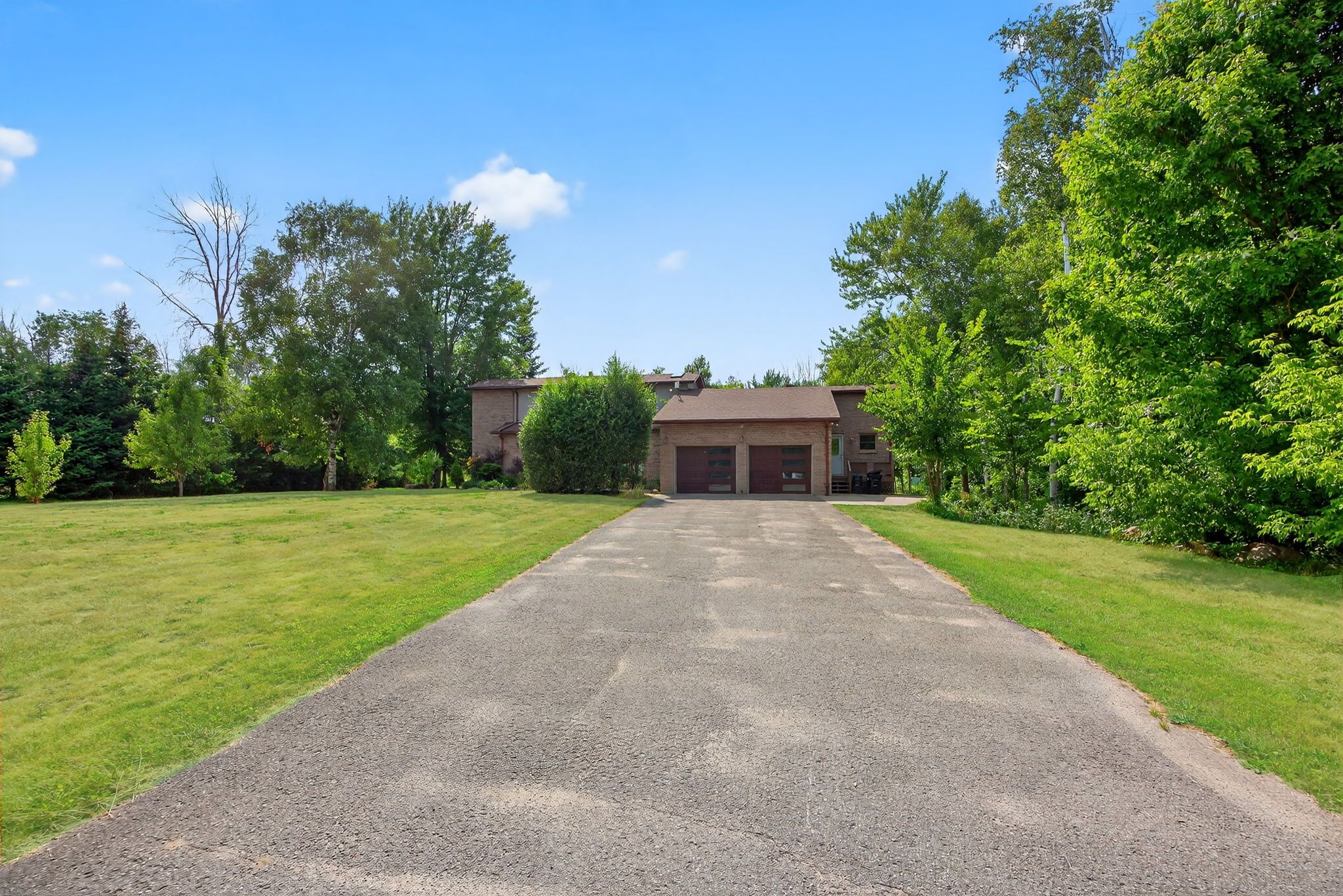 Executive family home nestled on 10 acres of private land with 1,200 sqft detached, insulated workshop with double 7x9ft doors, & a second driveway. Plus bonus 2 bedroom in-law suite with separate entrance! Over 4,800+ sqft of finished living space. Fully renovated in 2020, open flowing main level with porcelain tiles & engineered hardwood flooring throughout. Spacious living room with propane fireplace, & picturesque huge window overlooking backyard with walk-out to backyard deck! Eat-in kitchen features large centre island with quartz counters, porcelain tiles, double sink, subway tile backsplash, pot lights, & is conveniently combined with dining area including a second walk-out to the backyard deck! Main level laundry / mud room with laundry sink & separate entrance. Additional family room & den is ideal for working from home! Plus 2 bedrooms in their own wing with 4 piece bathroom, perfect for guests to stay! Upper level with 2nd bedroom & secluded primary bedroom featuring walk-in closet & 4 piece ensuite with double sinks. Fully finished lower level in-law suite with separate entrance features full kitchen, ensuite laundry, dining area, family & living room, 2 full bedrooms with closet space & new laminate flooring. Backyard with spacious covered pressure treated wood deck with updated railings (2025), garden shed, & tons of greenspace! All updated flooring & trim (2020/2025). Updated kitchen (2020). Freshly painted. Full propane automatic generac generator. 200amp electrical panel w/ 60amp going to detached workshop. Attached garage doors (2020). All windows & doors (2020). A/c (2016). Napoleon oil furnace (2015). Perfect multi-use home, run your business, or generate extra income from multiple sources! Ideal location with tons of privacy, across from conservation land, tons of hiking & riding trails, & minutes from tiffin conservation area, & close to angus & all major amenities including schools, restaurants, groceries, & a short drive to highway 400!