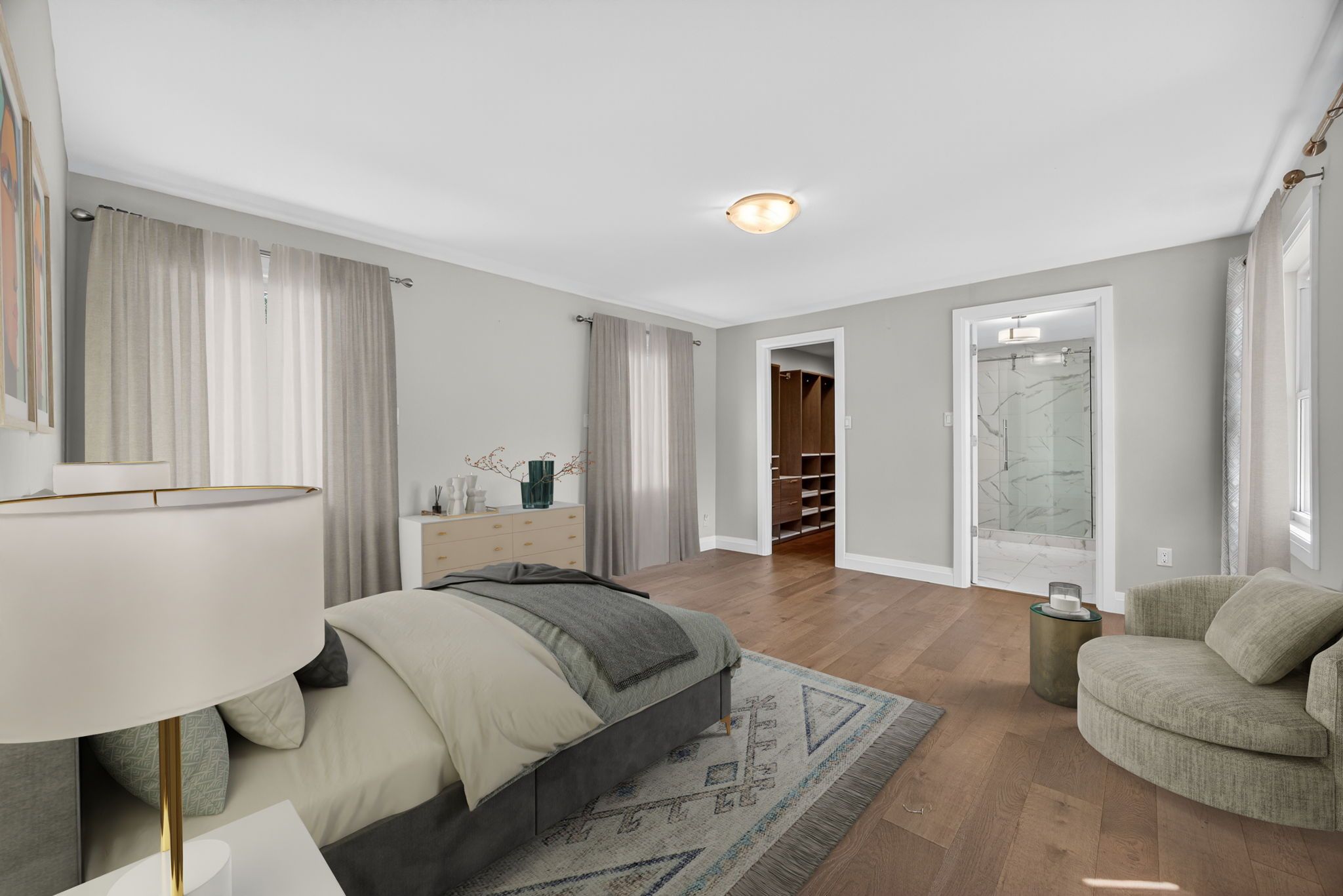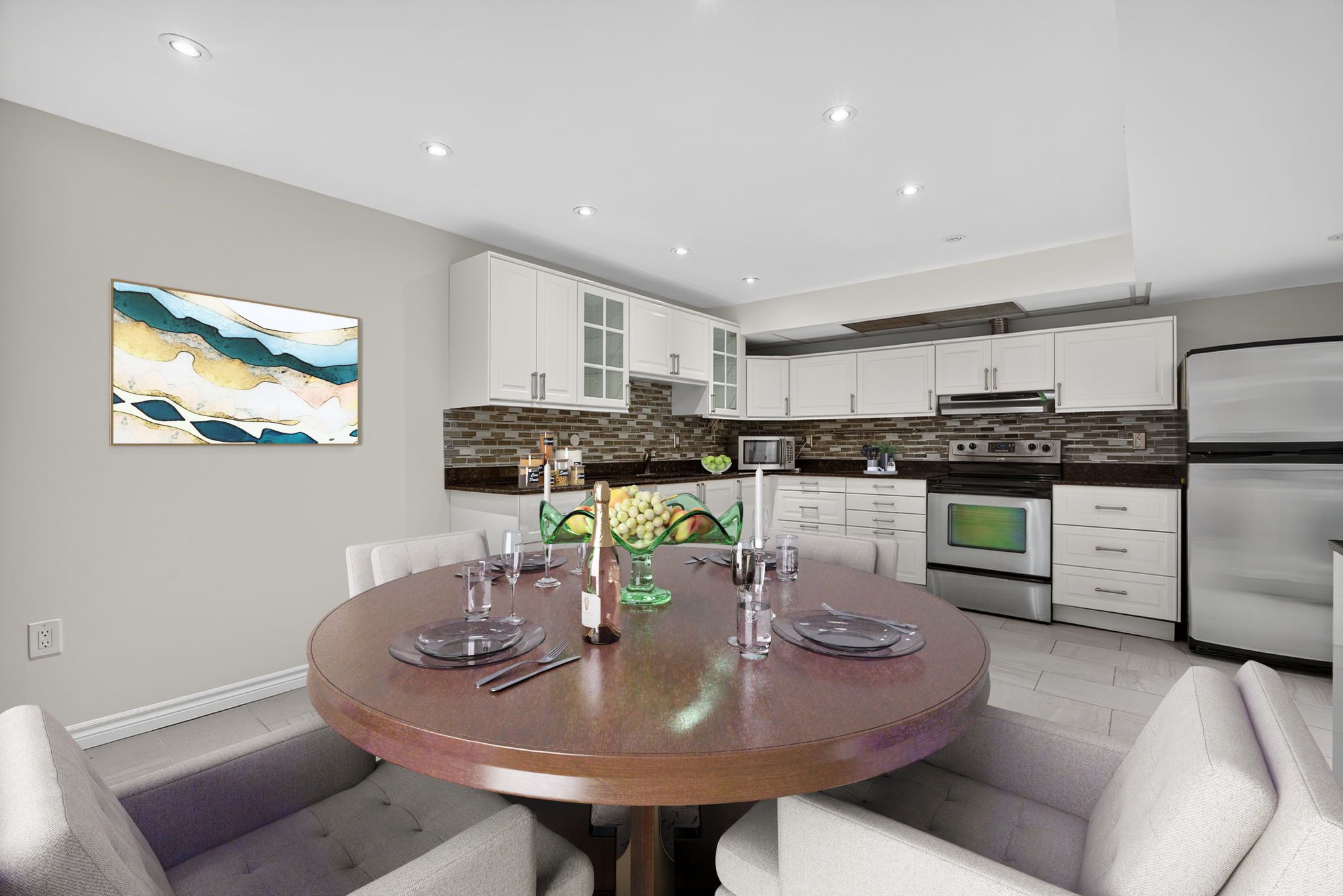 • Renovated in 2020 with modern features like porcelain tiles and hardwood flooring.