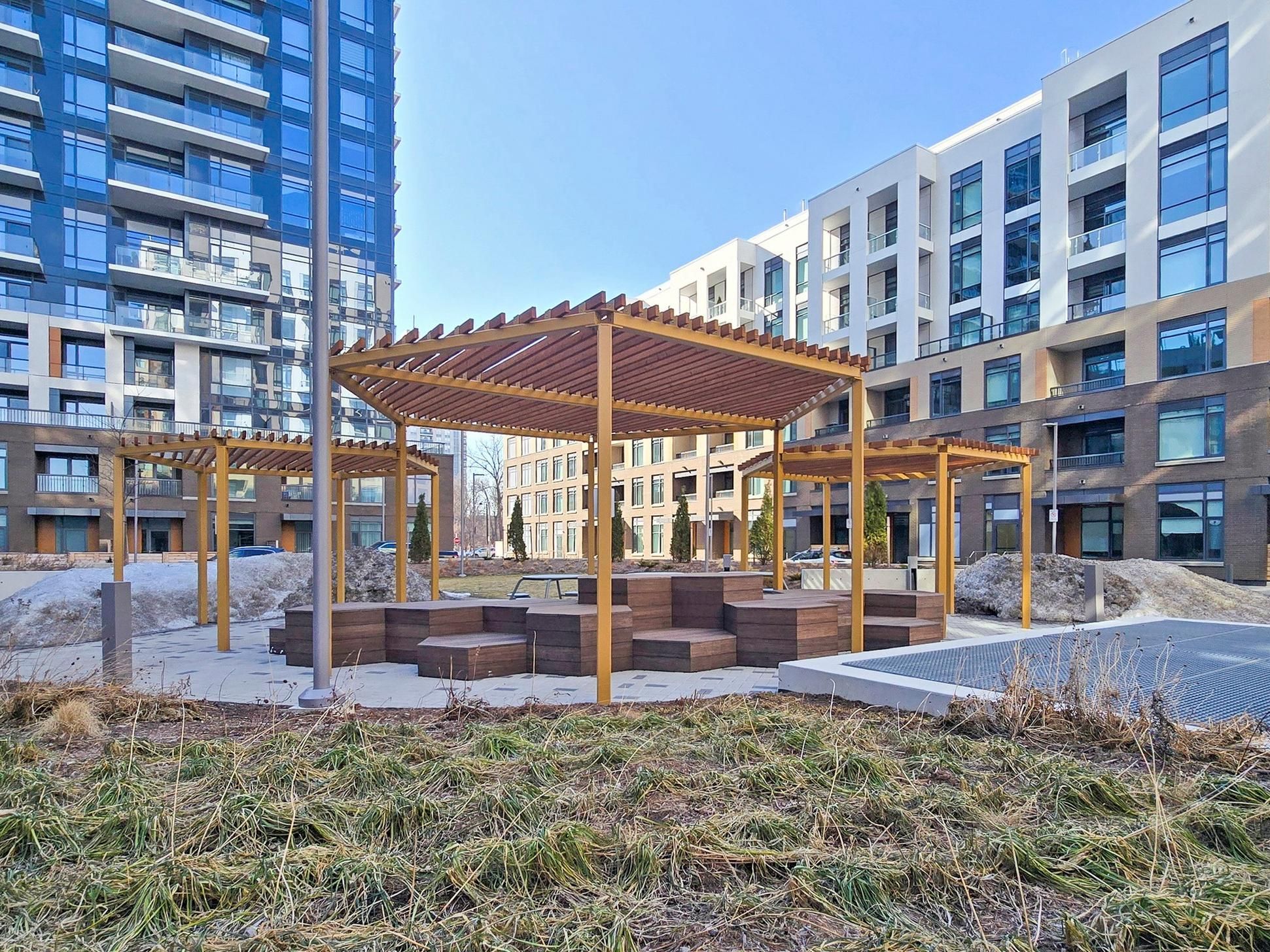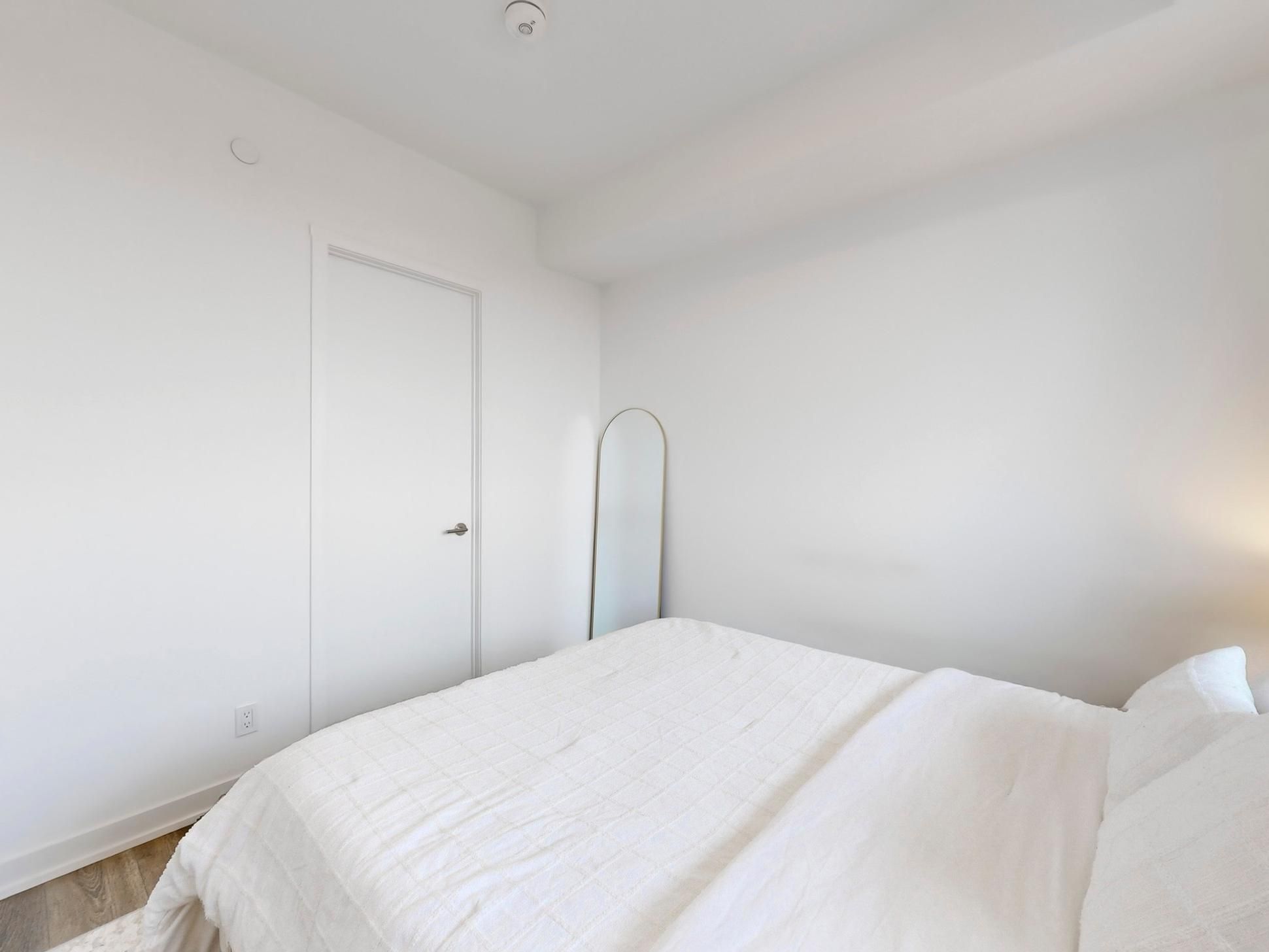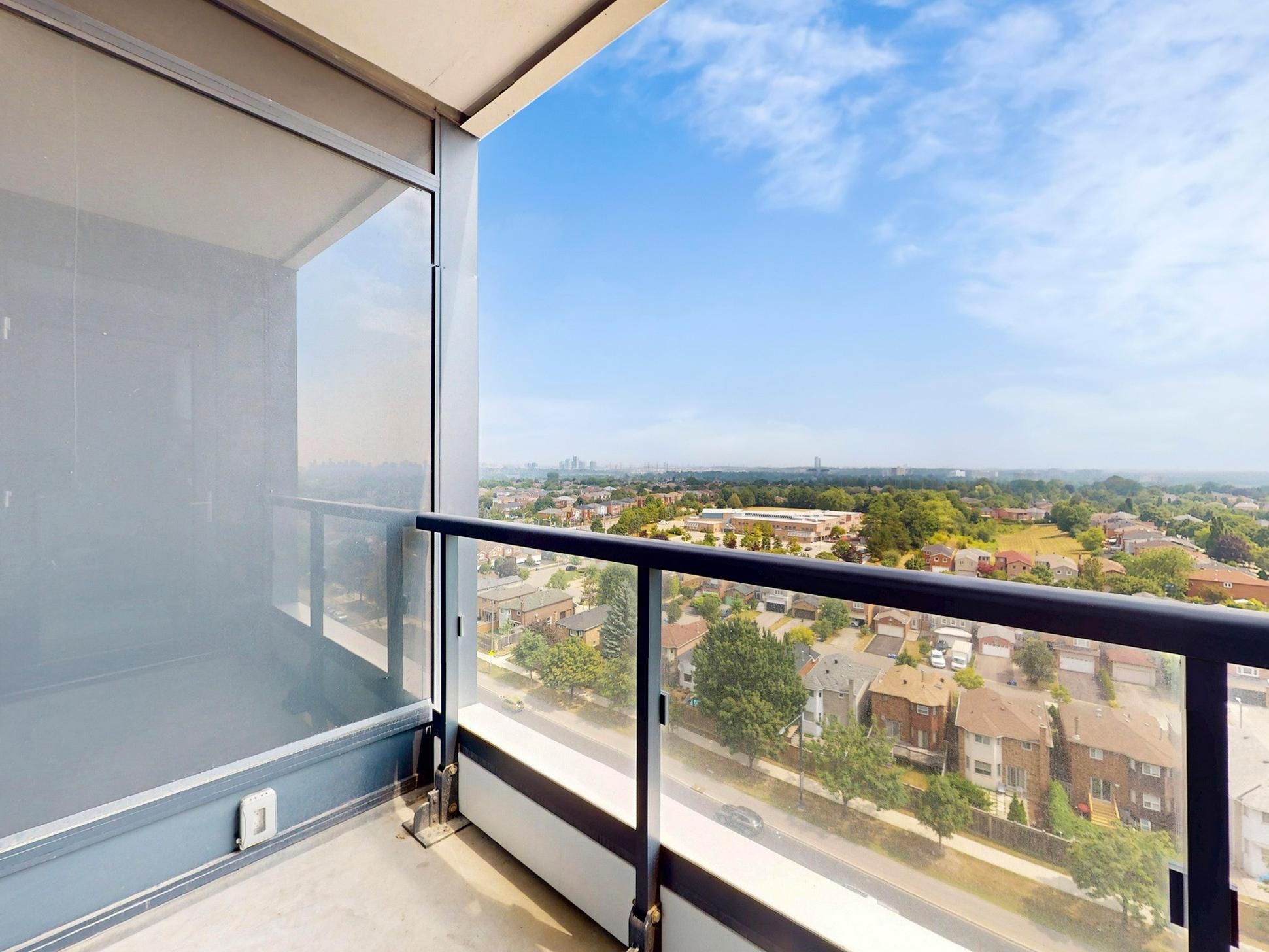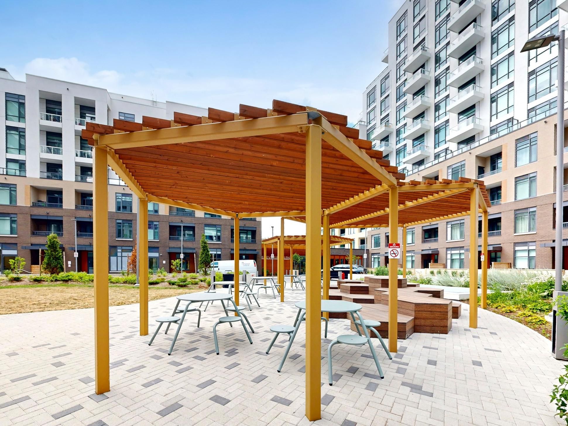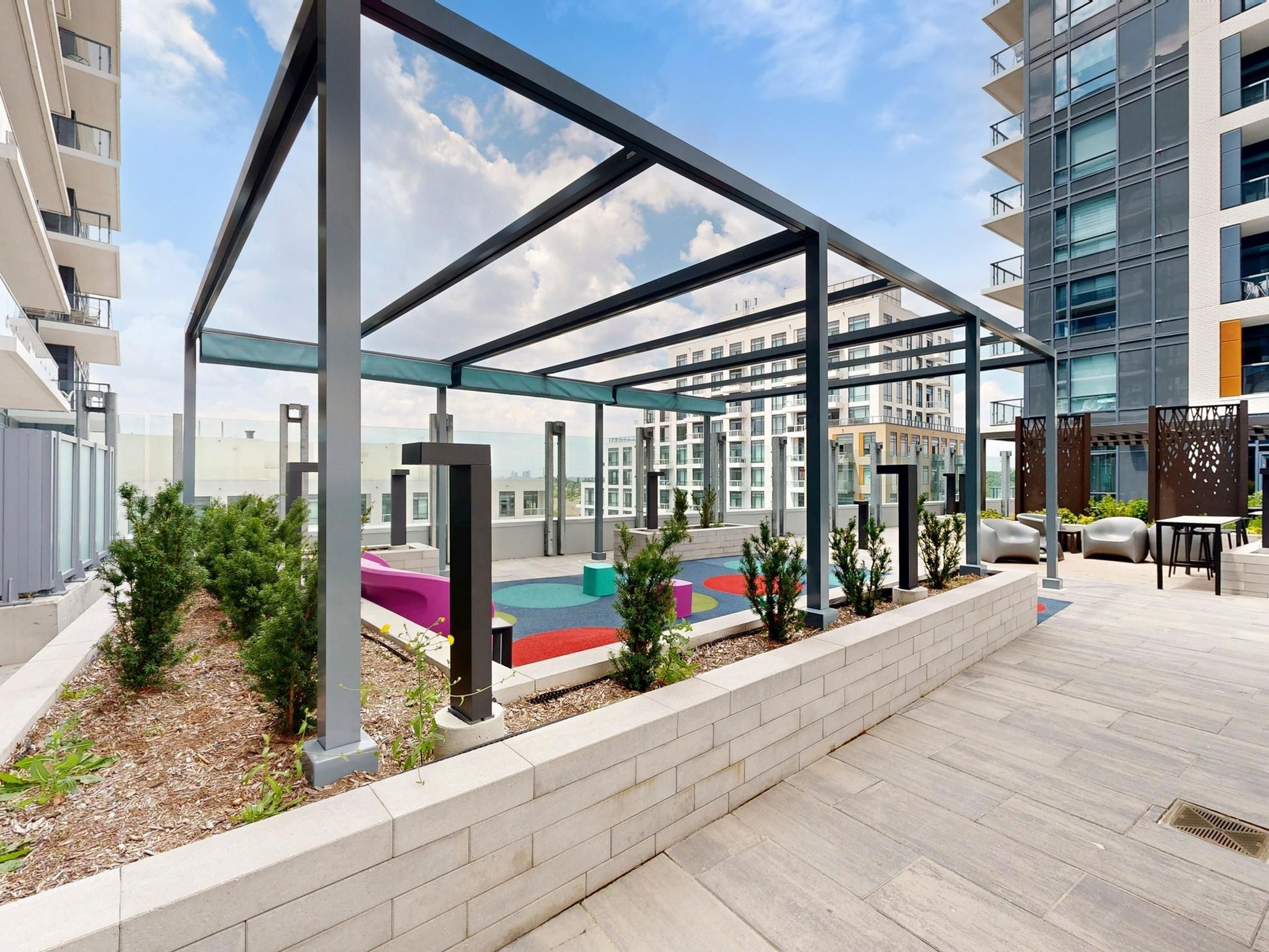 Surrounded by the quaint comforts of south thornhill, this property combines stylish design, functional living, and access to an outstanding community. Residents will enjoy everyday conveniences with shops, cafés, restaurants, schools, lush parks, local transit, commuter highway networks such as highway 407 and highway 7, and the promenade mall all just moments away. Inside, the suite offers a bright and functional 1-bedroom plus den layout. The open-concept kitchen is finished with quartz countertops, premium appliances, ceramic tile backsplash, soft-close cabinetry, and a central island with dining space. The kitchen flows into the living area, where floor-to-ceiling east-facing windows bring in natural light and provide a walk-out to the private balcony. The primary bedroom features a large window wall and a walk-in closet with built-in organizers and lighting. The 4-piece bathroom is beautifully appointed with porcelain tile flooring, an integrated vanity sink with storage, frameless mirror with sconce lighting, and a deep soaker tub with full tile surround. A semi-open den offers flexibility as a home office or reading nook, while in-suite laundry with stacked washer and dryer ensures day-to-day convenience. Residents of this community have access to an exceptional collection of amenities including a fitness centre with yoga studio, multi-sport gymnasium with basketball court, co-working and meeting rooms, family and party spaces, and a seventh-floor terrace with bbqs, lounge areas, and a play zone for children. Outdoor living is enhanced by a landscaped community courtyard, fully fenced dog run, pet wash station, and 24/7 concierge. This property also includes one owned parking space and one locker for added convenience.