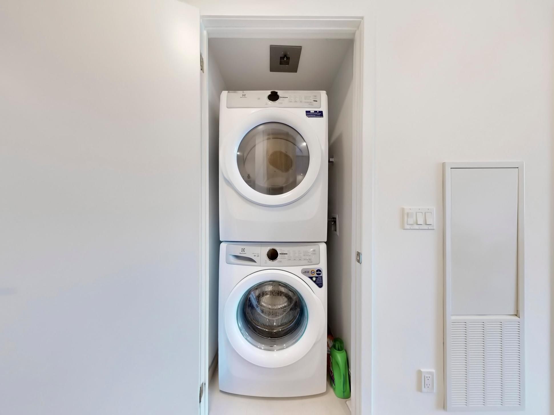 • Convenient in-suite laundry, owned parking space, and additional storage locker.