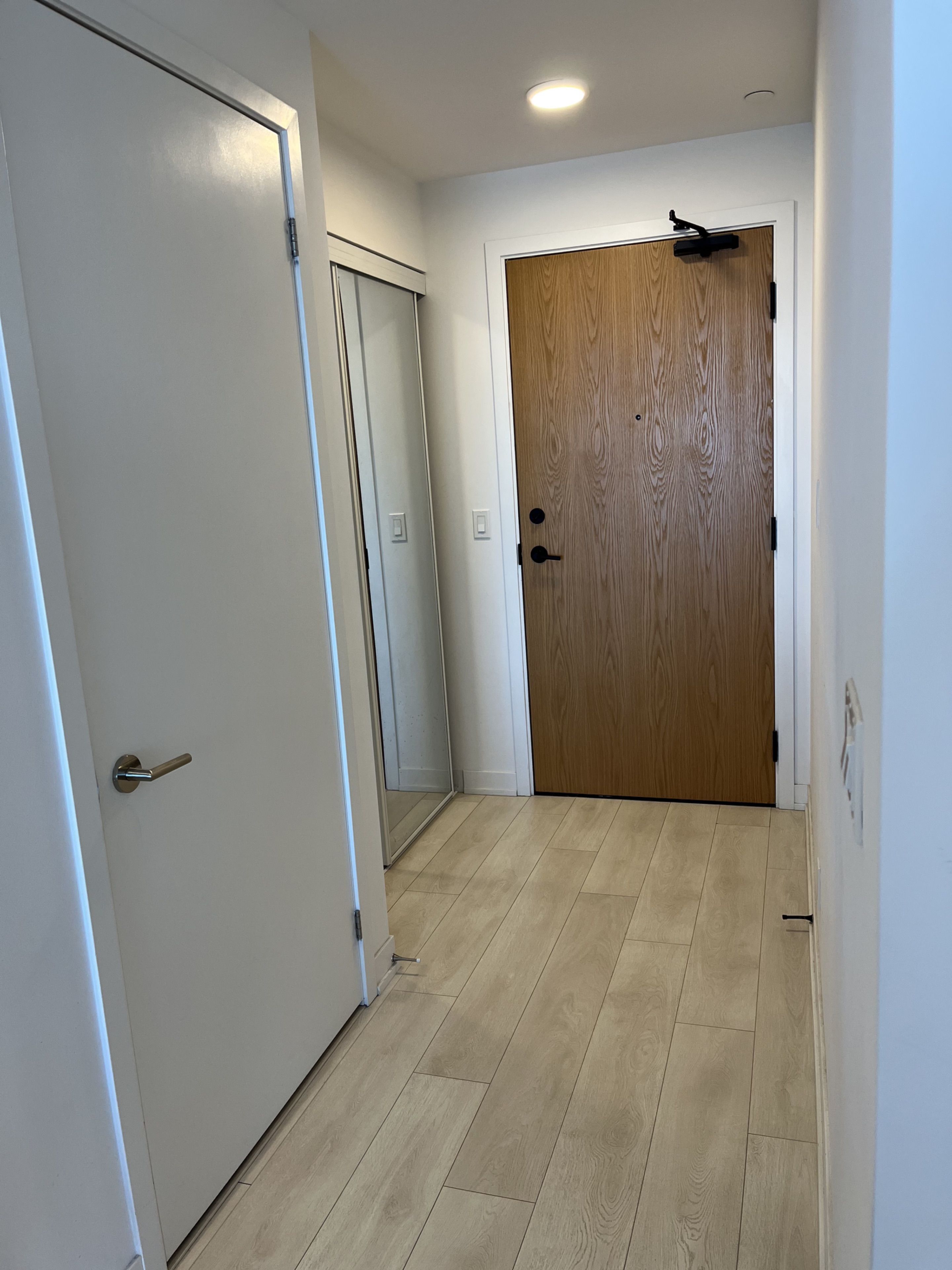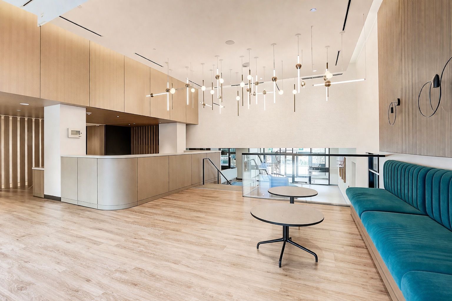 Welcome to this bright and modern 1-bedroom condo in a prime thornhill community. This beautifully designed unit offers thoughtfully planned living space with a functional open-concept layout. The modern kitchen features high-end finishes, including quartz countertops, integrated appliances, a center island, and ample storage. The unit also boasts a stunning upgraded bathroom with a walk-in shower and sleek glass door. Enjoy an abundance of natural light through large windows, complemented by 9-ft ceilings, custom light fixtures, and stylish window coverings. Step out onto your private southeast-facing balcony-sheltered from the wind and perfect for relaxing or entertaining.