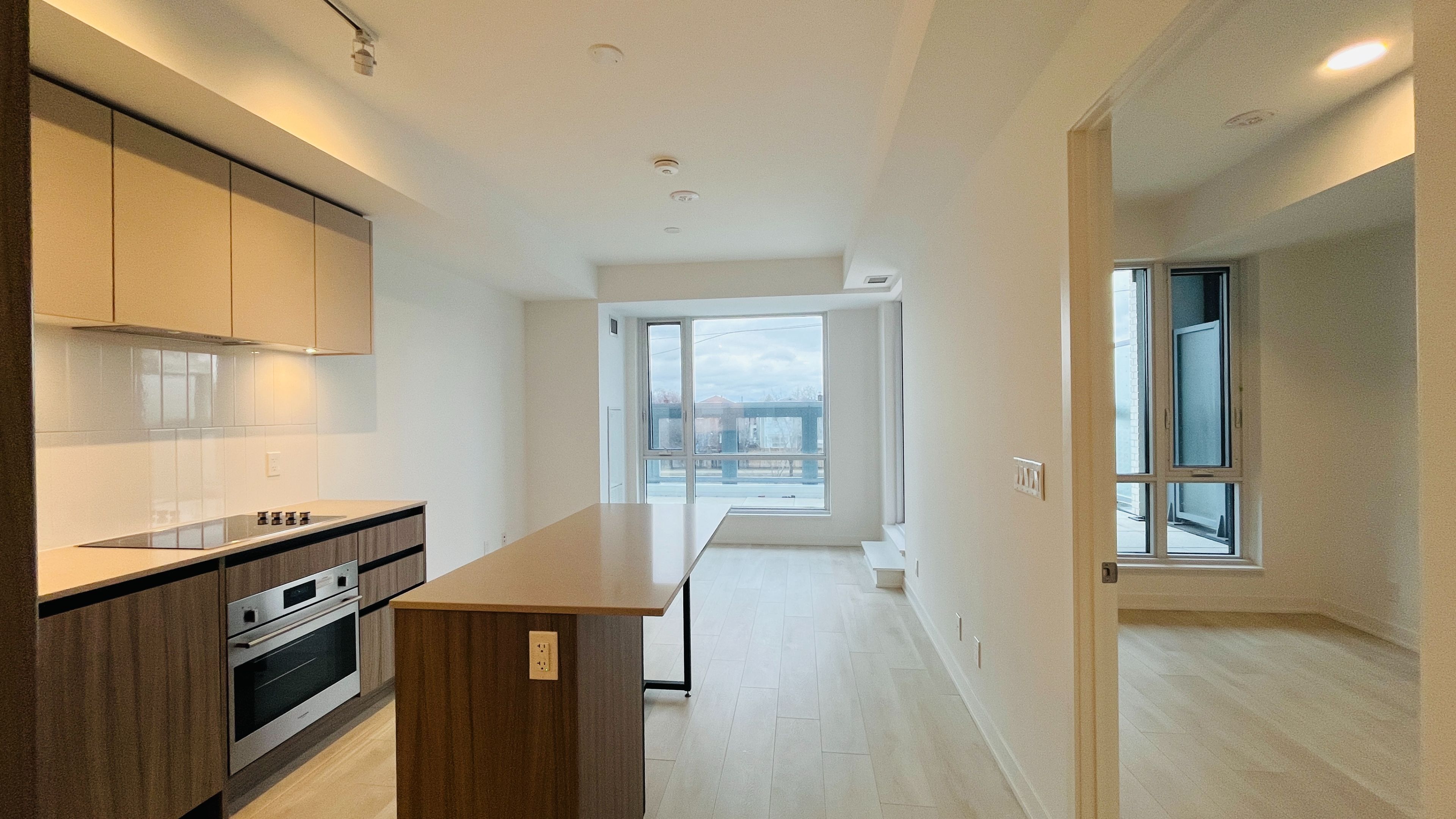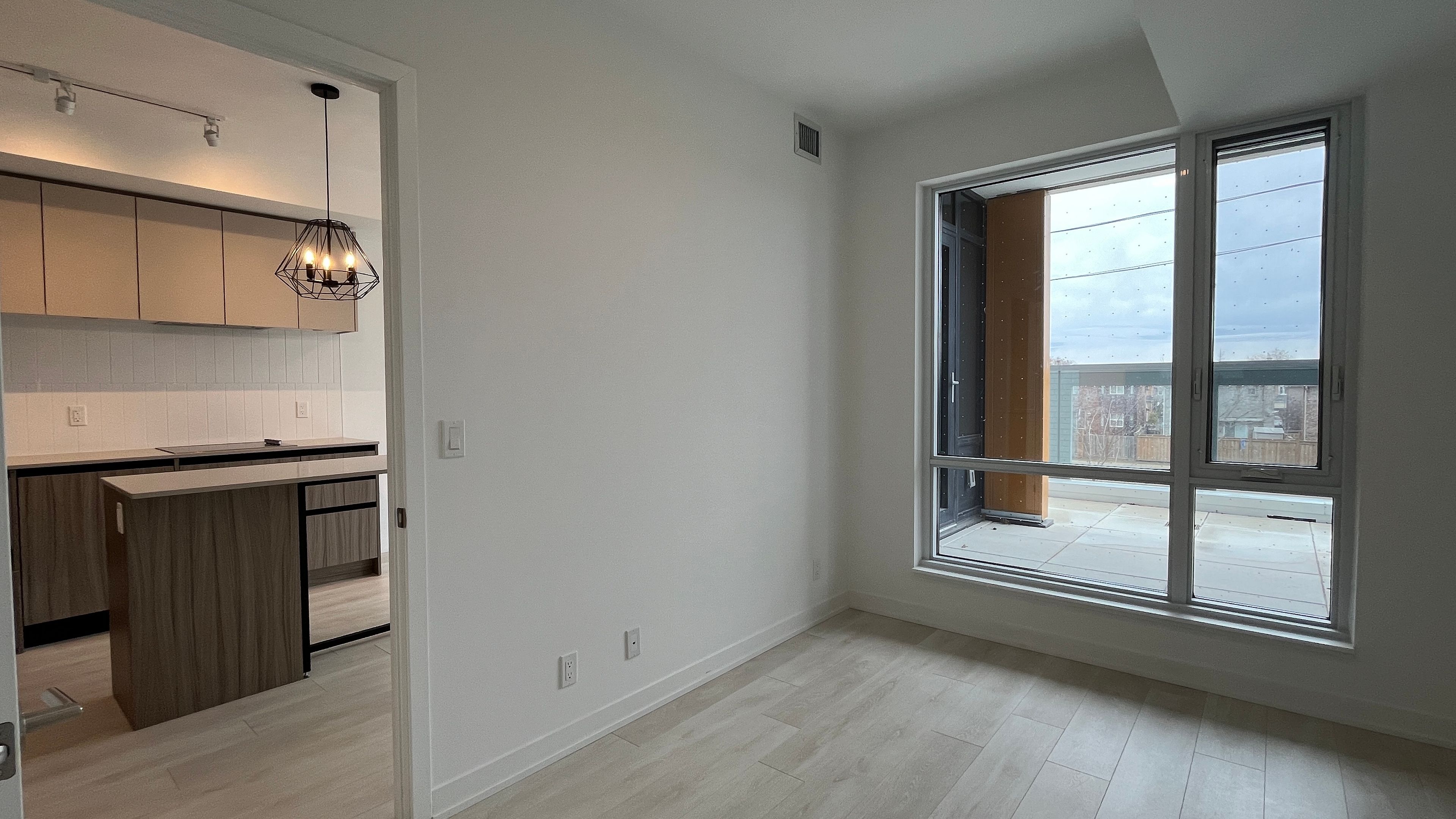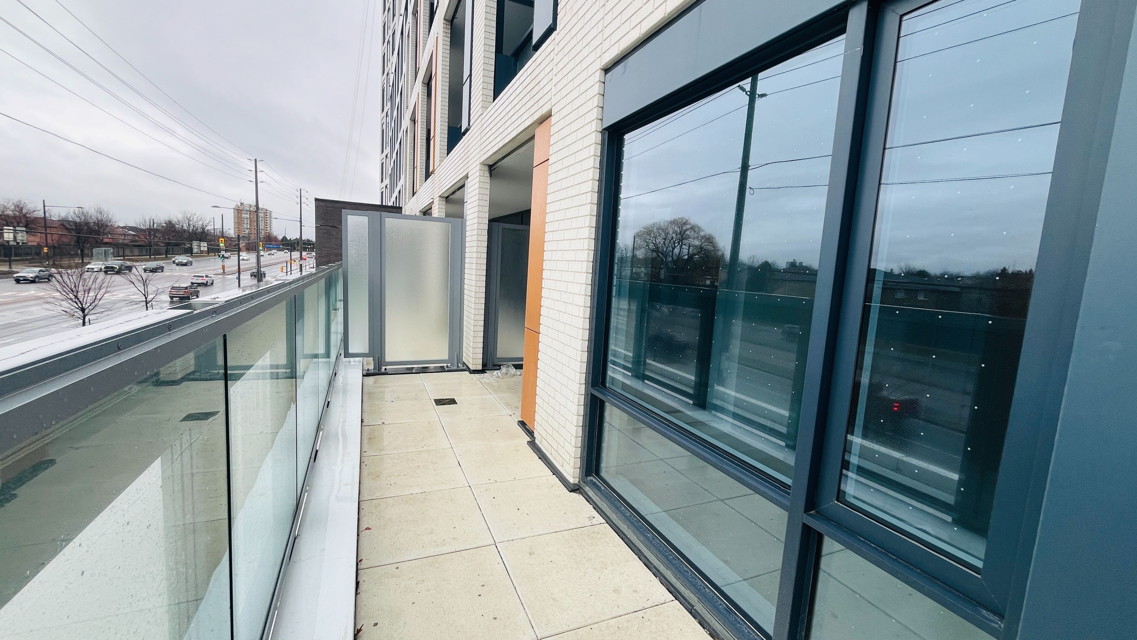 One-year-new east facing 1+1 unit w/big terrace! Welcome to this unique condo built by "daniels " located at beverly glenn area! Total of 685sf living area(573sf interior area + 112sf terrace)! All this luxury is tastefully enhanced with contemporary finishes and color selection; spacious and bright unit w/high ceiling and lots of sunlight! Modern kitchen w/quartz countertops, designer hardware and center island. Den is separated rm can be study or 2nd bedroom; designer pendant light fixture at kitchen island; ceiling light fixtures at living, bedroom and den. Walkout to terrace from living& dining space.(mls photos from laat year before the tenant moved in.)