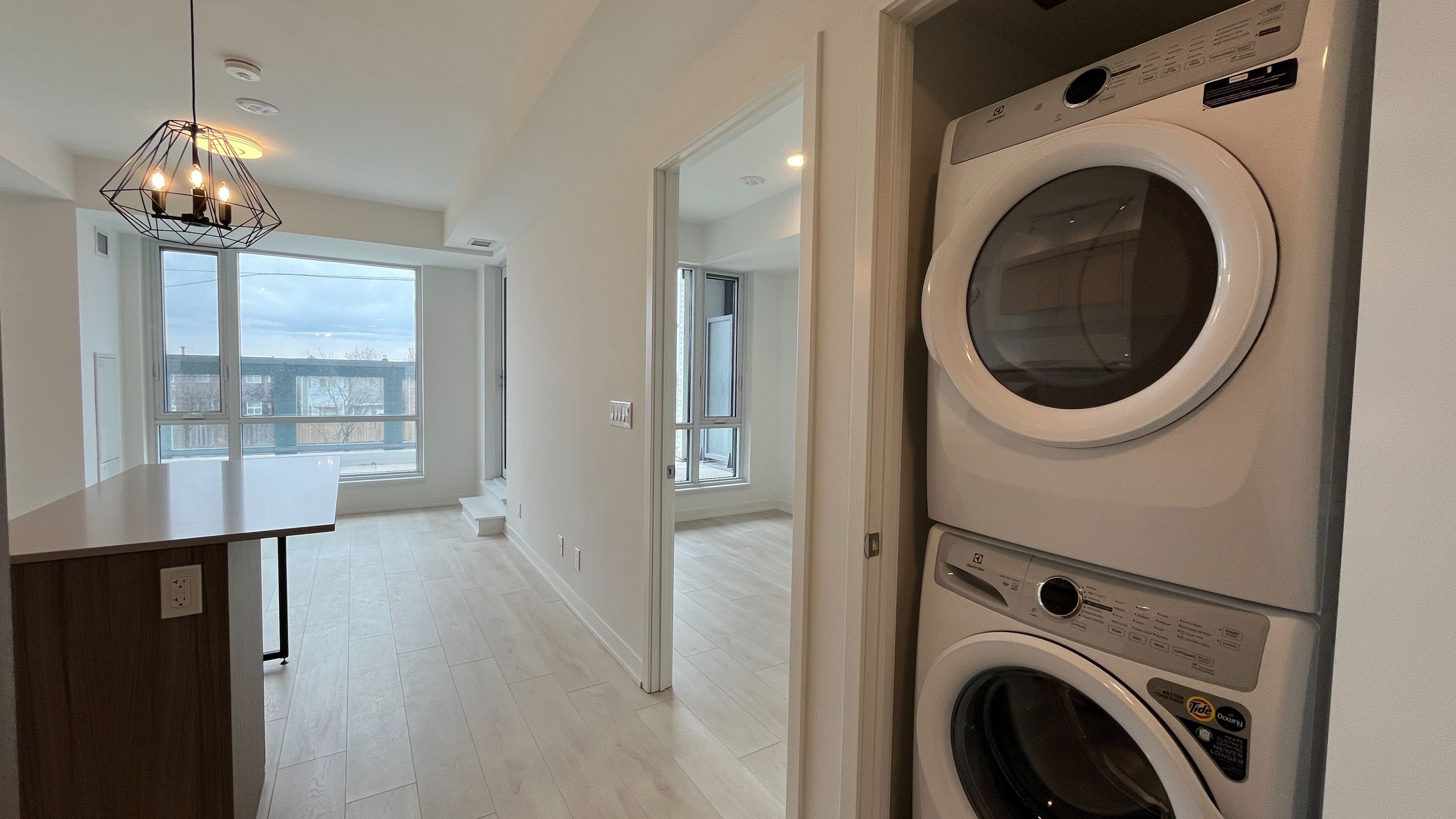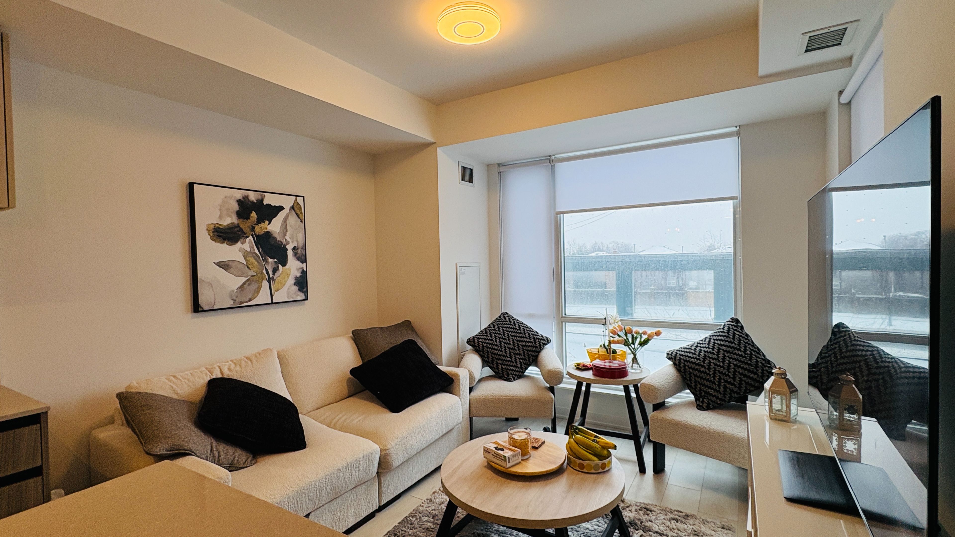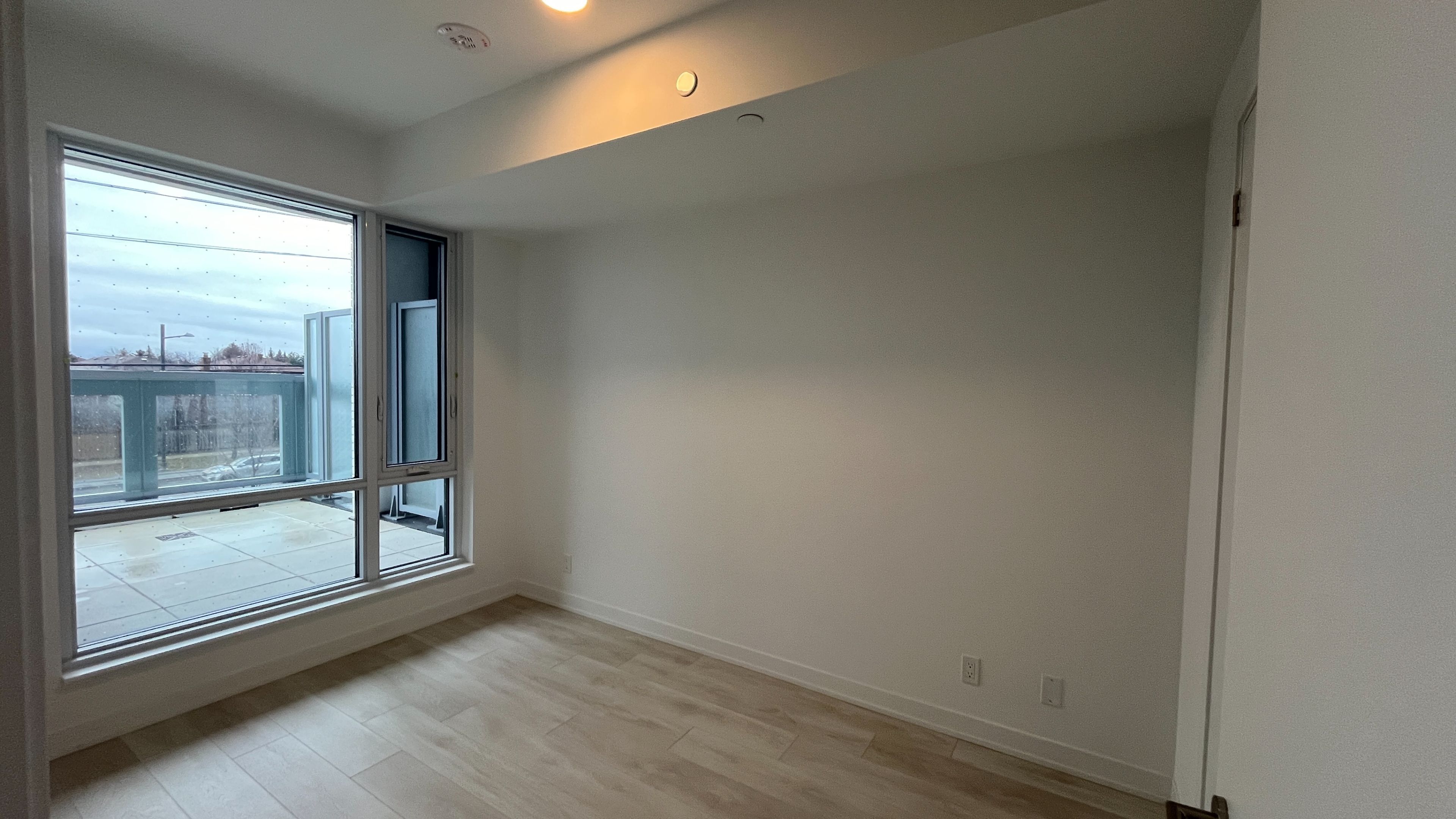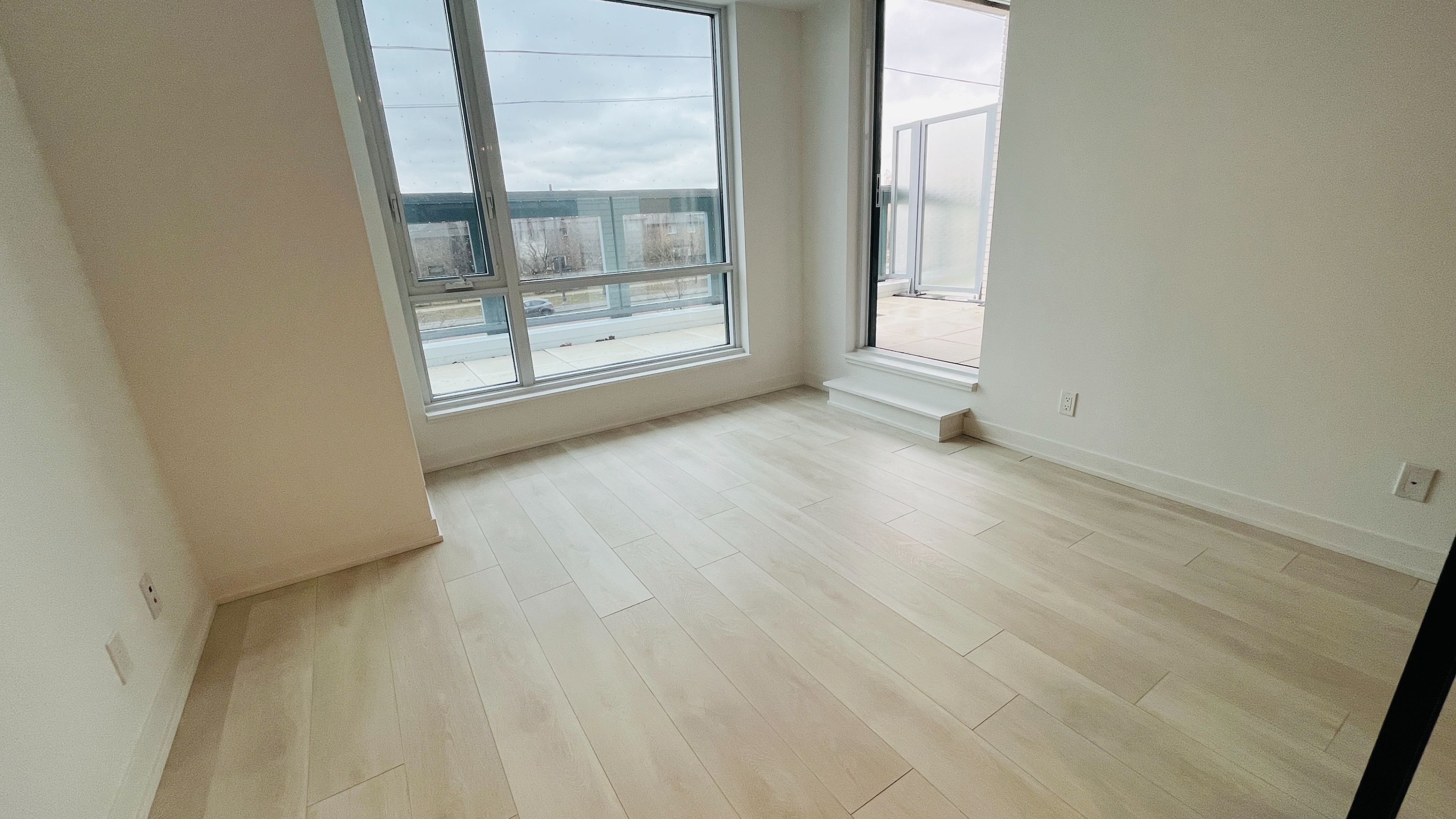 One-year-new east facing 1+1 unit w/big terrace! Welcome to this unique condo built by "daniels " located at beverly glenn area! Total of 685sf living area(573sf interior area + 112sf terrace)! All this luxury is tastefully enhanced with contemporary finishes and color selection; spacious and bright unit w/high ceiling and lots of sunlight! Modern kitchen w/quartz countertops, designer hardware and center island. Den is separated rm can be study or 2nd bedroom; designer pendant light fixture at kitchen island; ceiling light fixtures at living, bedroom and den. Walkout to terrace from living& dining space.(mls photos from laat year before the tenant moved in.)