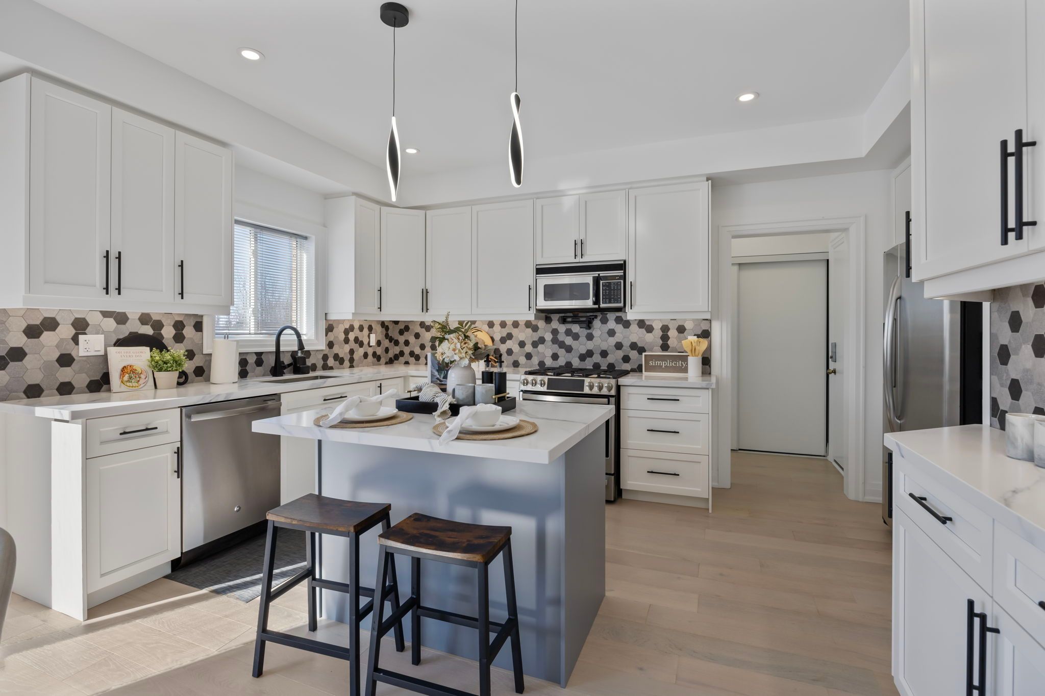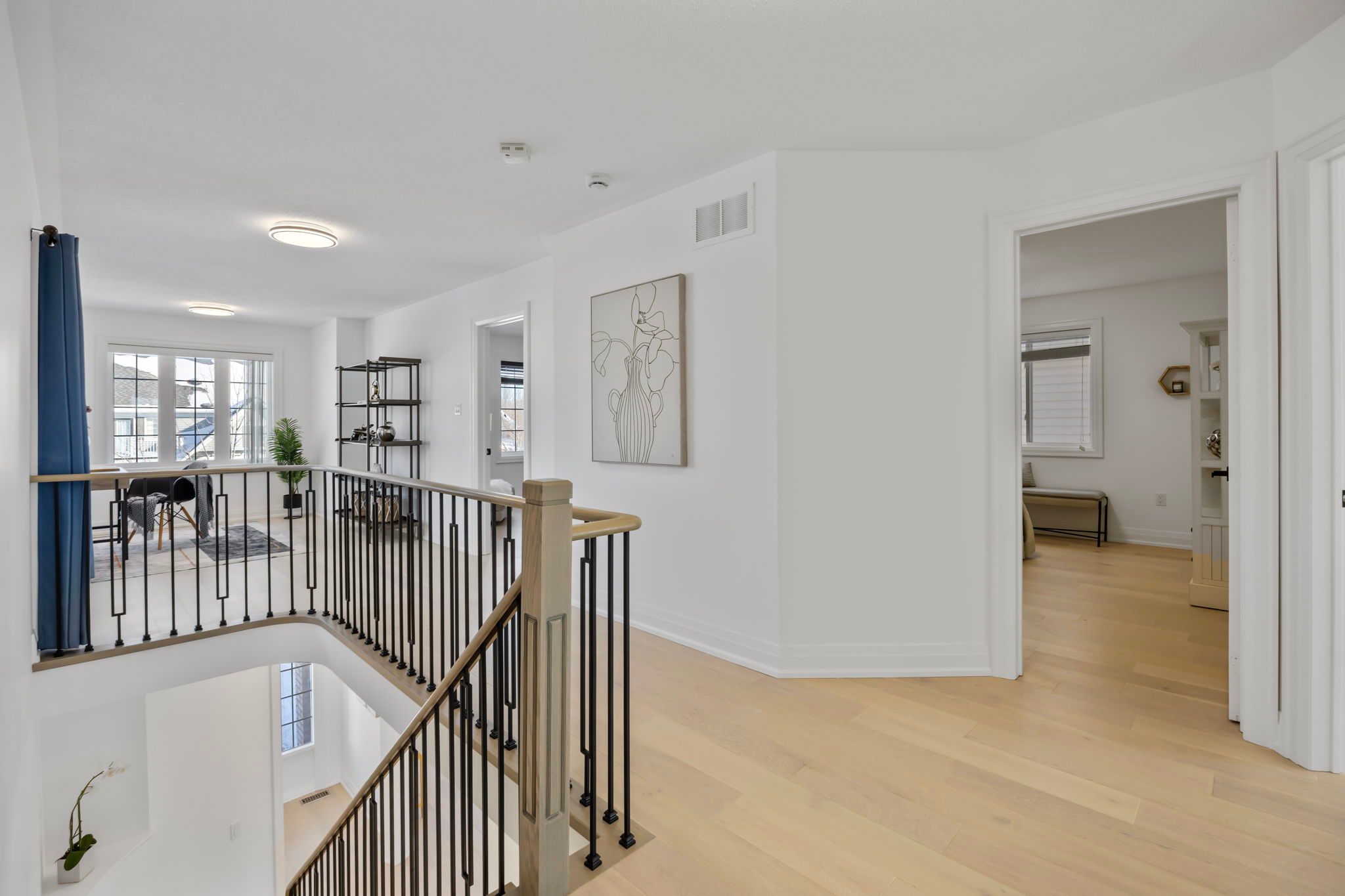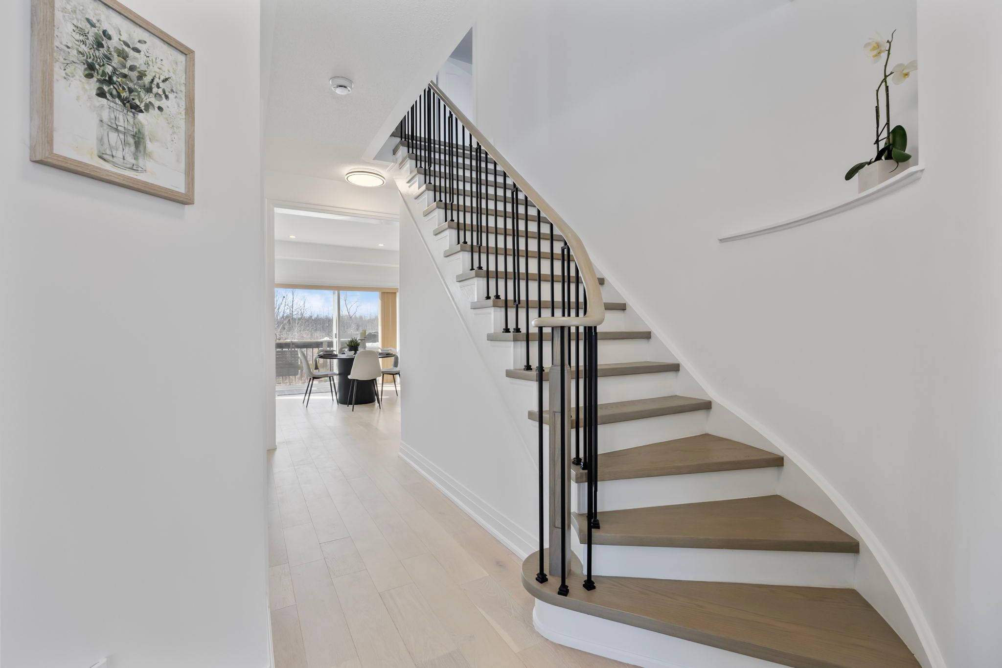 Welcome to this fully renovated 4+1 bedroom, 4-bathroom ravine-lot home offering exceptional income potential and over $250,000 in upgrades. The property features a bright walk-out basement apartment with a separate entrance, ideal for generating maximum rental income or accommodating extended family. Hardwood flooring runs throughout the entire home, complementing the modern, open-concept living spaces and updated kitchen. Upstairs includes four spacious bedrooms plus a dedicated home office, while the primary bedroom offers a private balcony overlooking the ravine. Set on a rare 180-foot deep lot backing onto forest and the trans canada trail, this home provides privacy with no rear neighbours. A city-approved extended driveway allows parking for up to three vehicles outside the garage, making it perfect for multi-generational living or rental use. Completely move-in ready, this home delivers premium finishes, strong rental upside, and a peaceful natural setting.