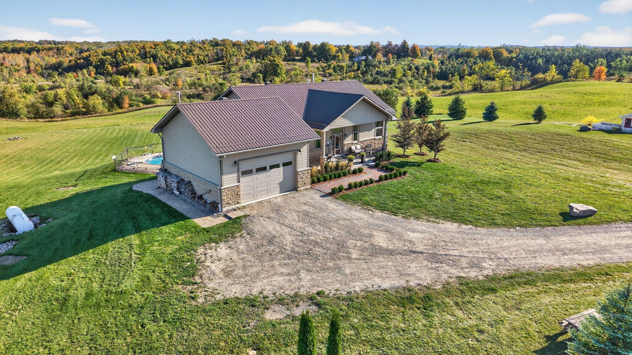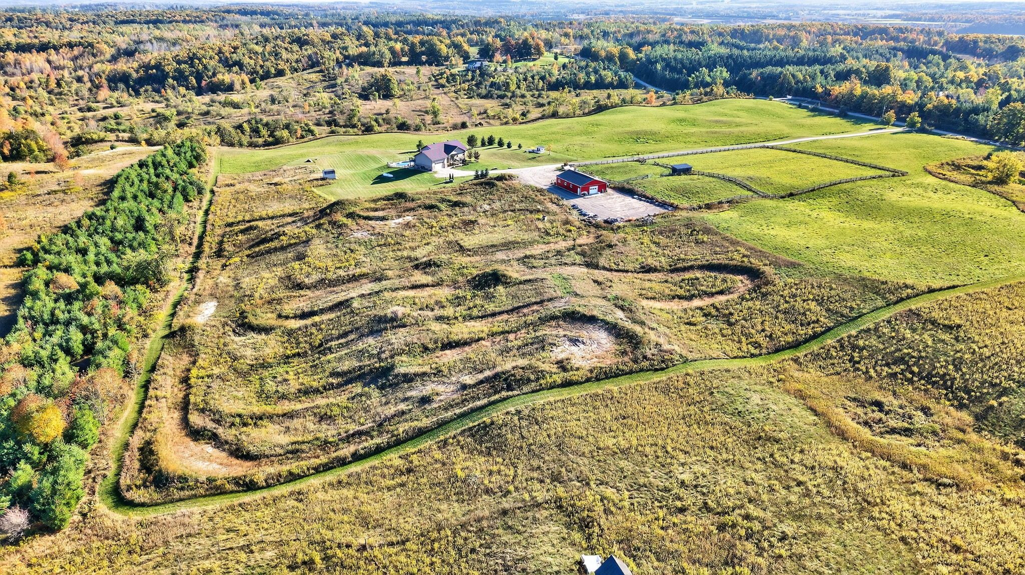 Welcome to your very own spectacular retreat in the picturesque rolling hills of mulmur set on 26 acres. This 3 plus 2 bedroom stunner bungalow has so many upgraded & fabulously unique features giving you a modern graceful farmhouse feel, which includes soaring 12 foot ceilings, open concept kitchen, large bedrooms, gorgeous primary bedroom with motorized blinds, a true spa like bathroom en-suite, beautiful brick wall features, a walk-out lower level, complete with a cozy family room, 2 more bedrooms & a newer bathroom with a walk-in shower. Outside, you will find a lovely professionally landscaped backyard oasis with an inground pool that has a new liner, filter, pool heater & pool cover that screws into the deck, all in 2022. This property is perfect for your hobby farm boasting a modern barn with 3 paddocks with shelter, a horse wash bay with infrared heat, a heated & insulated room, a shower & a professional motocross track. More features include a metal roof, upgraded roof vents, motorized blinds in living room, attached oversized insulated garage with wood fireplace, stairs to basement & plywood walls & ceilings. Perfectly located within 12 minutes to mansfield ski hills, 12 min to the amenities of shelburne, 19 min to alliston hospital which is undergoing a huge expansion, 4 min to the famous mrs mitchell's fine dining restaurant & 52 min to brampton. Bonus. Only a few min away is murphy's pinnacle lookout which is part of the bruce trail network and located within the boyne valley provincial park.