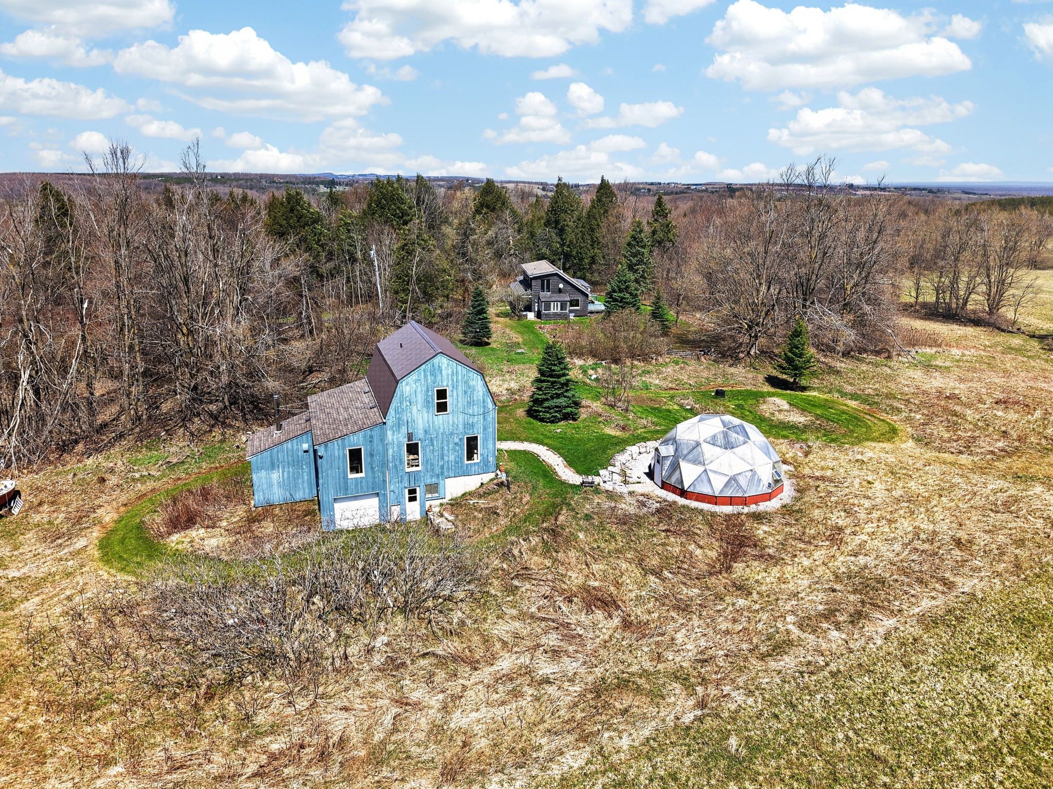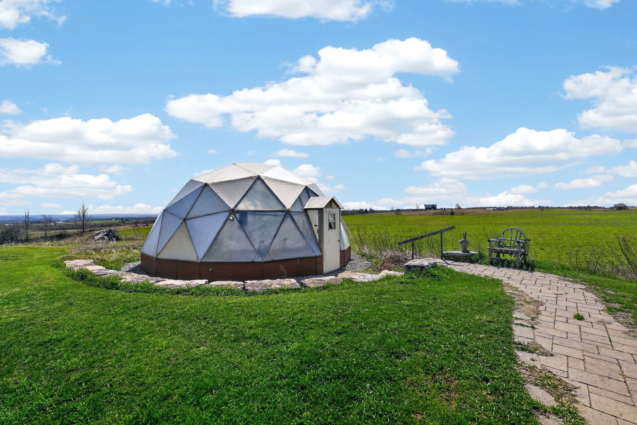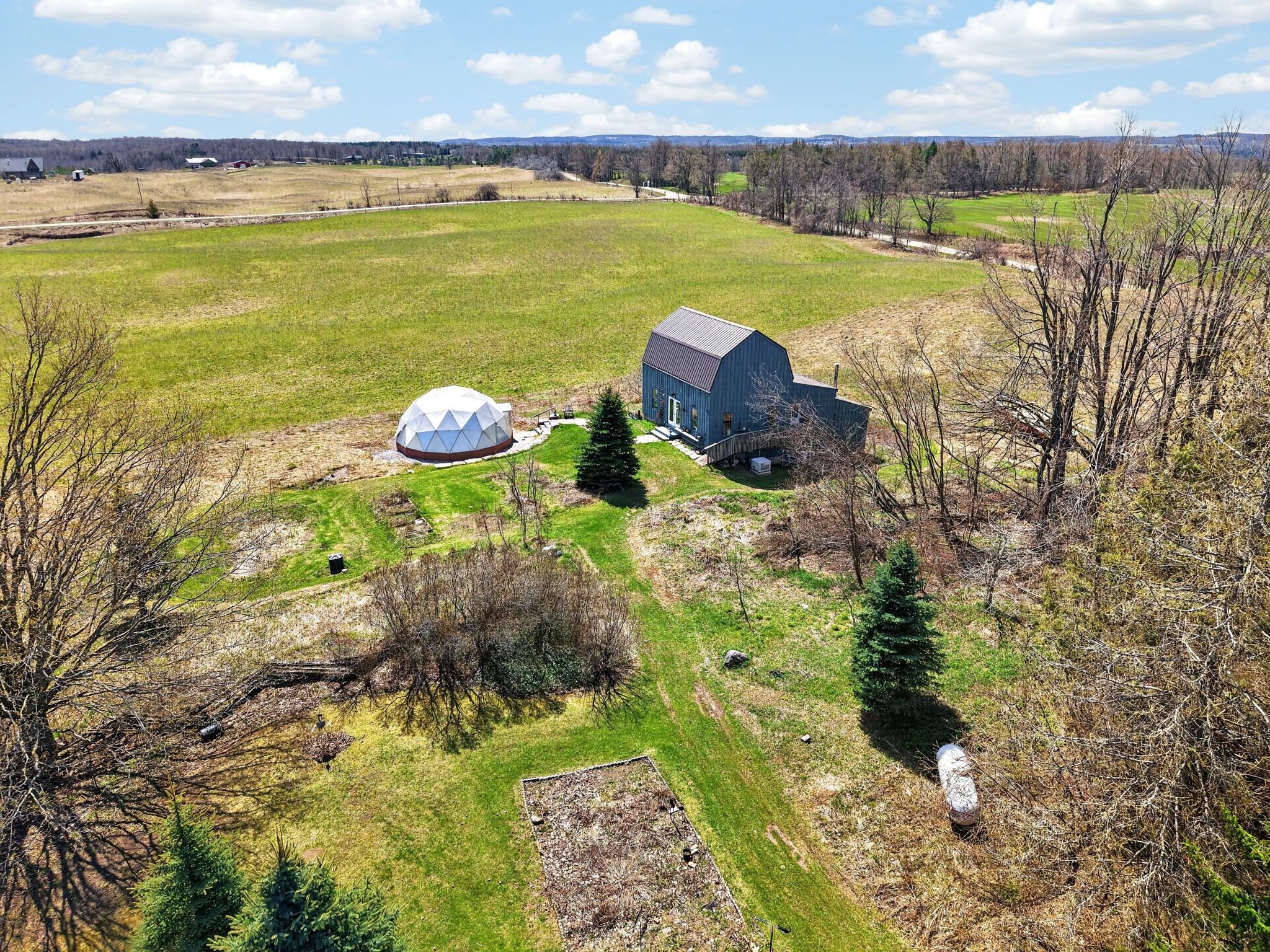 Nestled in the picturesque hills of mulmur this property has a little bit of everything. Follow the private paved laneway to endless opportunities here with a 2+1 bedroom home, and and amazing separate 30x20 studio could easily be turned into a guest house, bunkie, air bnb, garage and shop space also on the lower level. Also has a 26ft dome style greenhouse which is close and convenient. Property has everything to offer sitting on 65 acres, approximately 15 workable acres which is currently in hay and being farmed, the rest is mixed forest and bush and also has a nice size pond just steps from the house. The home has a great open concept main floor designed giving you amazing views from pretty much any room, walk out to a large deck to truly enjoy this property to it's fullest. Guaranteed peace and quiet as it's located on a dead end road and just a short drive to alliston, mansfield and minutes off hwy 89 and the well known mrs mitchells restaurant.