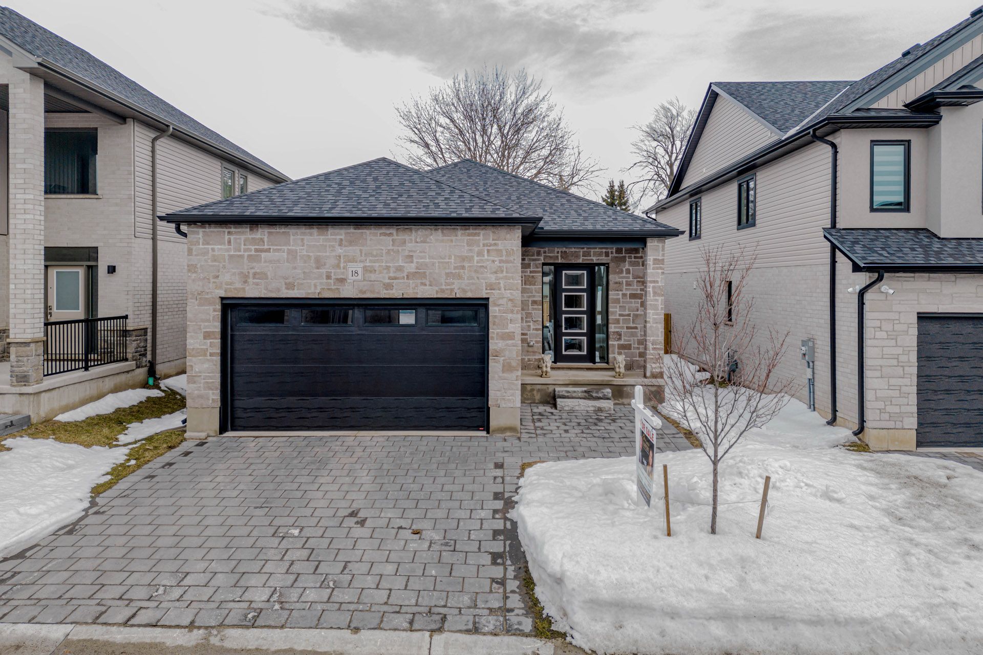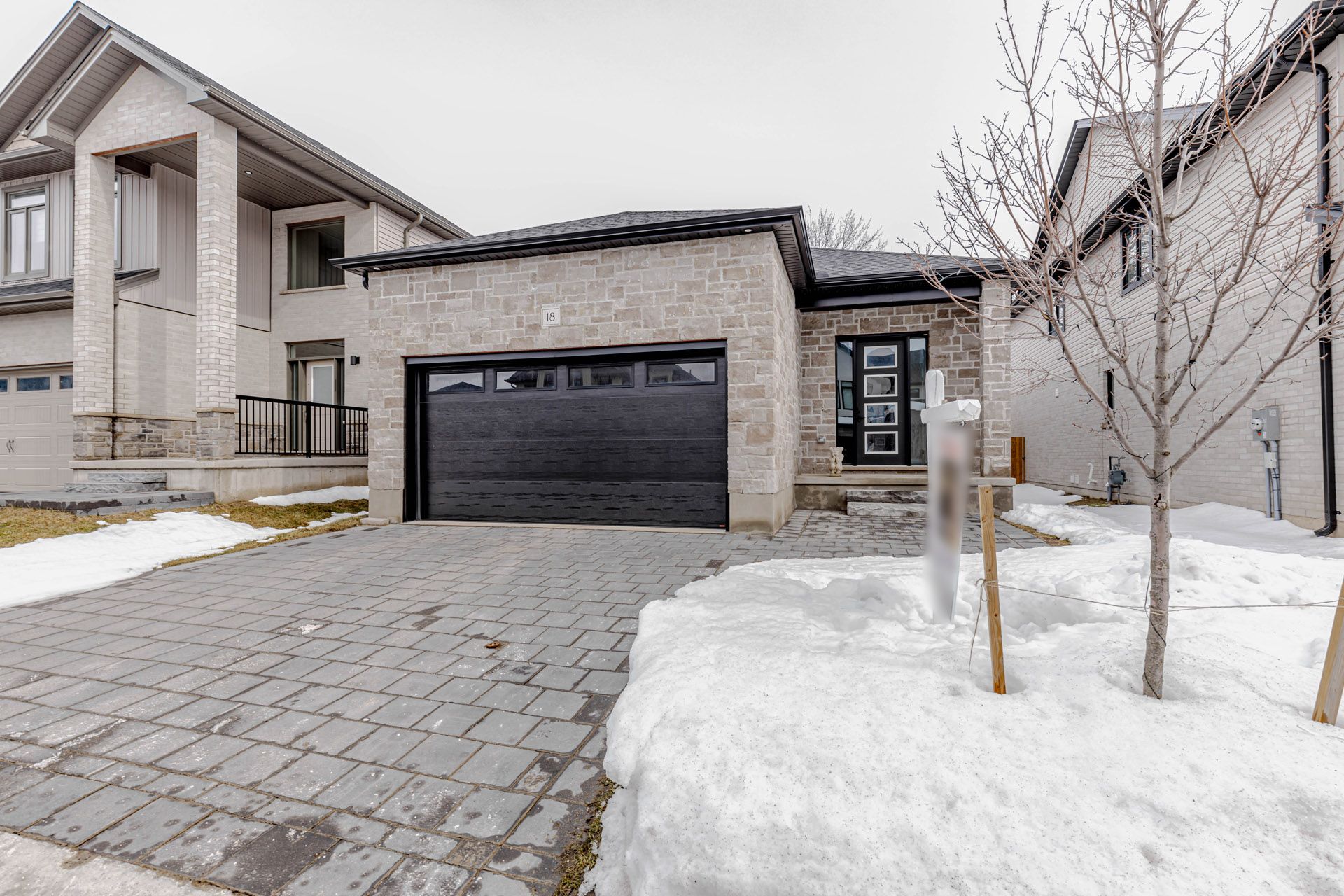 Welcome to granton estates, a premier vacant land condominium community offering the perfect blend of modern luxury and peaceful living. Ideally located just 15 minutes from masonville in london and only 5 minutes from lucan, this exceptional bungalow provides suburban tranquility with convenient access to city amenities. This beautifully designed 1,277 sq. Ft. Bungalow features 2 bedrooms, 2 full bathrooms, and a spacious 2-car garage. The open-concept layout is enhanced by impressive 10-foot ceilings, creating a bright and airy atmosphere throughout. The custom kitchen is thoughtfully designed for both everyday living and entertaining, showcasing stunning quartz countertops, quality cabinetry, and premium finishes. The primary suite offers a private ensuite complete with an elegant glass shower. Engineered hardwood and tile flooring flow seamlessly throughout the home, combining style and durability. A side door entrance to the basement provides added flexibility and future development potential, as framing is already completed by the seller and seller can finish basement with 2 bedroom, one full bath accompanied by a kitchen, family room and separate laundry. The exterior boasts striking stone and brick finishes, adding timeless curb appeal to this charming community setting. Enjoy peaceful living just north of london while benefiting from significant value compared to neighboring communities. Don't miss your opportunity to own in granton estates - where comfort, quality, and location come together.