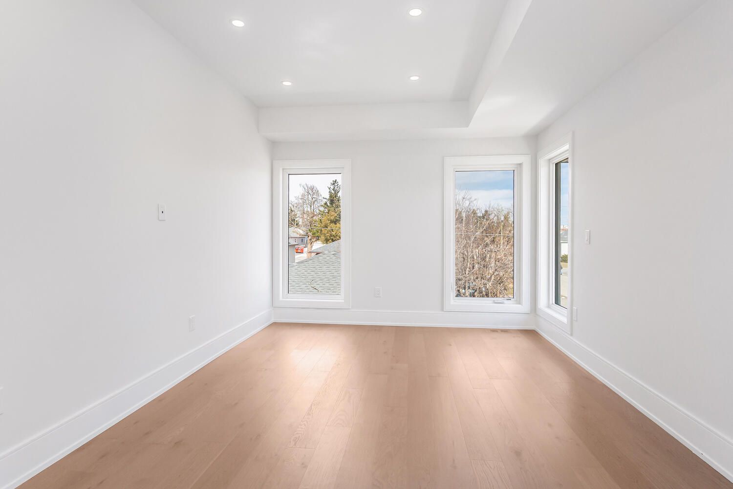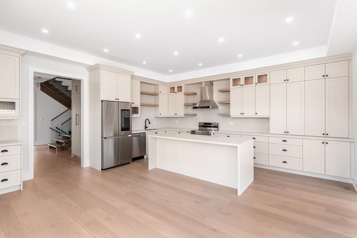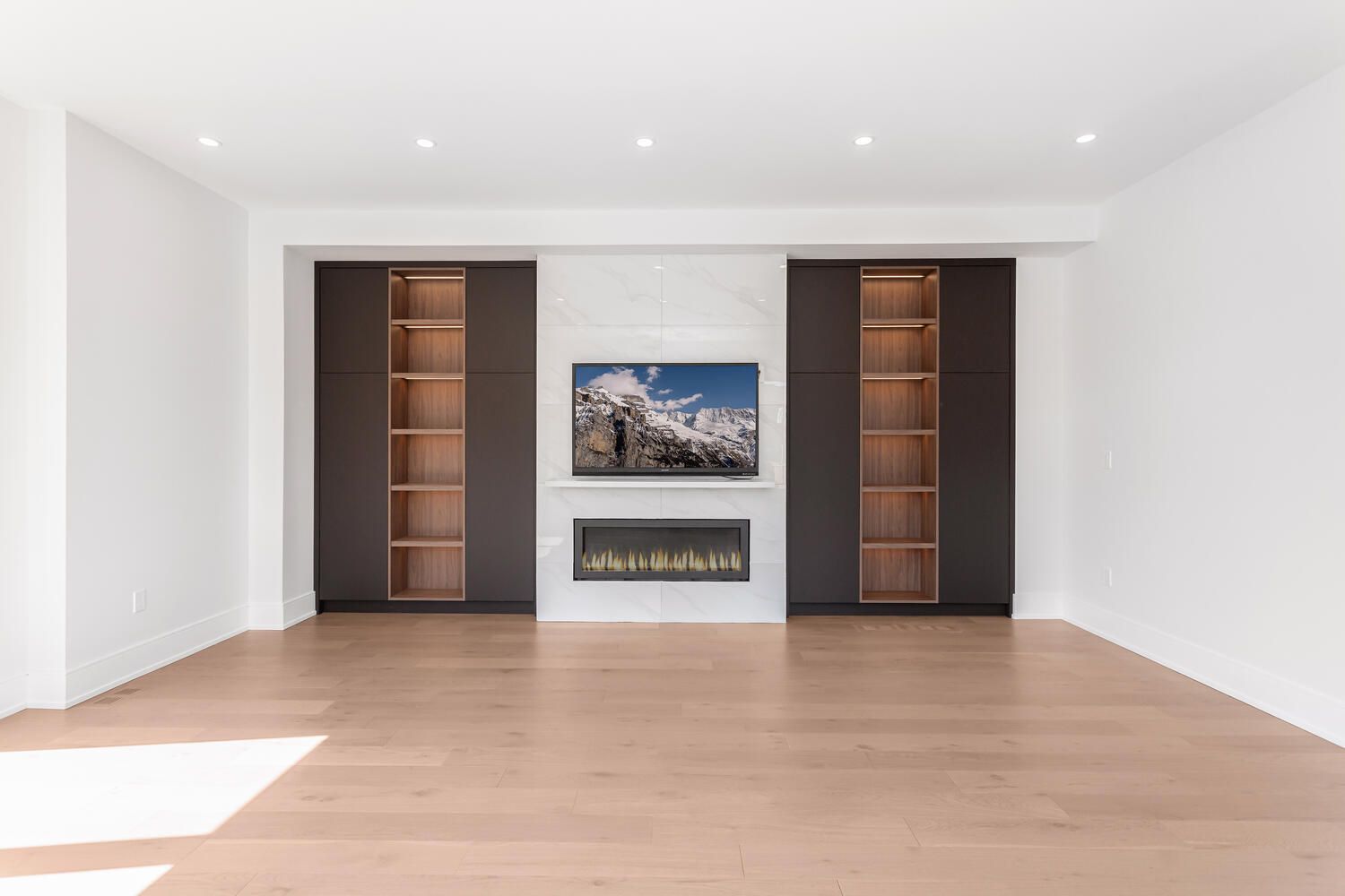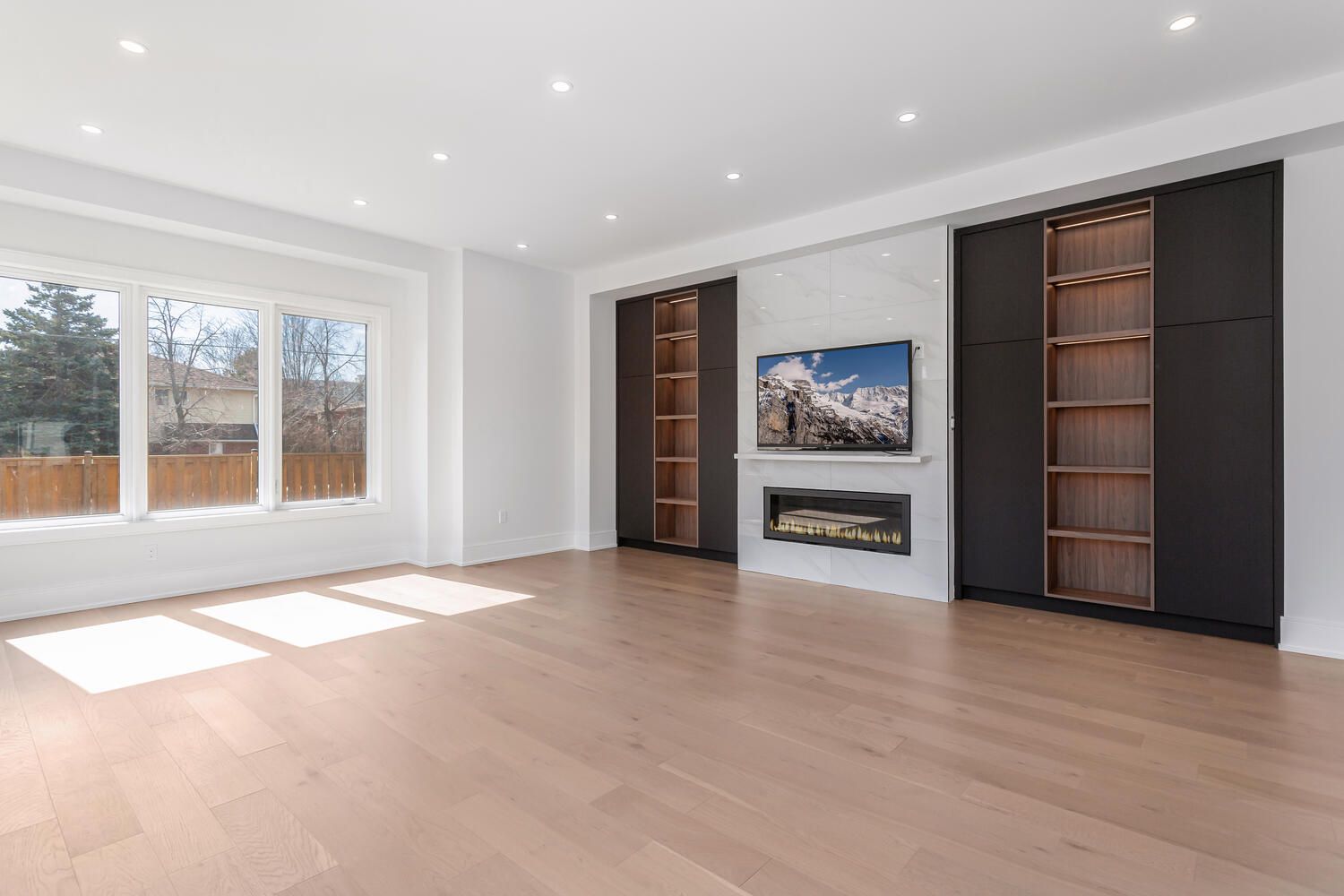 This newly built custom home by a tarion-registered builder in lakeview features a bright foyer with open stairs and a glass railing, a main floor office, and a built-in closet. The spacious great room includes a gas fireplace with built-in shelving, while the stylish kitchen isequipped with stainless steel appliances, a beverage fridge, and elegant quartz countertops, providing a perfect setting for entertaining. The primary suite offers a custom walk-in closetand a luxurious five-piece ensuite with a soaker tub. Upstairs are three additional bedrooms, one with a three-piece ensuite, a laundry room, and custom-built closets. The finished lower level includes a living room, a fifth bedroom, a kitchen (without appliances), and a private walk-up entrance, ideal for an extended family or a nanny. The home features 10-foot ceilings onthe main floor and 9-foot ceilings on the upper and lower levels.