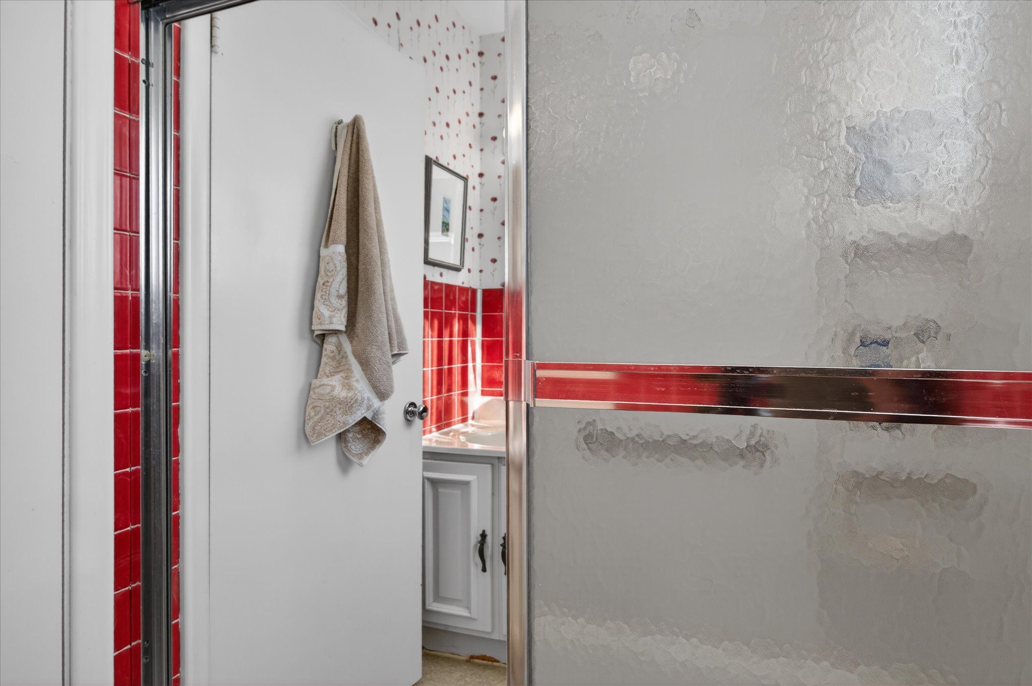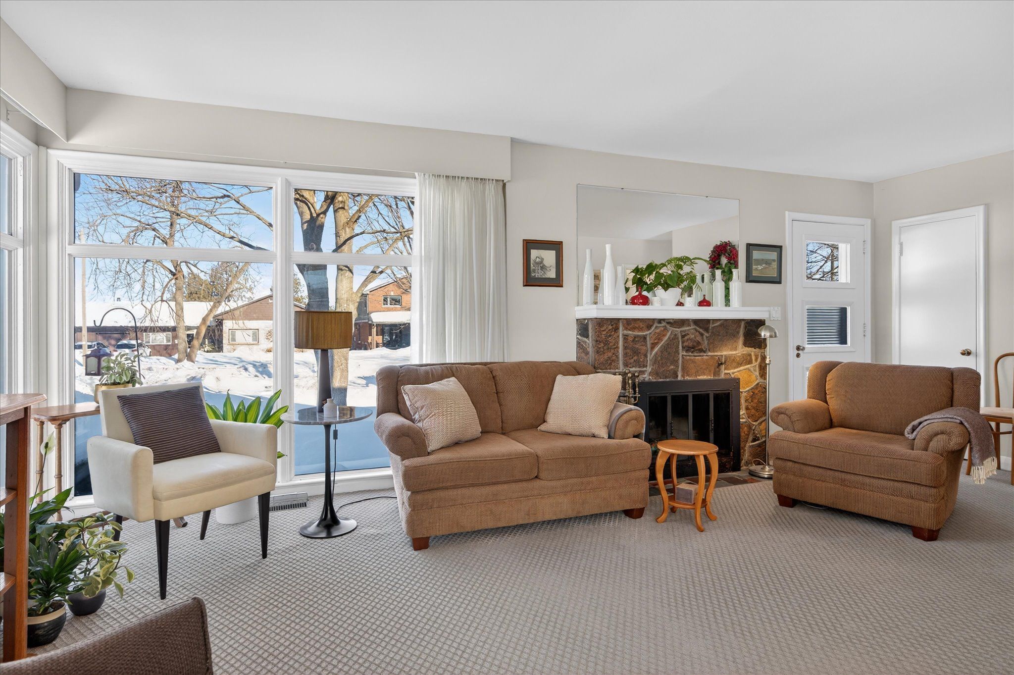 • Original wood-burning fireplace adds character to the living room.