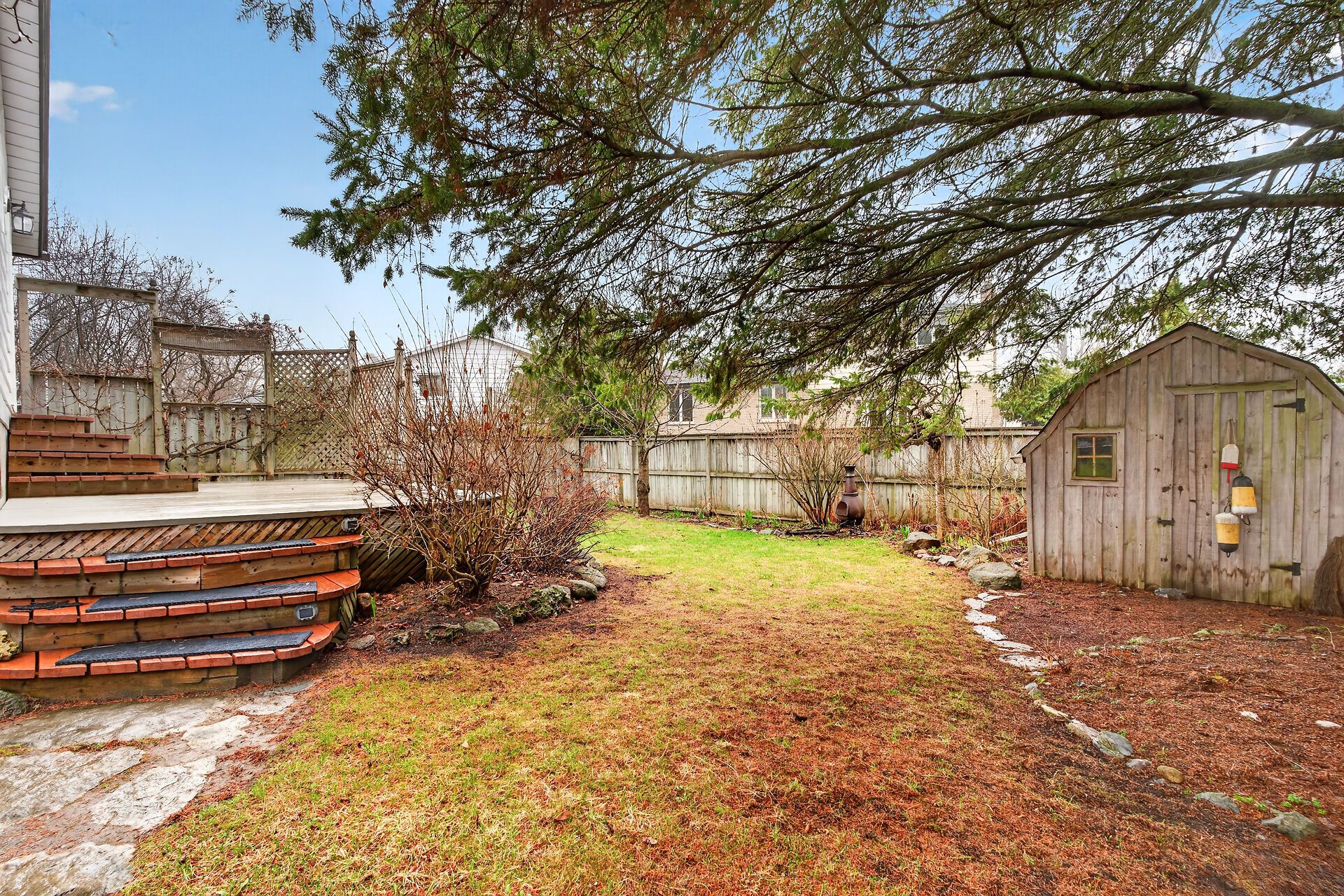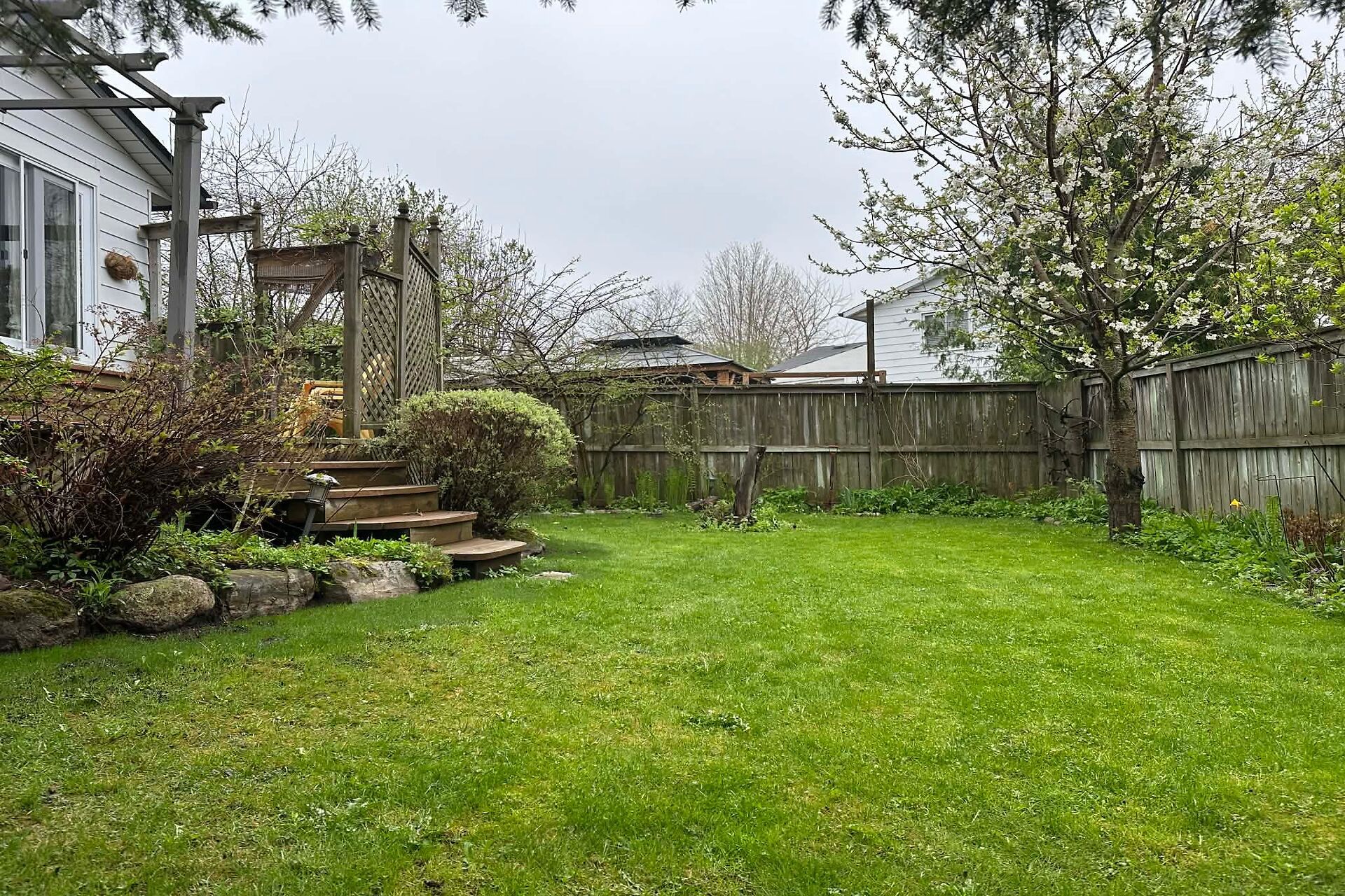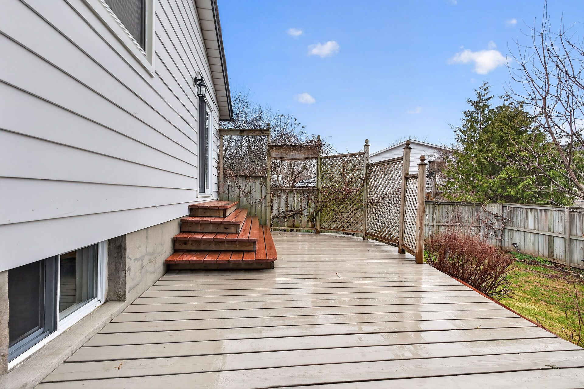 • Private backyard with a spacious cedar deck and beautiful perennial gardens.