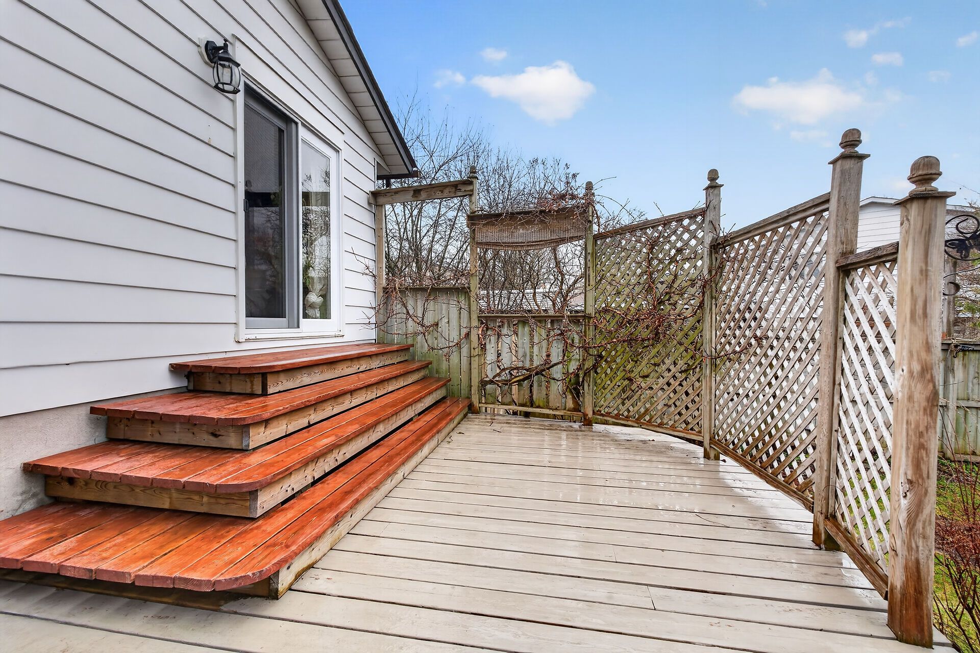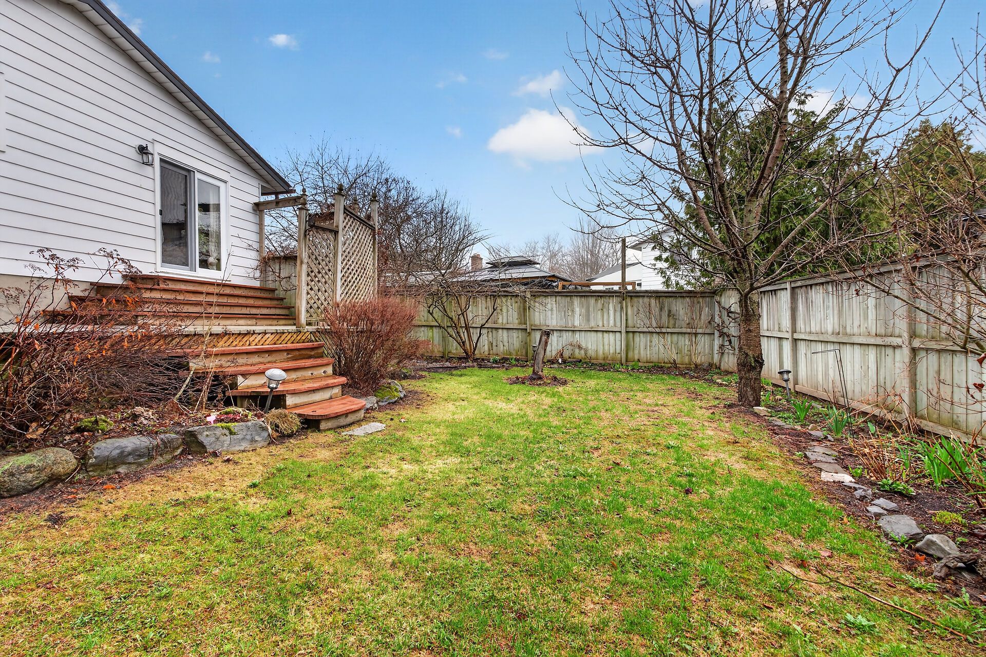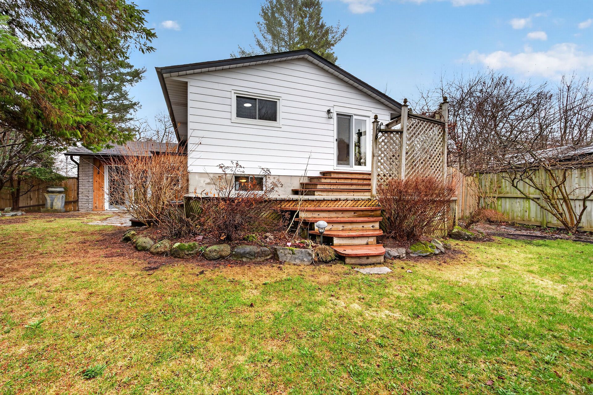 • Private backyard with a spacious cedar deck and beautiful perennial gardens.