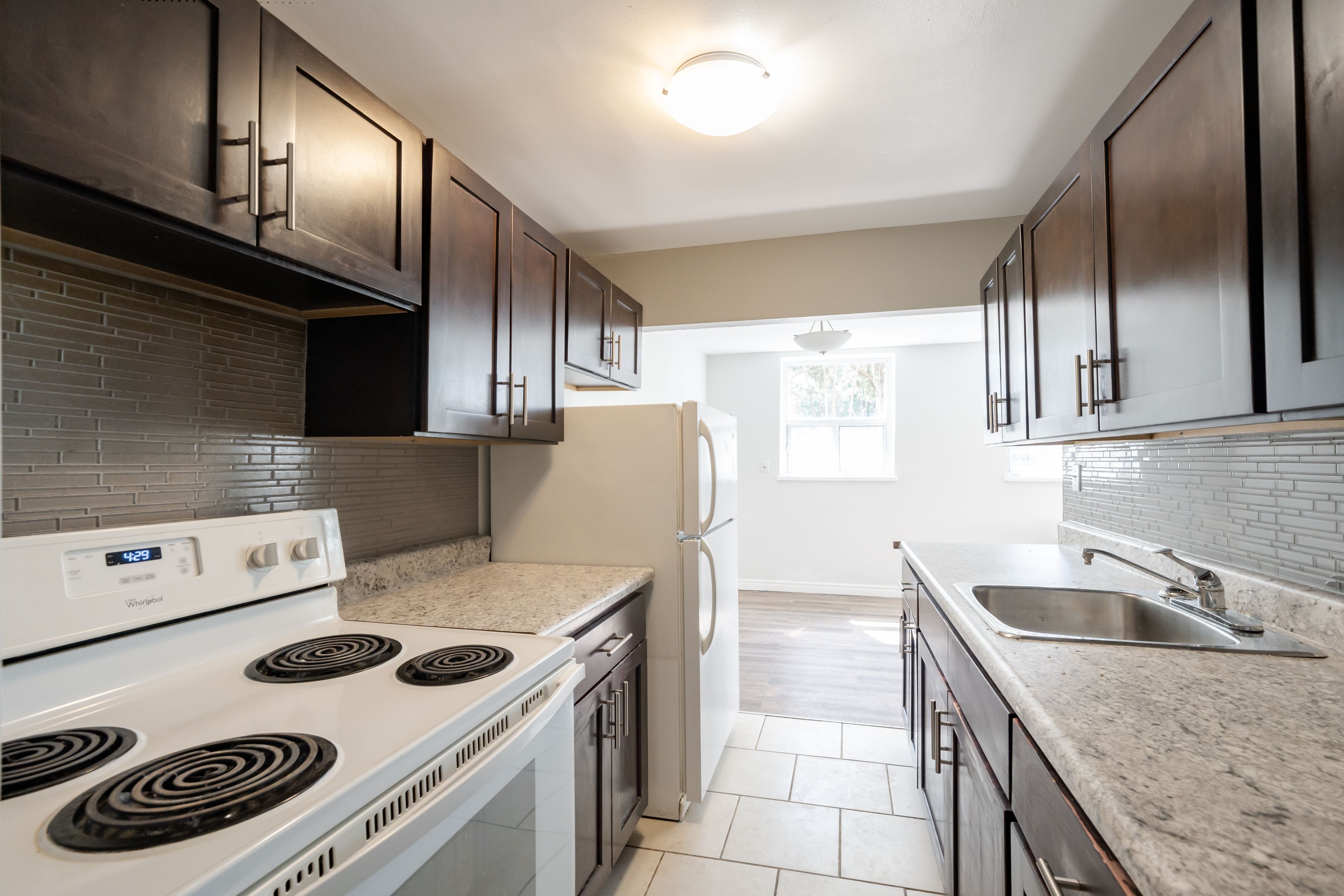 Welcome to our 2 bedroom suite. Upgraded to meet the needs, including solid wood cherry cabinetry, complemented with stainless steel fridge and stove. Hardwood floor or wood planks throughout the living and sleeping areas while the bathroom and kitchen have been updated with ceramics. New windows also keep you warm and toasty in the winter months. Located 5 mins to the burlington lakeshore.