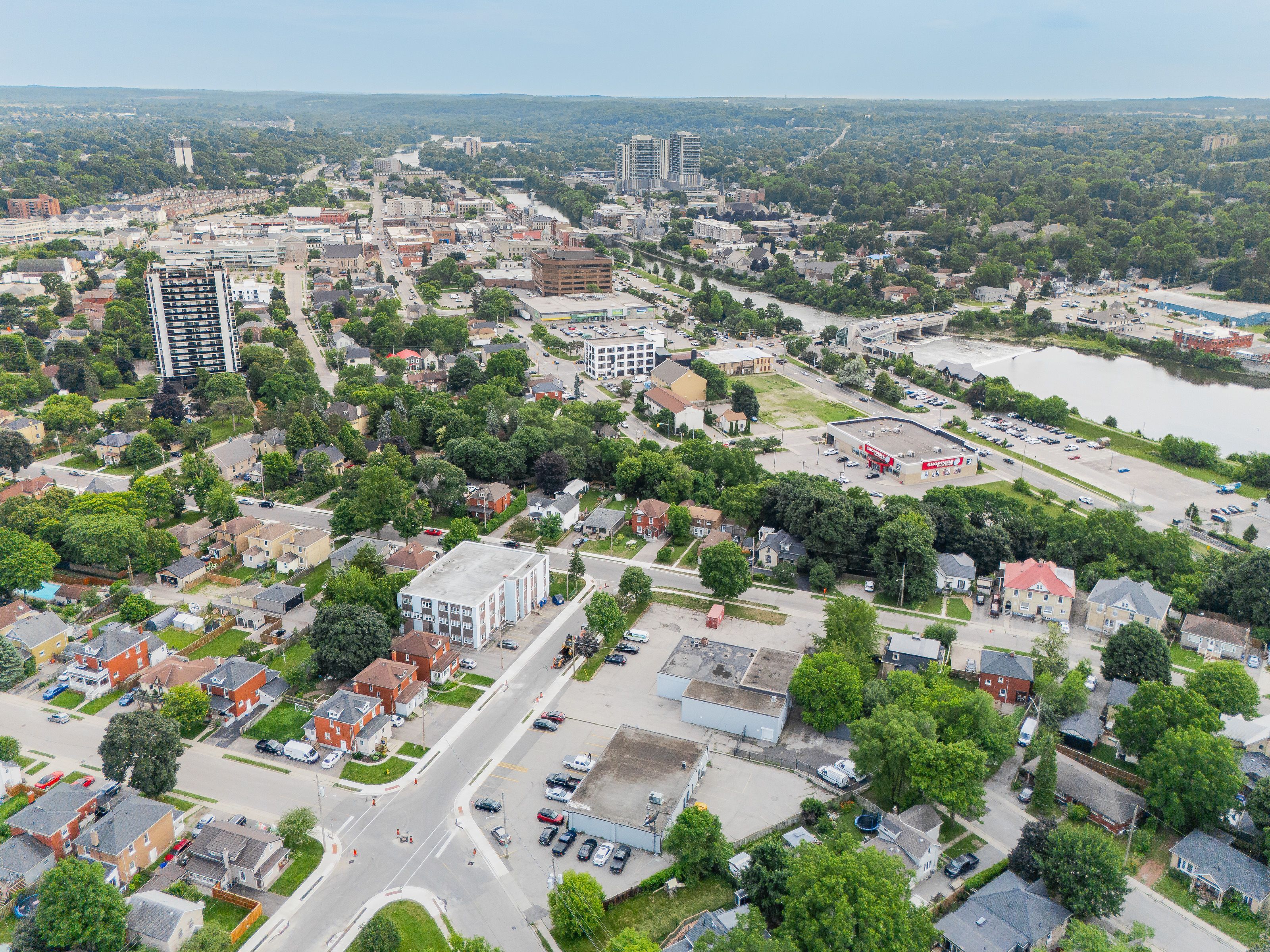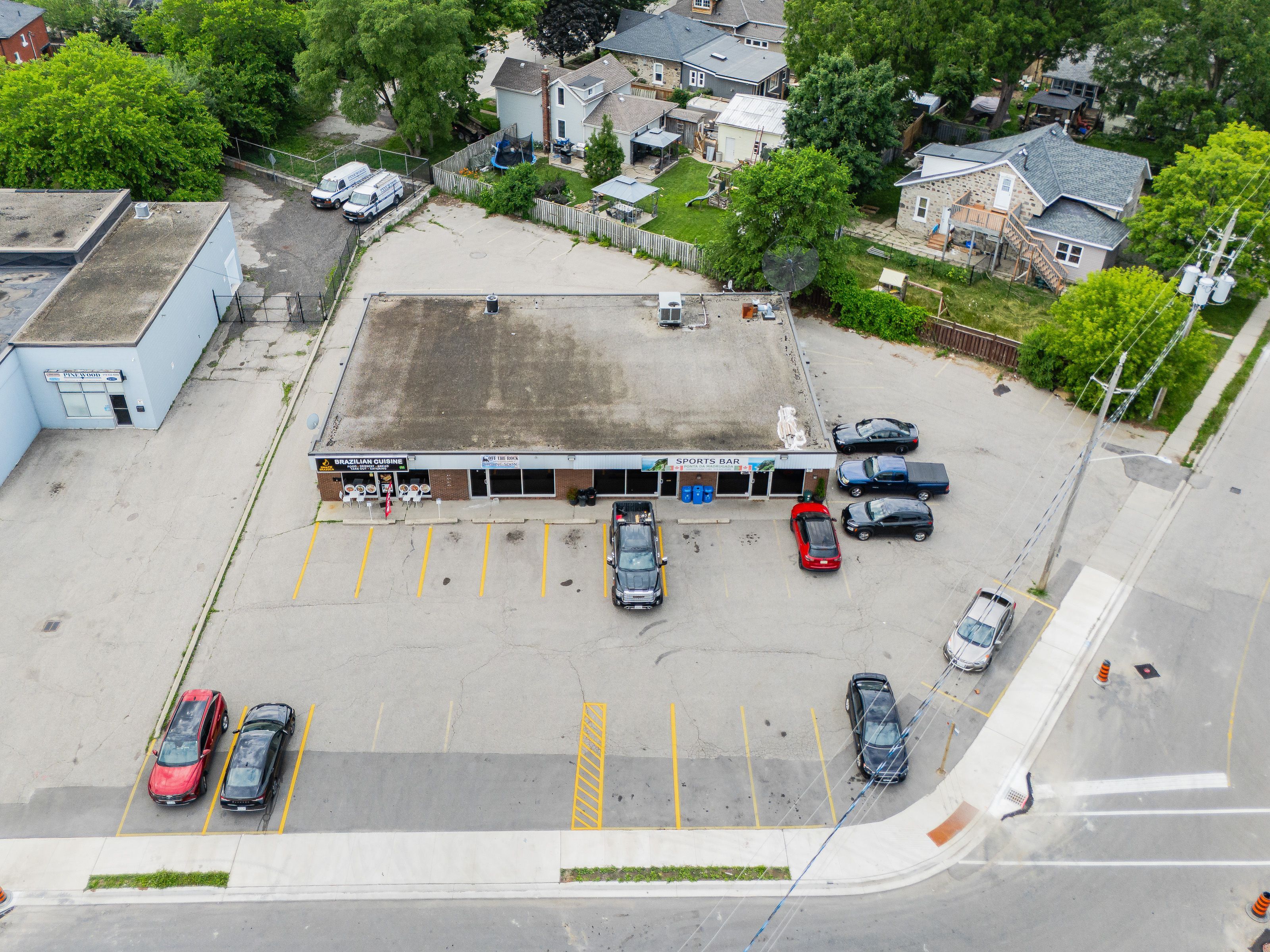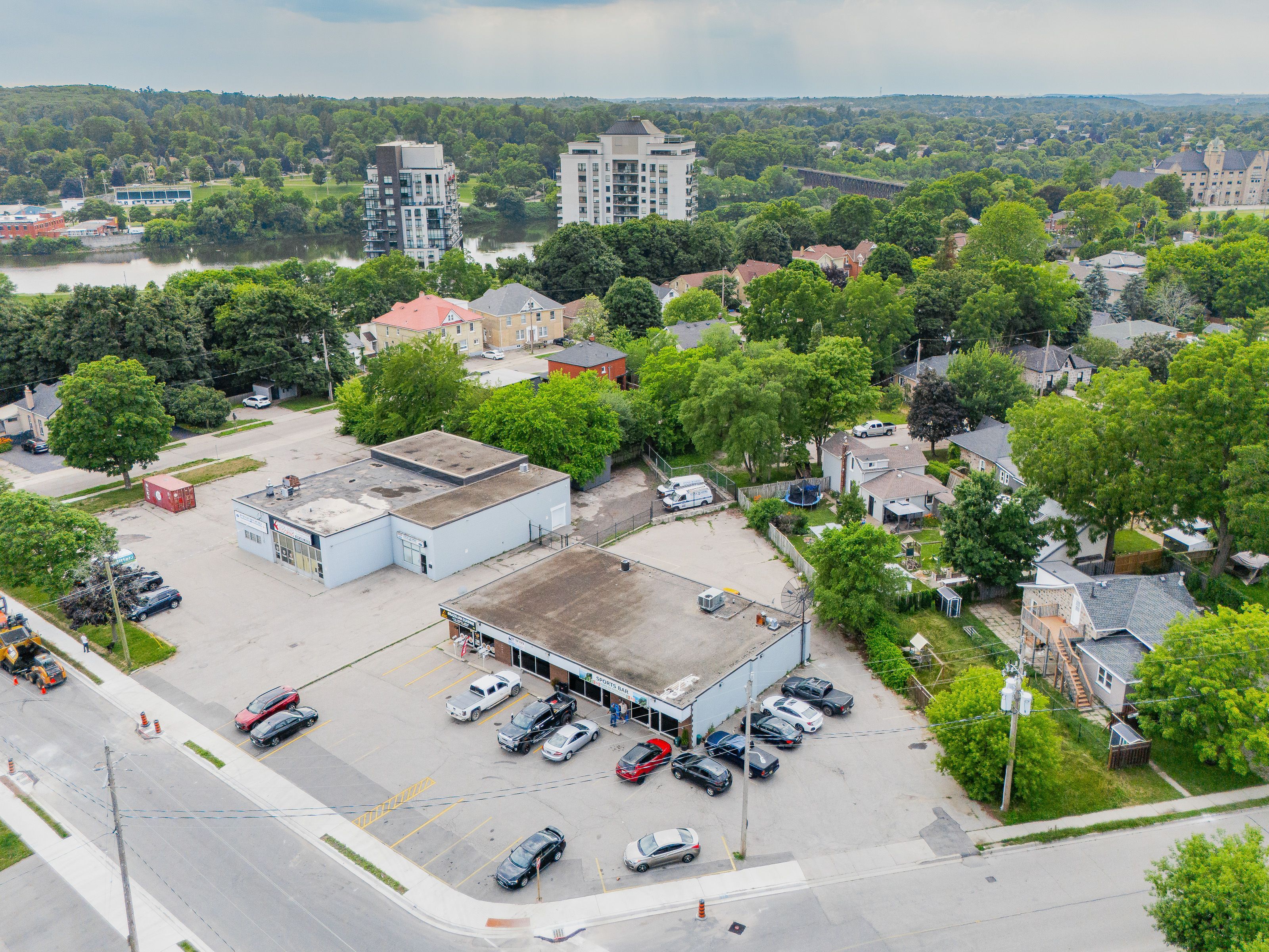 The subject properties consists of two (2) commercial buildings on adjacent lots whose combined total is 1. 03 acres. 8 oxford st is a 5,350 sf three (3) unit multi-tenant building on a . 586 acre site. The property has approximately 814 sf of mezzanine, three (3) drive-in doors, between 16 19 clear heights and twin separate ng, electrical, water and sanitary services. 12 oxford st is a 4,000 sf four (4) unit retail plaza on a . 444 acre site. The property offers ample parking and variety of separated services. Zoned cs5, the subject properties enjoy a variety of permitted use. The sites are proximate to both the proposed lrt as well as the galt city centre core area. This, coupled with a continued and increasing desire for residential density, the subject properties are positioned well for the exploration of rezoning.