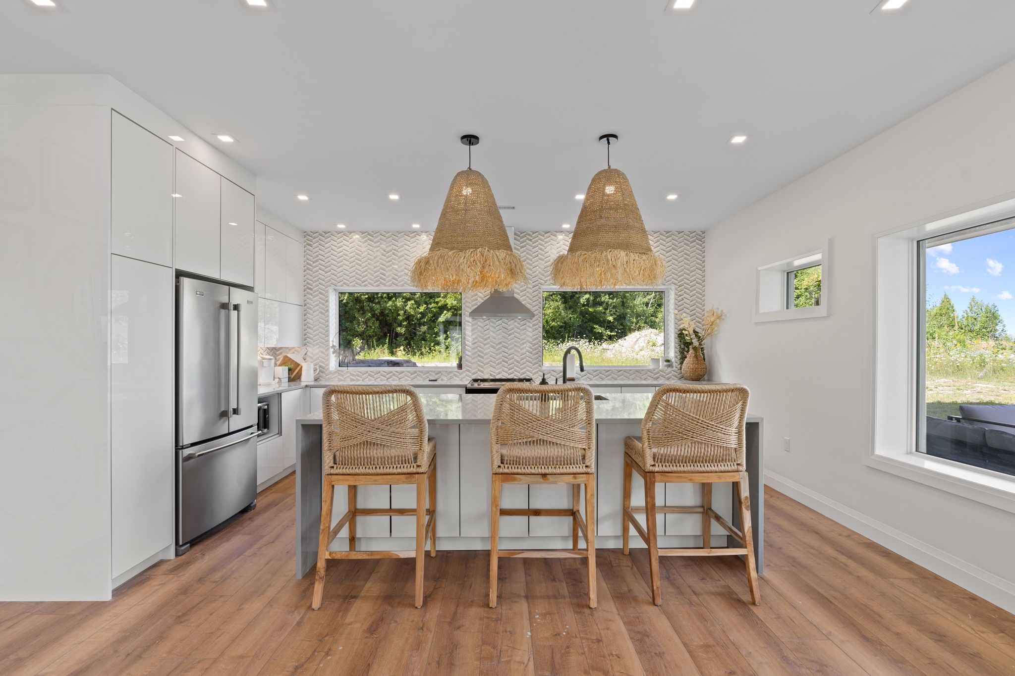 Attention builders, investors, developers!! 2. 743 acres with 5 separately deeded properties. Of those 4 are vacant lots with possibility of turning 3 of those into 7 lots on the waters side to build 7 custom homes, plus 294-foot-wide lot with stunning custom home with views of georgian bay at the end of dead-end street! Of 2. 743 acres only 0. 5 acres are not on water side and remainder on georgian bay. Build the homes and sell for maximum profit. Where else can you find this size of acreage on the water 30 minutes from barrie and 1 hour and 20minutes from pearson airport??!! The existing 2021 home (non water side but water views) is a modern crossed with bohemian vibe and is straight out of a magazine. Enjoy the pink and purple regular sunsets or nature at your doorstep with tons of trees, the tay trail with over 18kilometer's to explore or waubaushene beach and pier just a short walk away. 5 minutes to 400 hwy, lcbo and tim hortons, 30 minutes to barrie, 80 minutes to pearson airport. Waubaushene's quiet loving town will win you over. Home painted benjamin moore march 2025