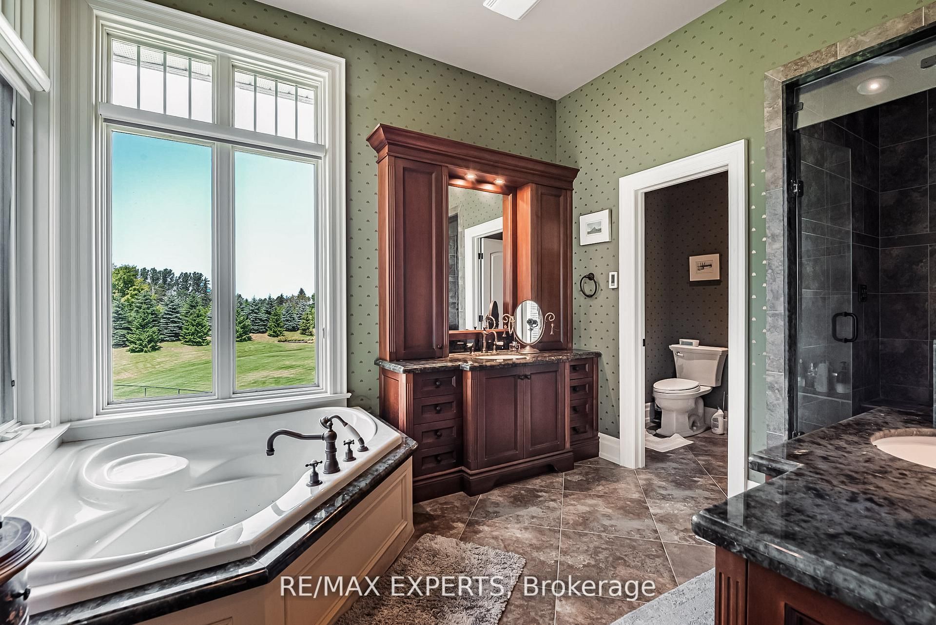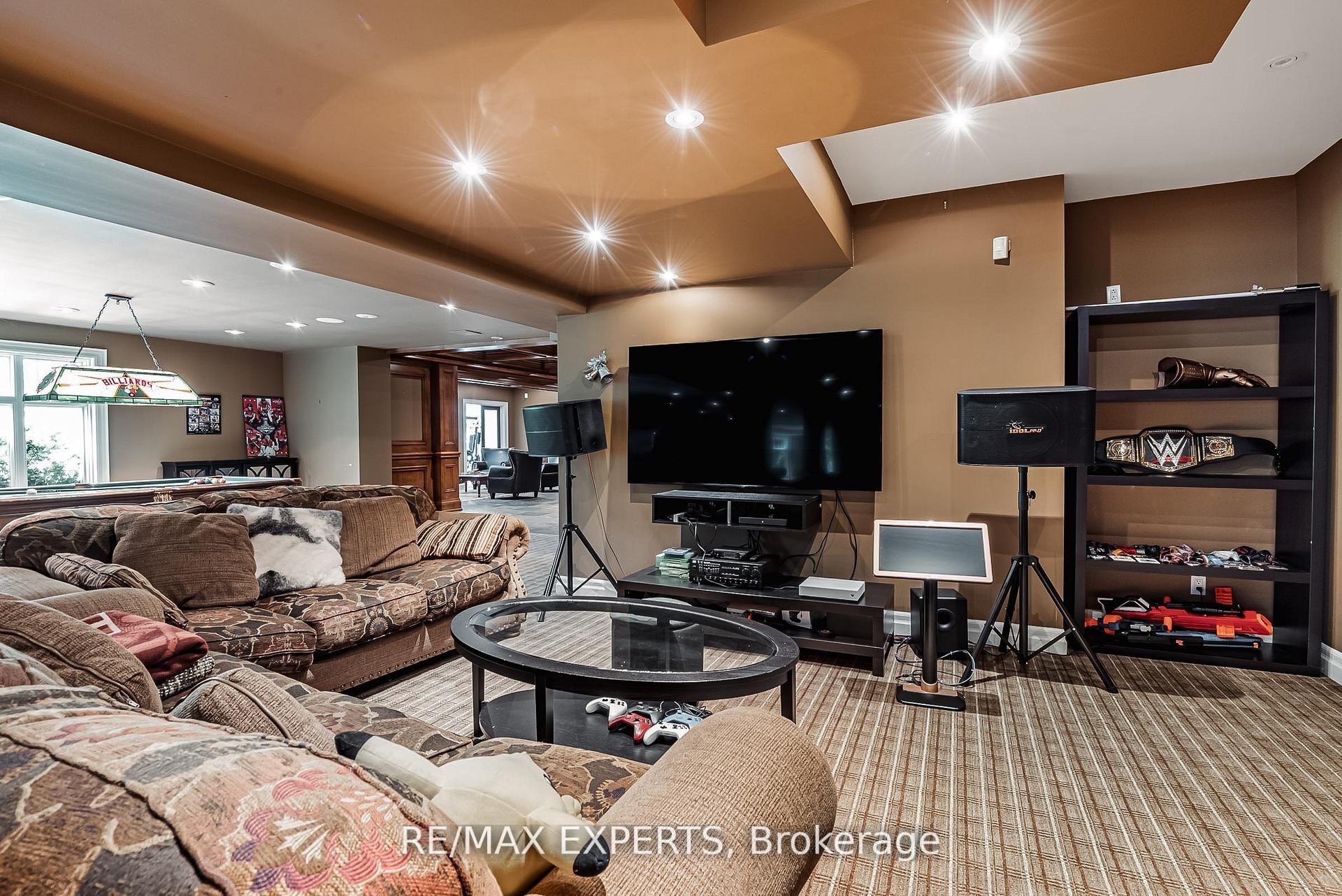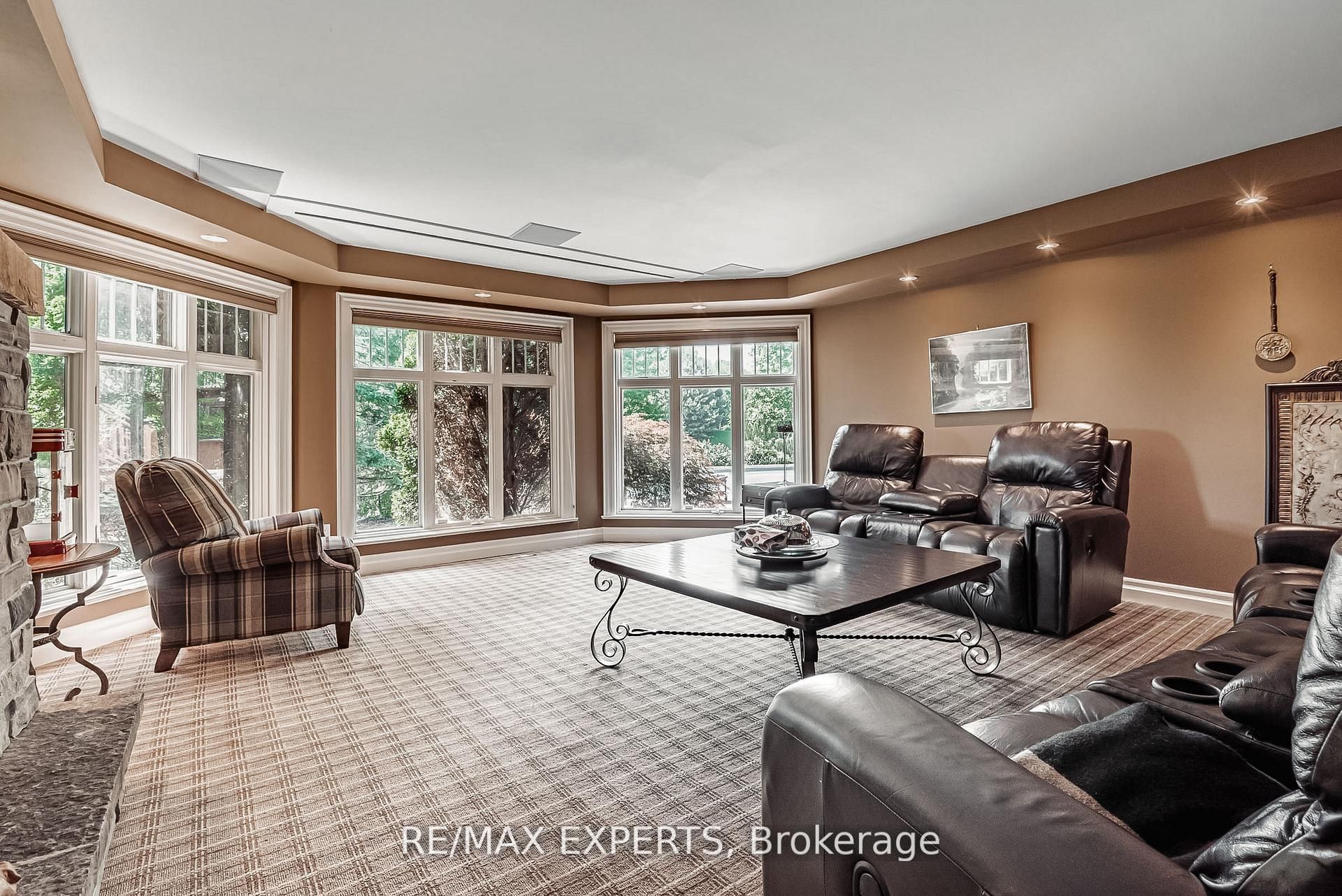 A must-have for sports enthusiasts - previously owned by legendary canadian hockey goaltender curtis joseph welcome to this stunning executive bungalow nestled on nearly 2 acres in the prestigious enclave of aurora estates. Boasting over 5,100 sq. Ft of pure luxury, this home features 10-foot ceilings, 8-foot doors, and exceptional designer finishes throughout. Step into the sunken living room with a two-sided fireplace, perfect for entertaining or relaxing in style. The grand primary suite offers a spa-like 7-piece marble ensuite and an enormous walk-in closet. The gourmet kitchen is a chef's dream, equipped with a wolf stove, sub-zero refrigerator, and elegant custom cabinetry. The fully finished walk-out basement is a true entertainer's paradise, featuring a pub, wine cellar, gym, hockey training room, games room, home theatre, and direct access to a beautifully landscaped yard with pool, cabana, hot tub and multiple sitting areas with wood burning fireplaces. For the car enthusiast, there's also a newer detached 2-car garage in addition to the main 3 car garage.