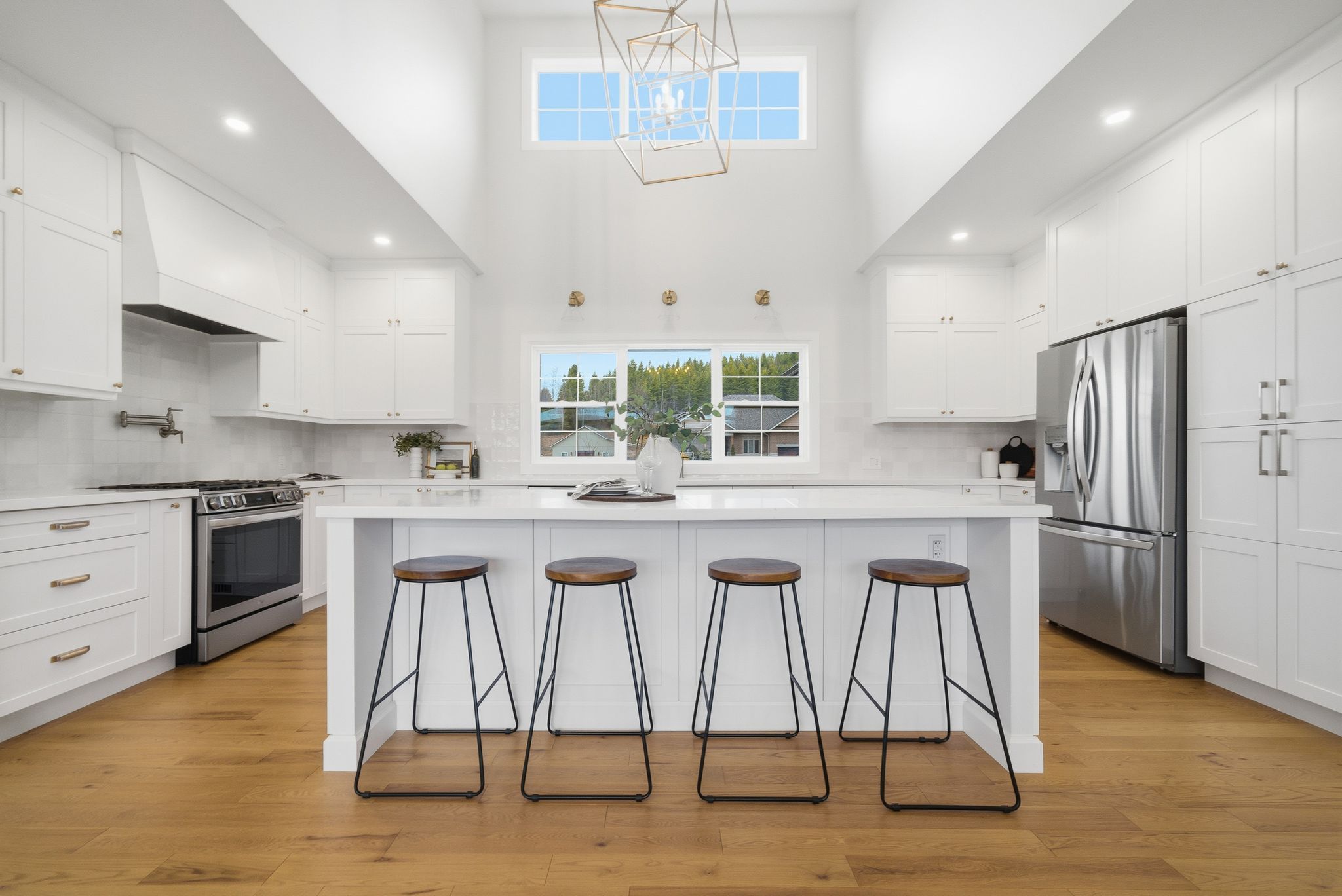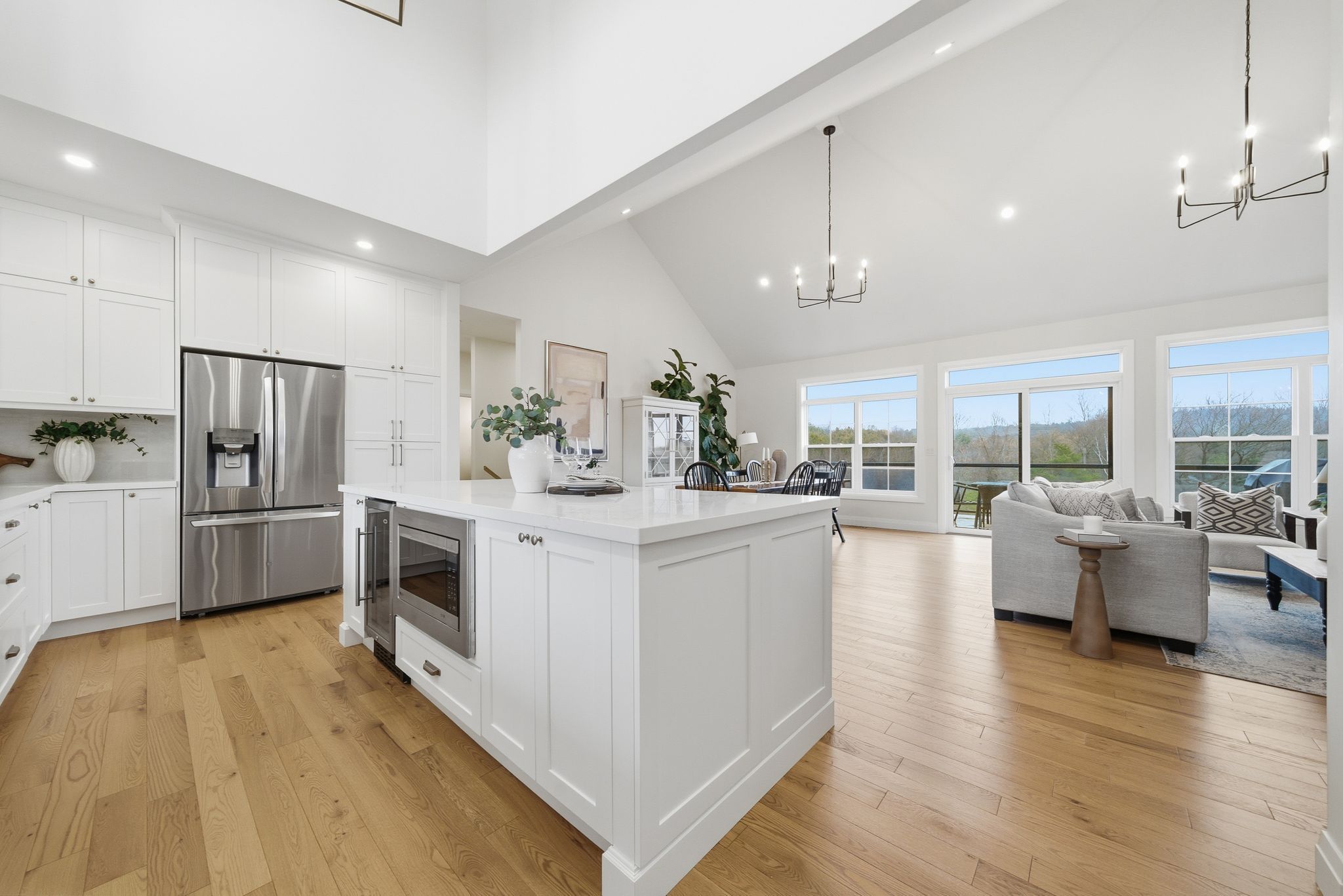 • Gourmet kitchen features stainless steel appliances and a large center island.