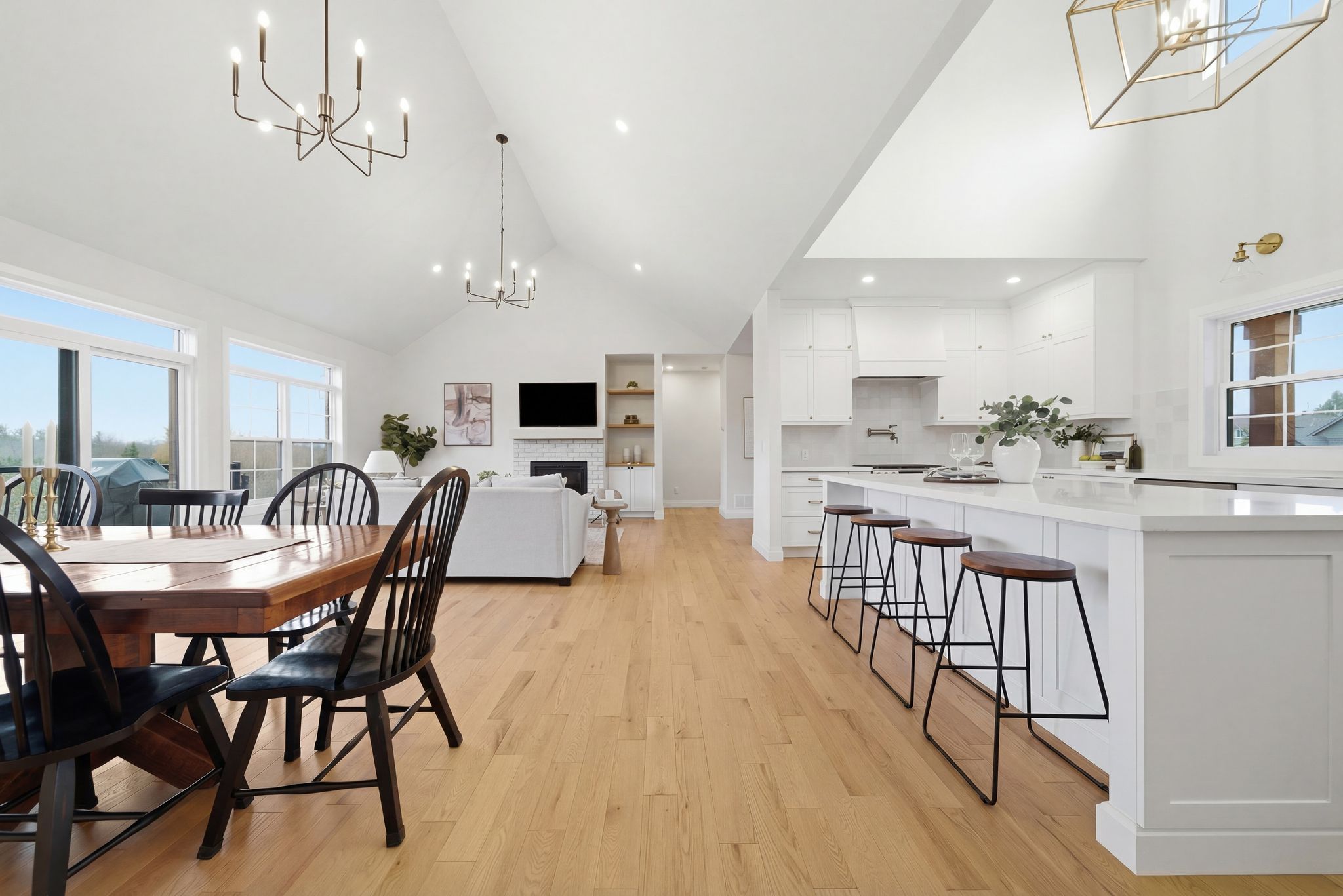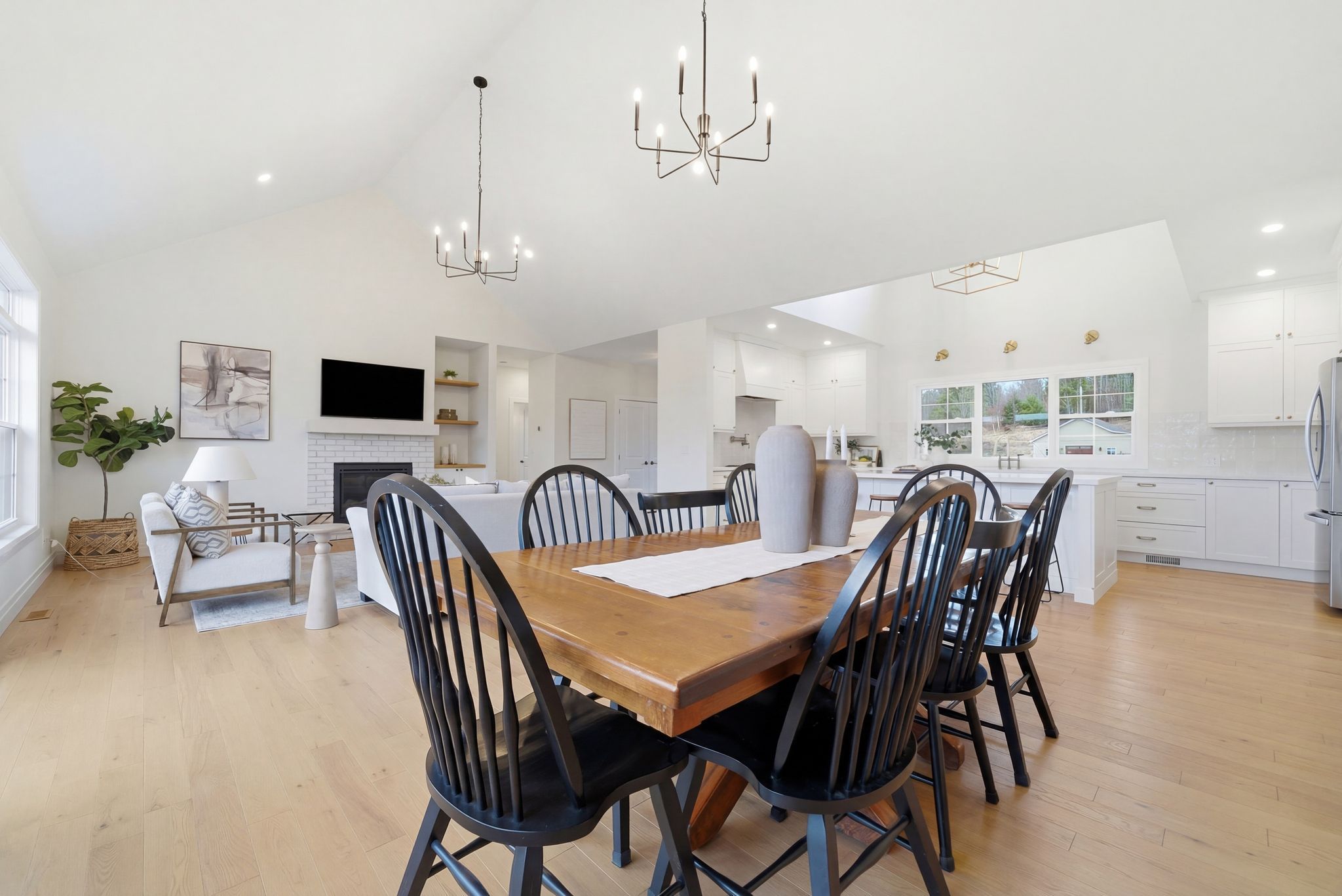 • Open-concept main floor with 9 foot ceilings and a cozy gas fireplace.