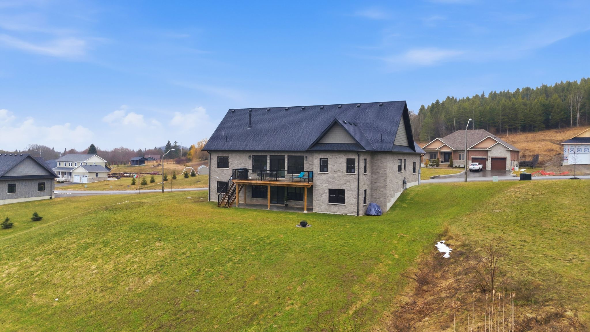 Set on a sun-filled 1 acre lot this 2,050+ sq ft bungalow offers a fully finished, 3 + 2 bed, 3. 5 bath, walk-out floor plan combined with a calm country feel just 10 minutes from cobourg & highway 401. From the stone and brick exterior, oversized two-car garage with insulated doors, stamped concrete walkway and a covered front porch, the home welcomes you into an open-concept main floor designed for everyday living and gathering! With engineered hardwood flooring throughout the main level, 9 foot ceilings, and pot lighting guiding you through a spacious living room anchored by a gas fireplace & built-in shelving, and walkout to the upper level deck! Appreciate a formal dining area, and the expansive, executive kitchen with double height cabinets, floor-to-ceiling pantry, a bright transom window, stainless steel appliances, pot filler, built-in beverage fridge & microwave, quartz counters, a large centre island island and plenty of room to move. Overlooking both the living & dining room, this is truly the heart of the home. The private primary suite is set apart with a walk-in closet and stunning 5pc. Piece ensuite featuring double sinks, a glass and tile shower, and separate soaker tub, while two additional bedrooms and a full 4pc. Bath offer comfortable space for family or guests on the other side of the home! Appreciate a practical mudroom with built-in storage, inside entry to the garage, 2-piece powder room, and separate main floor laundry with custom cabinets, utility sink & quartz counters. The lower level is finished, with a walkout to the stamped concrete patio, 2 additional bedrooms, a 4pc. Bathroom in addition to an expansive rec room and ample storage. A premier location, a friendly street and a back yard yard that invites quiet mornings, evening sunsets, and room to grow, all within reach of town conveniences. A home that balances space, comfort, and location-ready to fit your next chapter.