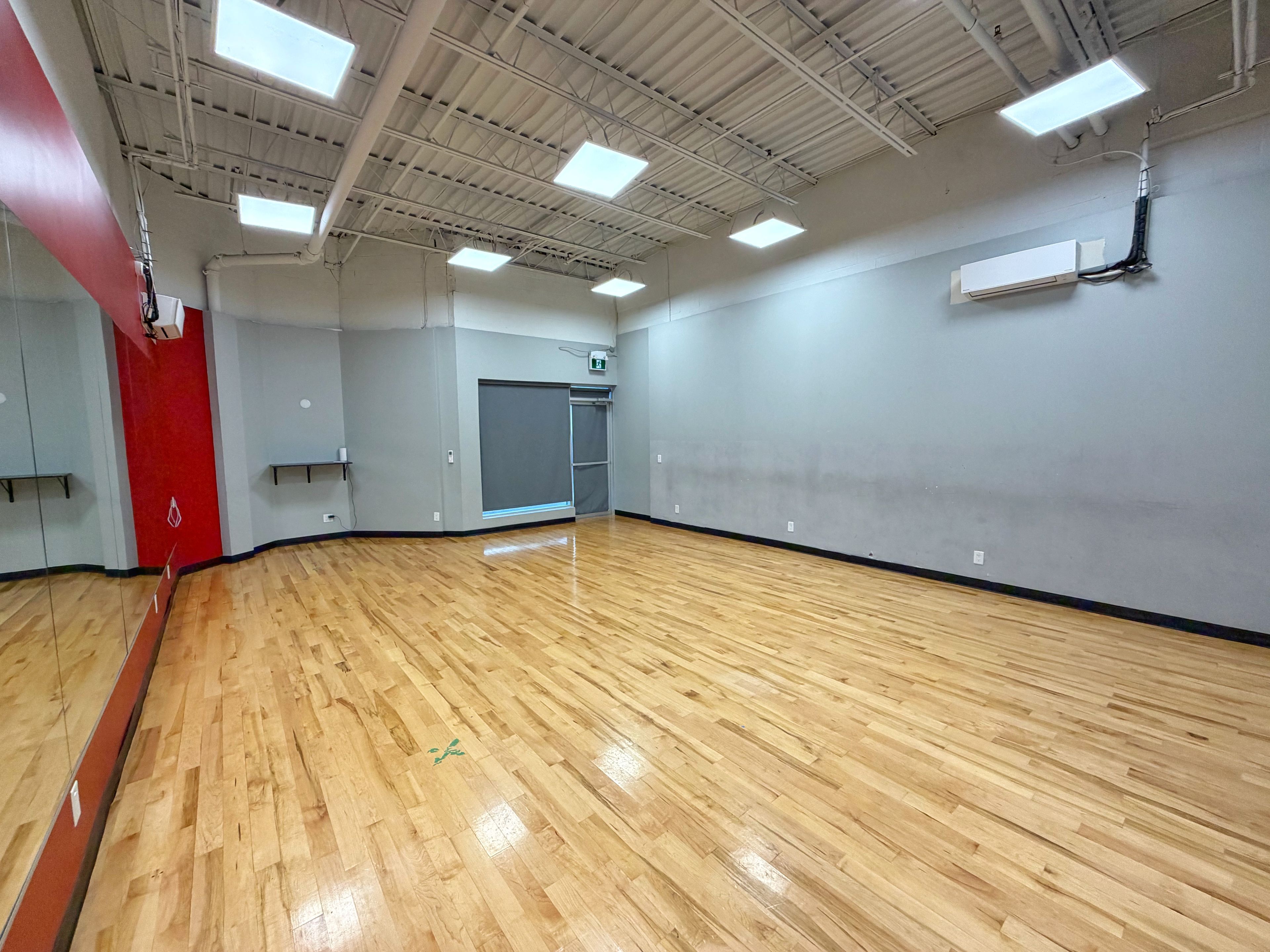 • Main studio features warm hardwood flooring for movement classes.