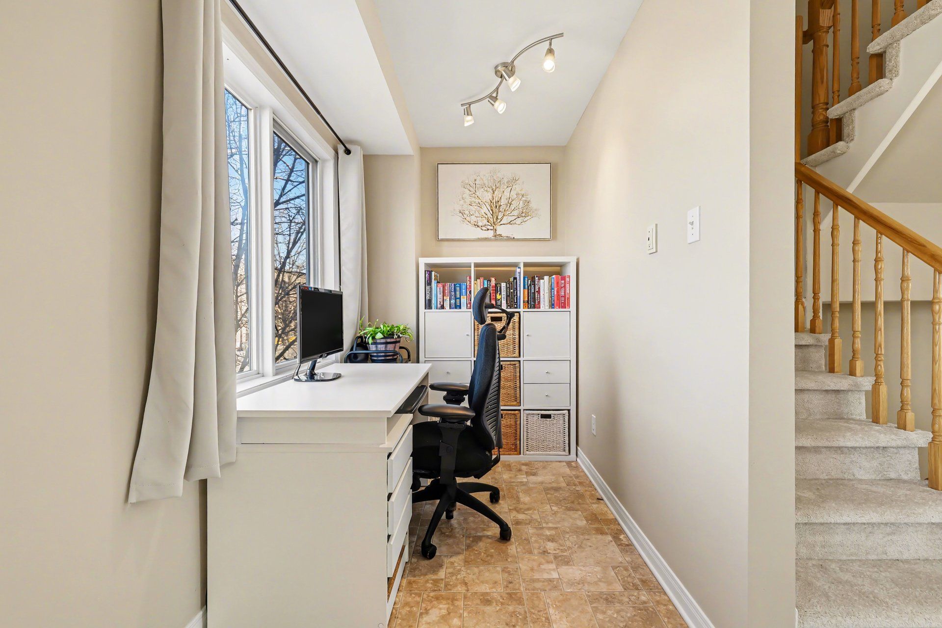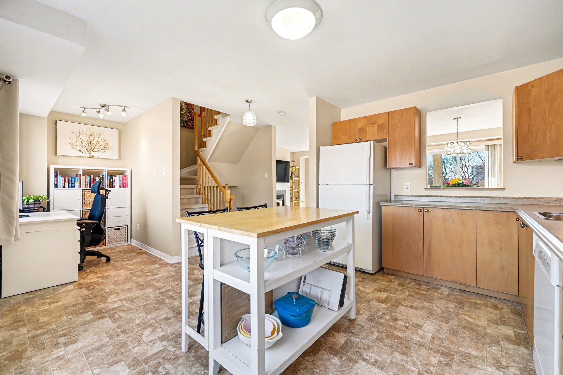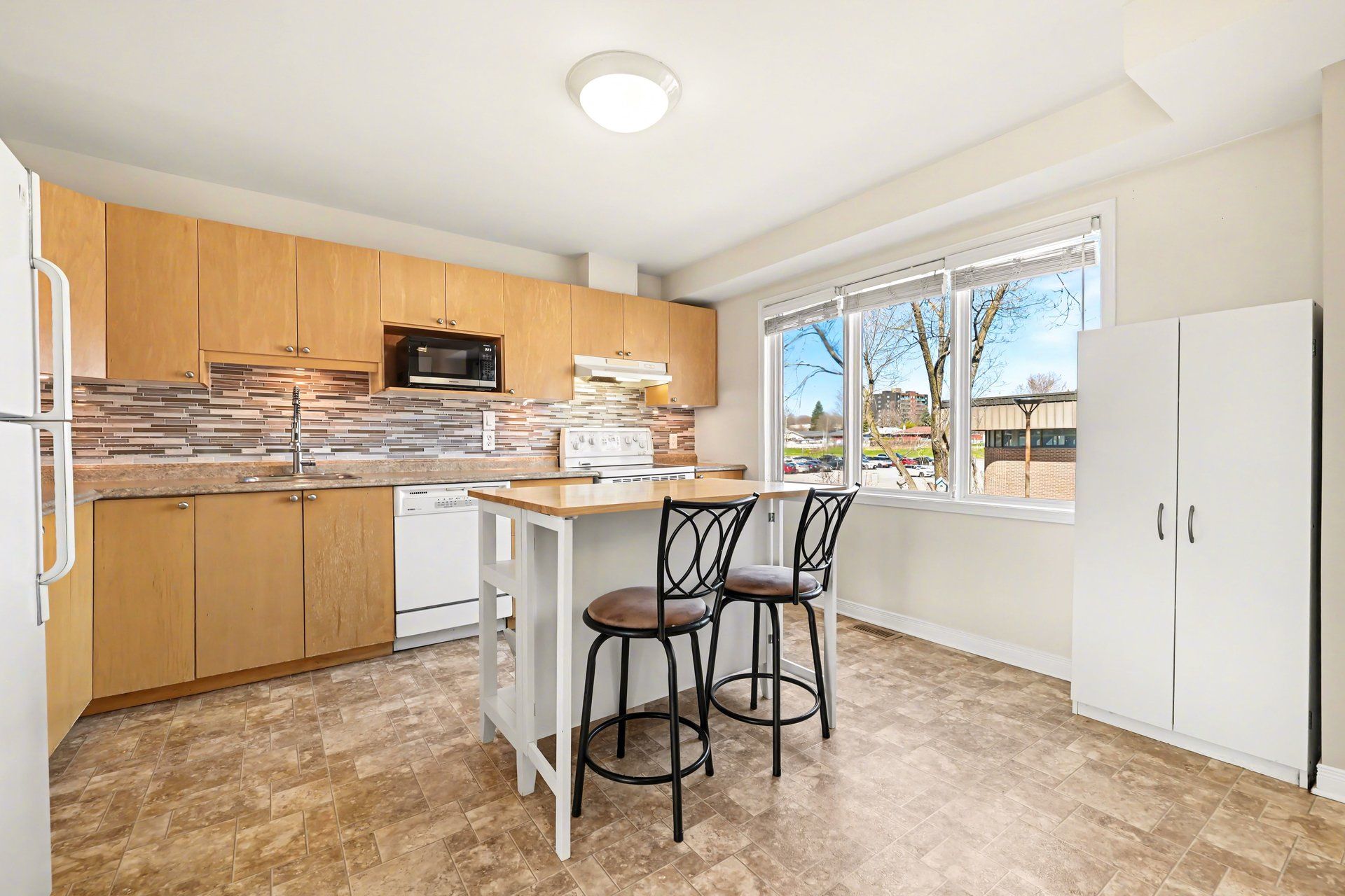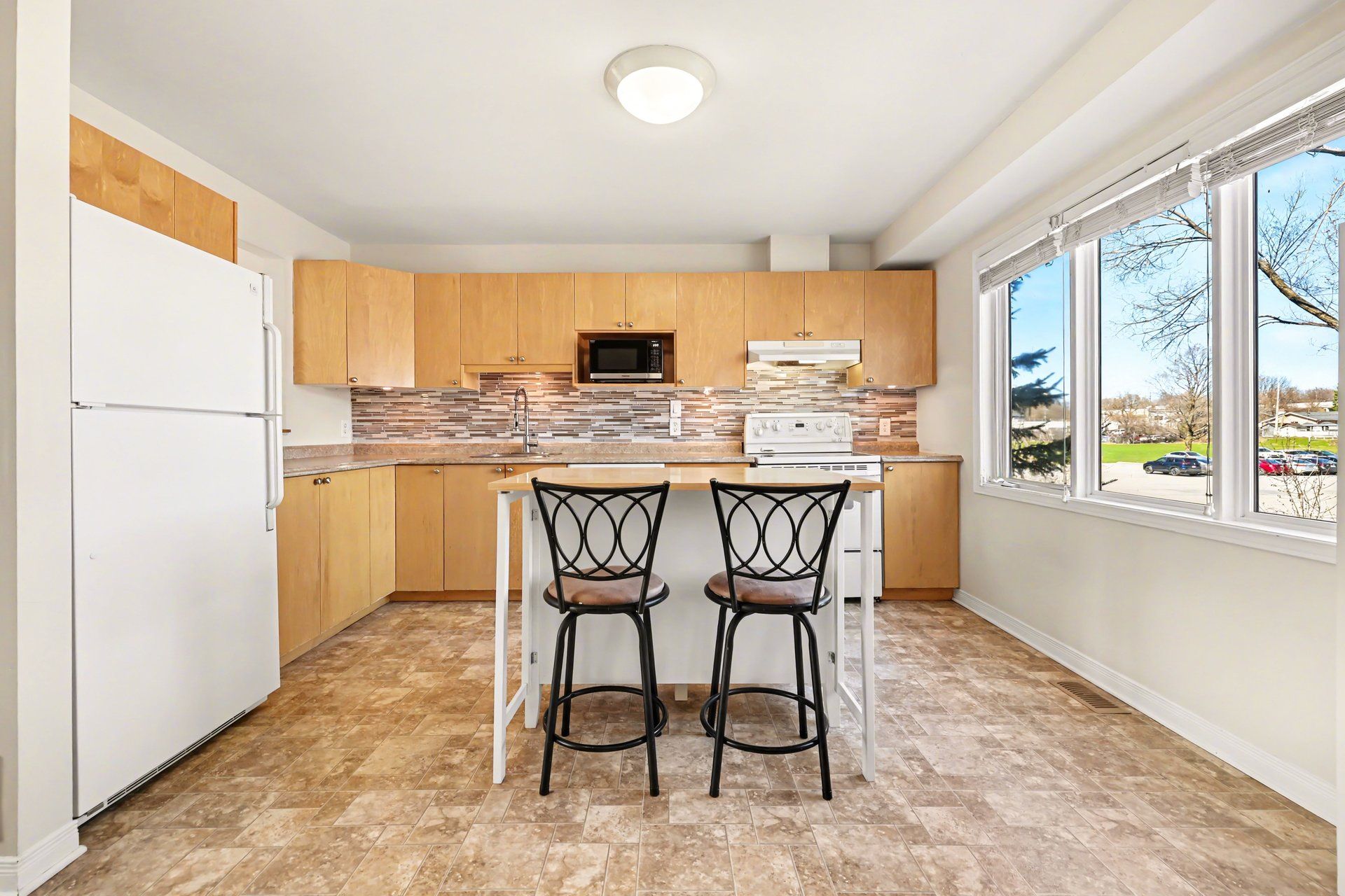 A property that feels like home the moment you walk in! Bright, welcoming, and easy to settle into. This well kept 3 storey townhome offers 2 bedrooms and 2. 5 bathrooms on a quiet, private street just minutes from downtown, transit, shopping, and schools. It is a great fit for anyone looking for comfortable living space, natural light, and a location that keeps everything close at hand. The entry level features a practical foyer with inside access to the garage, a convenient powder room, and a flexible family room or den with walkout to the backyard. Whether you need a home office, gym, or tv space, this level adapts and could be converted into a third bedroom if needed! The fully fenced yard is finished with patio stones for low-maintenance living and backs directly onto parkland, complete with a gate for quick access. Up one level, the main living area feels open and inviting, with a cozy gas fireplace and plenty of room to relax or entertain. The kitchen is thoughtfully laid out, offering ample cabinetry with undermount lighting, an island for extra prep space, an updated backsplash, and a handy office nook tucked just off to the side. The top floor offers two spacious bedrooms. Including a primary with his and her's closets, nice city views, and a private ensuite where bath lovers will enjoy a dedicated jacuzzi tub, set apart from the main shower for a spa-like experience. (nov 2025). New carpet throughout (april 2026) adds a clean, updated feel. Step into the basement for ample storage space. The additional highlights include a heat pump (2023), roof (2015), and no front or rear neighbours for added privacy. Enjoy good natural light throughout, evening sun on the balcony, and shade from mature trees. Backing onto a park with a summer wading pool and winter skating rink, and close to the rideau river pathways, bike routes, and st. Laurent shopping, this home offers a balanced mix of comfort, convenience, and community. Schedule a private viewing today.