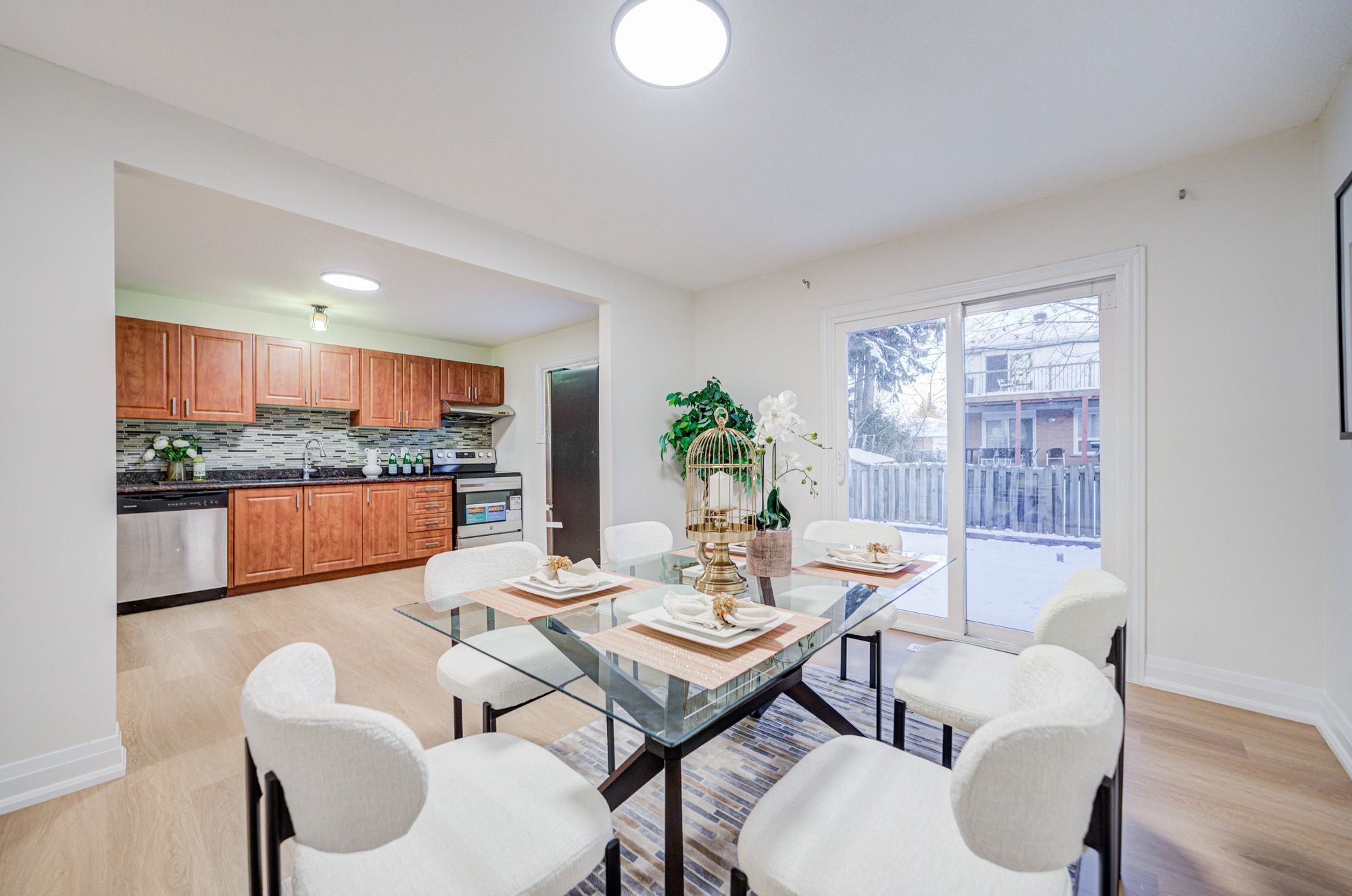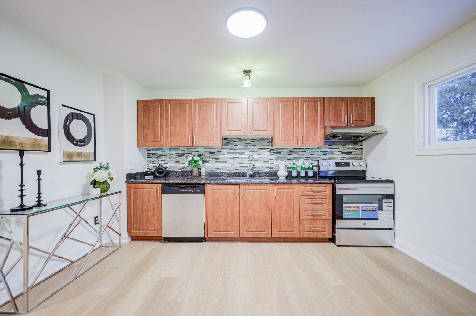• Bright eat-in kitchen with a brand-new stove and fridge.
