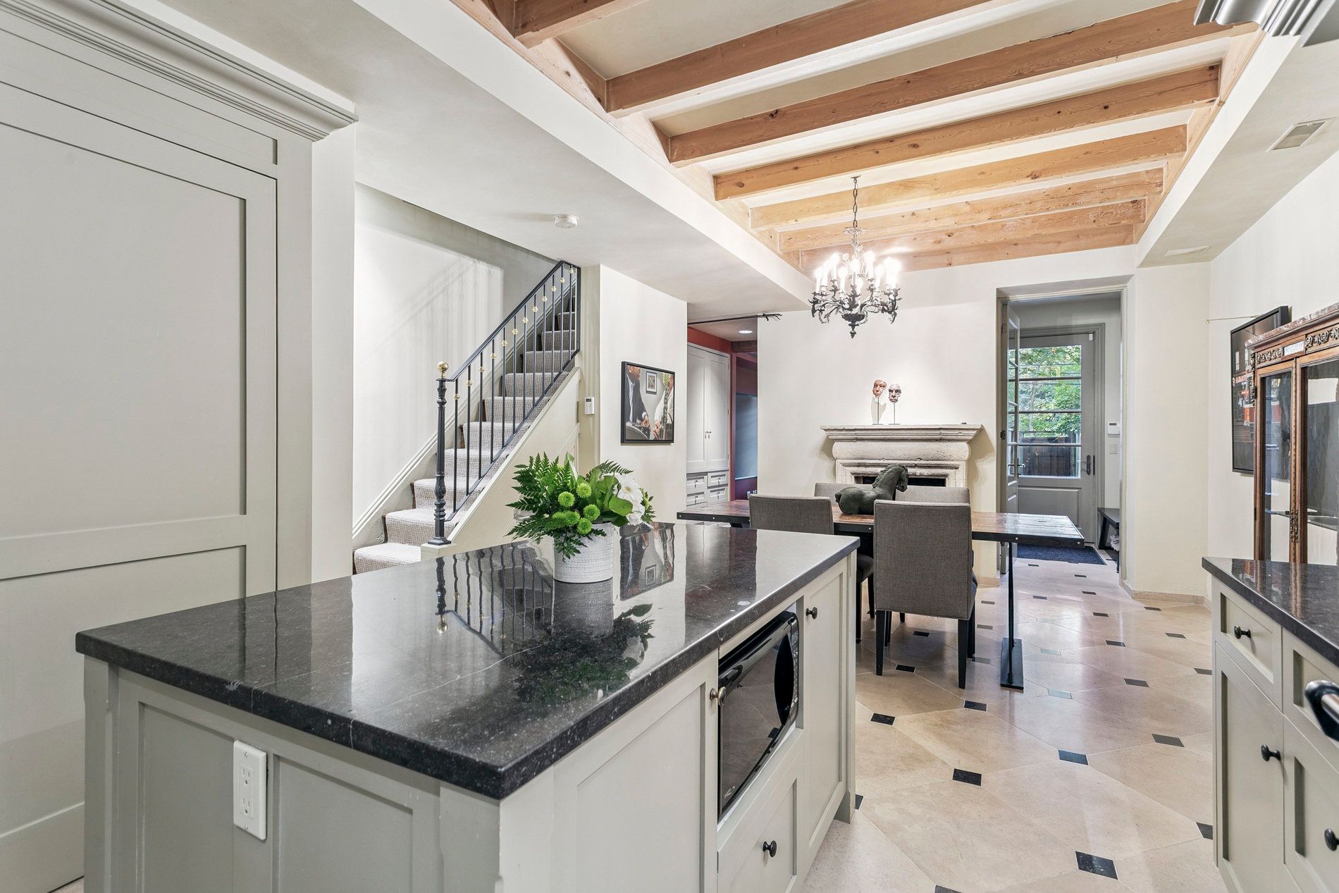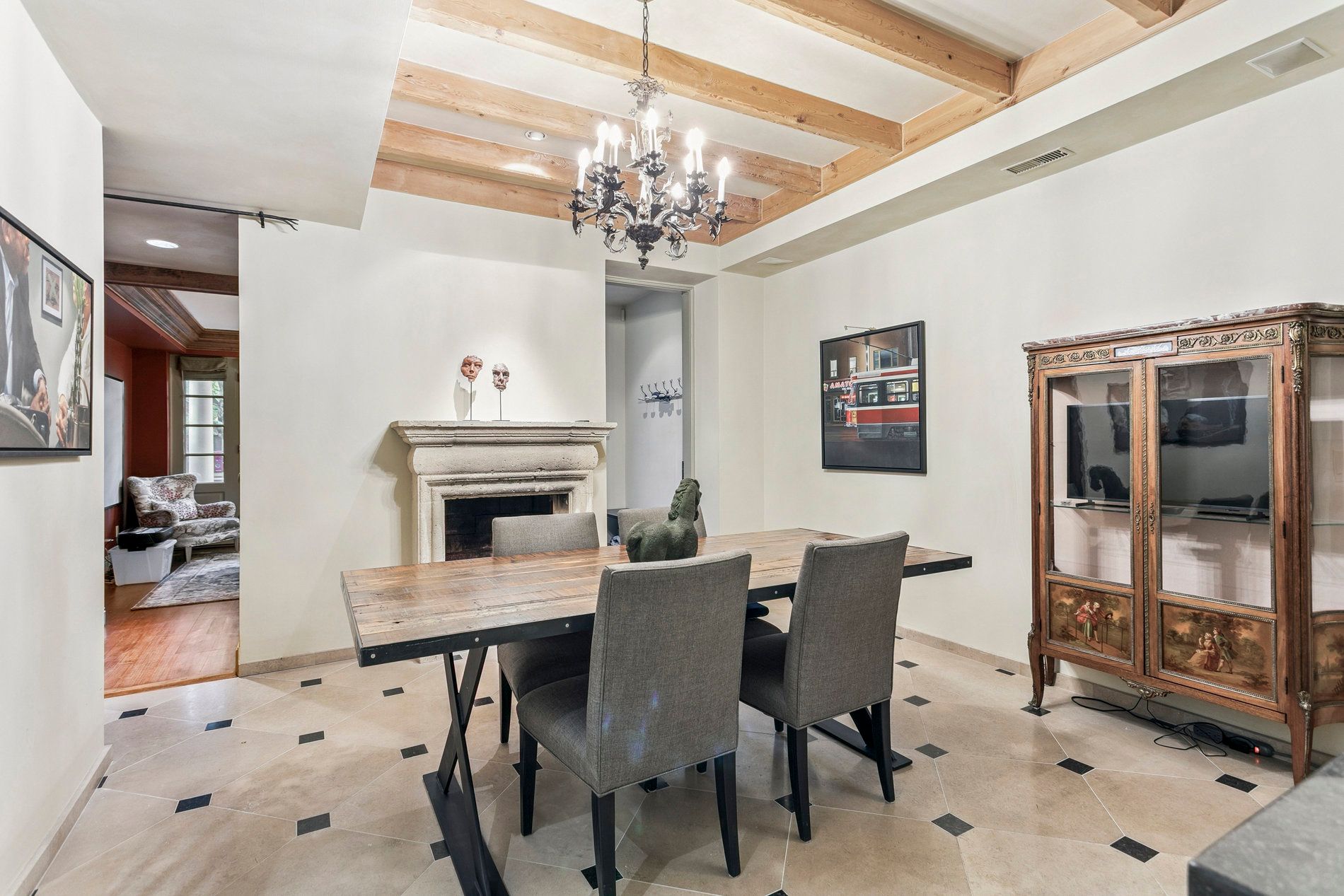 Nestled in the prestigious yorkville neighbourhood, this exquisite renovated 1880s heritage townhouse masterfully blends the charm of an english country cottage with modern luxury. Showcasing the highest standards of craftsmanship, this three-level residence offers over 2,000 square feet of refined living space, where warmth, character, and european-inspired sophistication abound. The thoughtfully designed interior features antique elm flooring, limestone gas fireplaces, custom millwork and soaring ceilings that flood the home with natural light. Every detail reflects a commitment to timeless quality and elegance. The main floor welcomes you with a gracious foyer leading to a formal living room highlighted by a bay window and limestone fireplace. A bespoke library, complete with intricate millwork and built-ins, opens through french doors onto a balcony overlooking the serene greenery of ramsden park. A stylish powder room with imported parisian wainscoting adds to the charm of the home. The home features a country-style eat-in kitchen, equipped with an iconic aga stove, walk-in pantry, belgian blue stone countertops, custom cabinetry, elm ceiling beams, and heated french limestone floors. The adjacent dining and family rooms (or optional guest bedroom) flows into a landscaped, french-inspired garden. The serene primary bedroom features custom built-ins, a walk-in closet. There is a spa-like five-piece bathroom with carrara marble and limestone. The second bedroom features wood-panelled cathedral ceilings, skylight, and juliette balcony overlooking treetops, offering a tranquil hideaway. Designed with flexibility in mind, the home accommodates 2 to 4 bedrooms and includes the rare convenience of two-car parking via the laneway. Ideally located just steps from yorkville's renowned boutiques, fine dining, top-rated schools, parks and has easy access to rosedale subway.