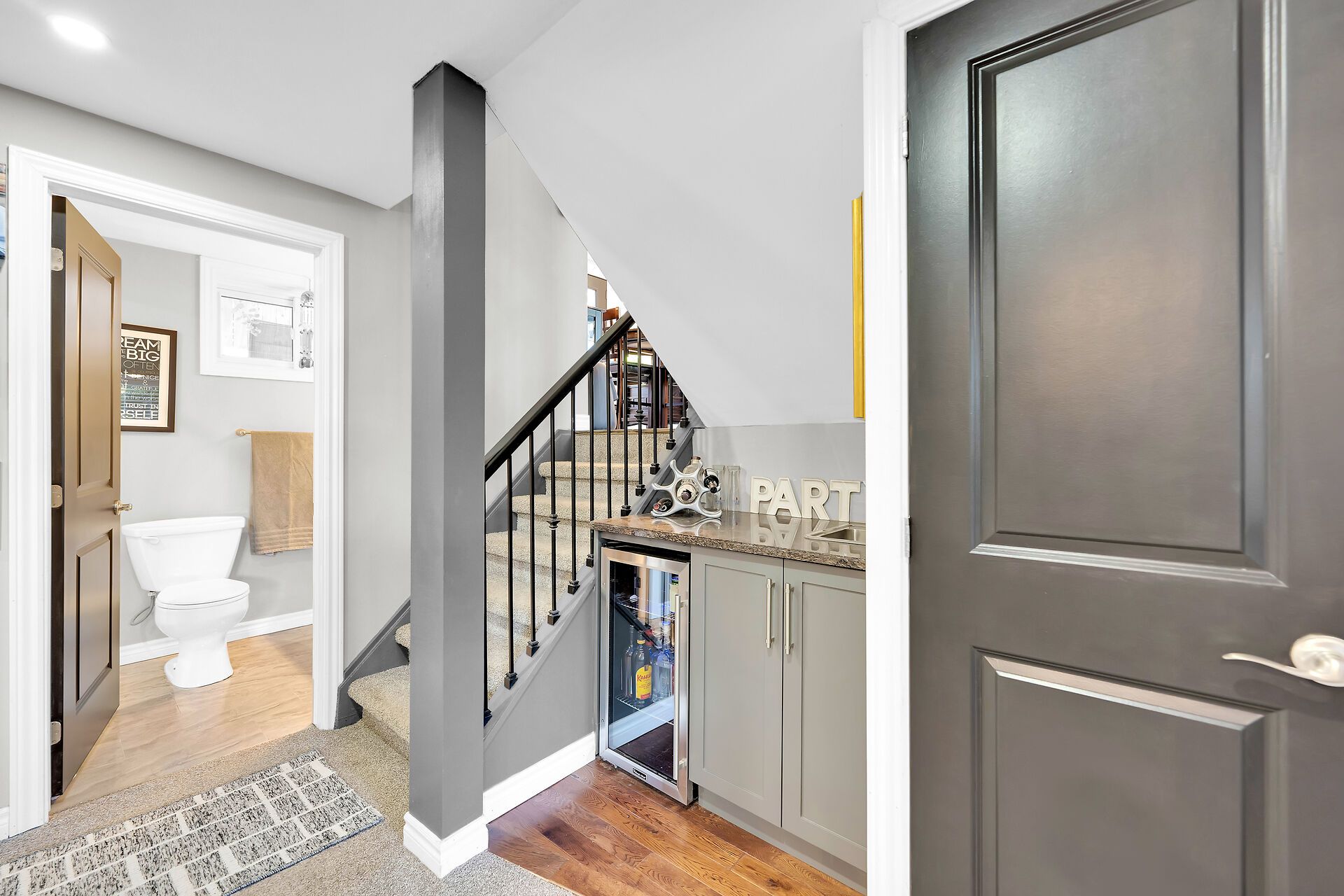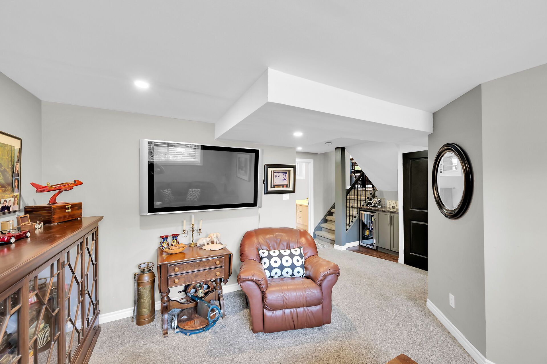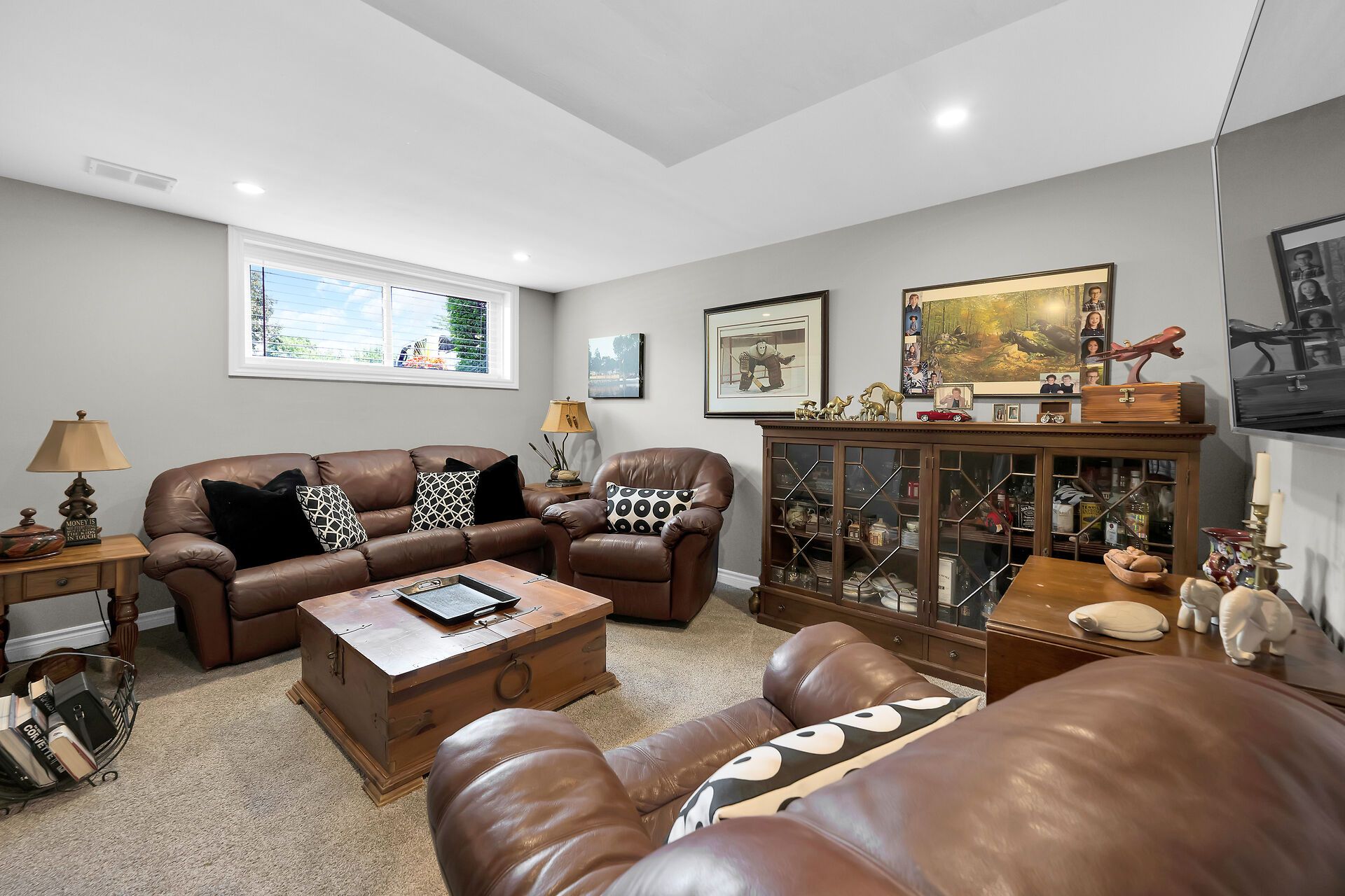 • Bright lower-level rec room with wet bar and additional bedroom.