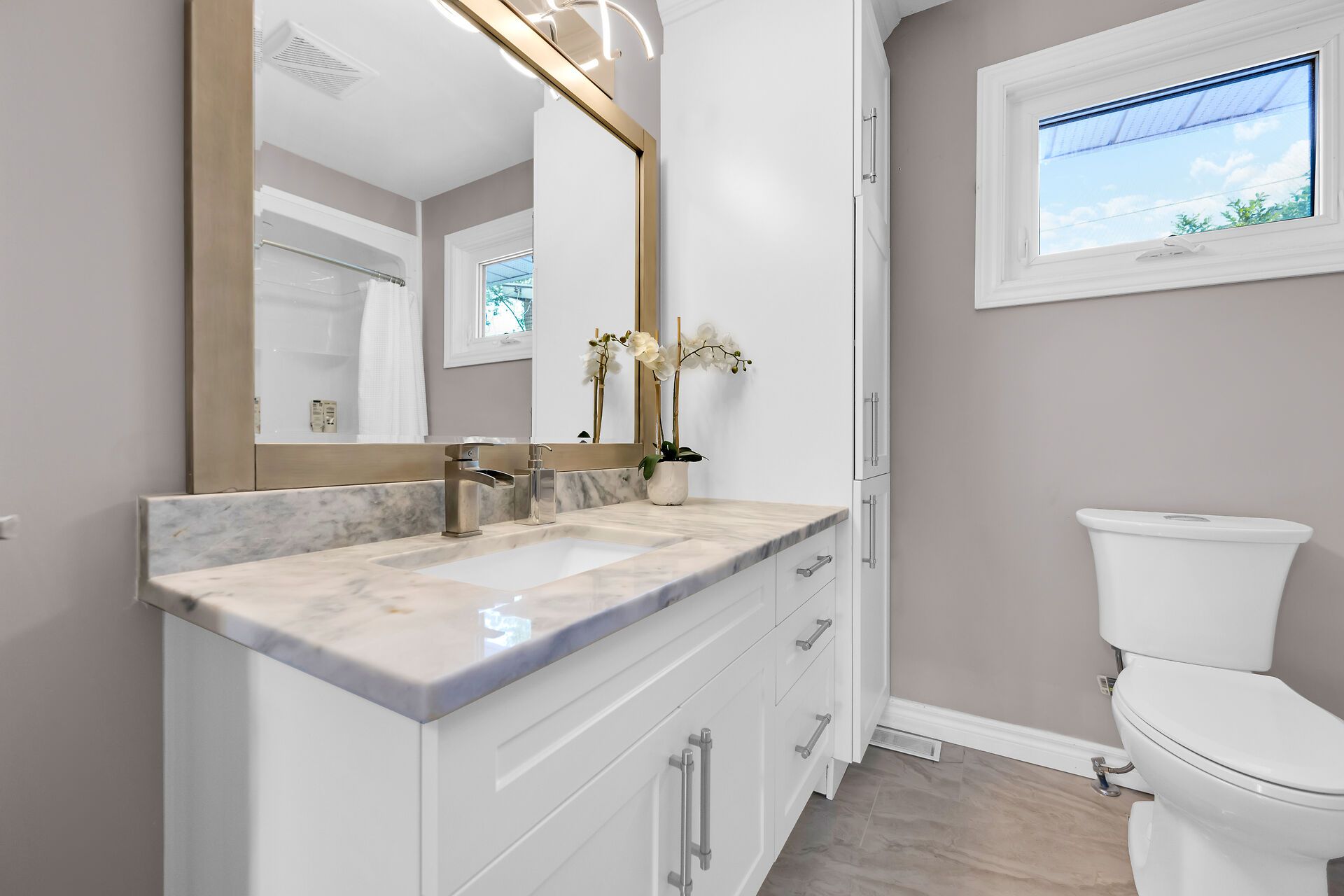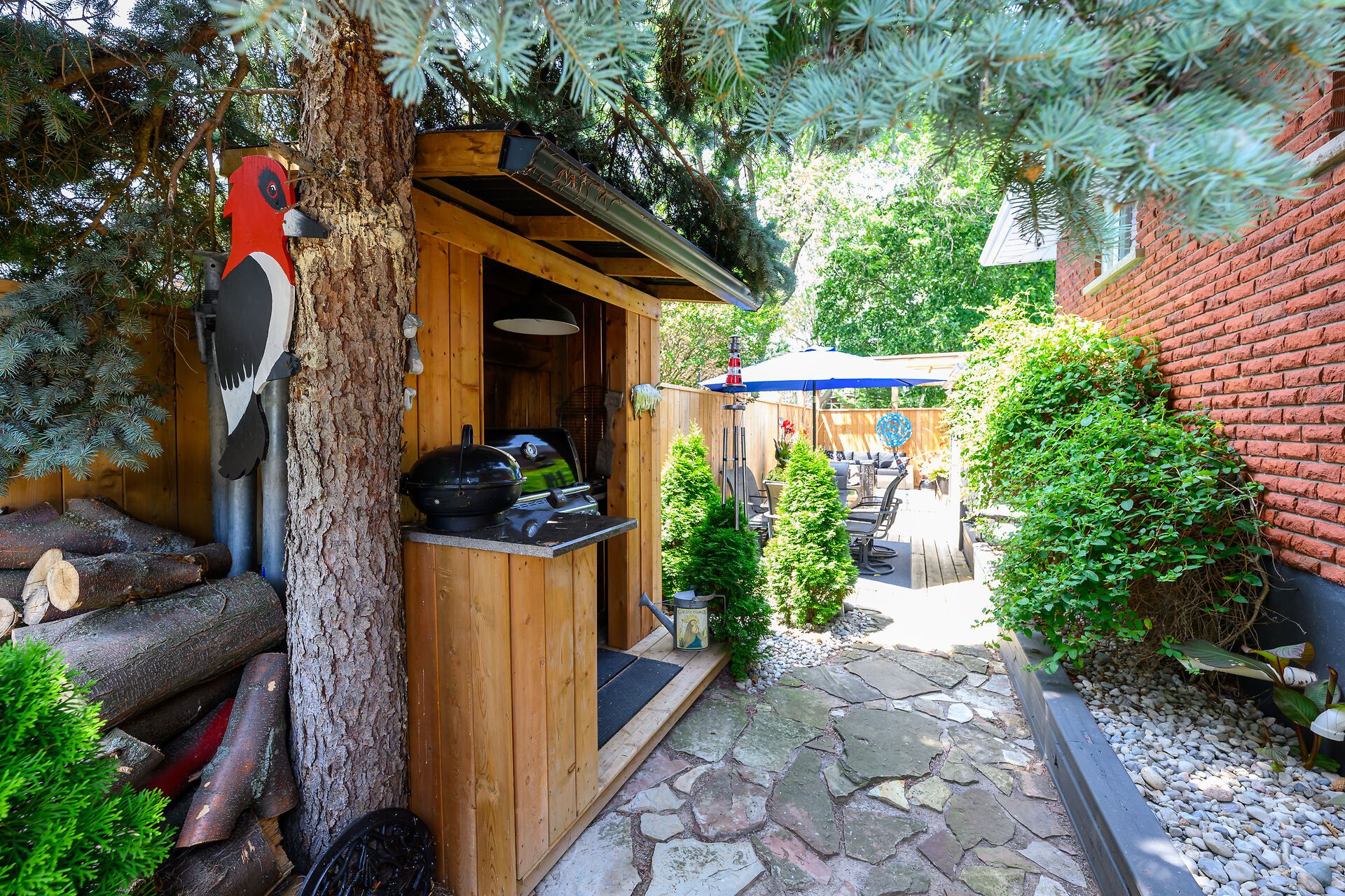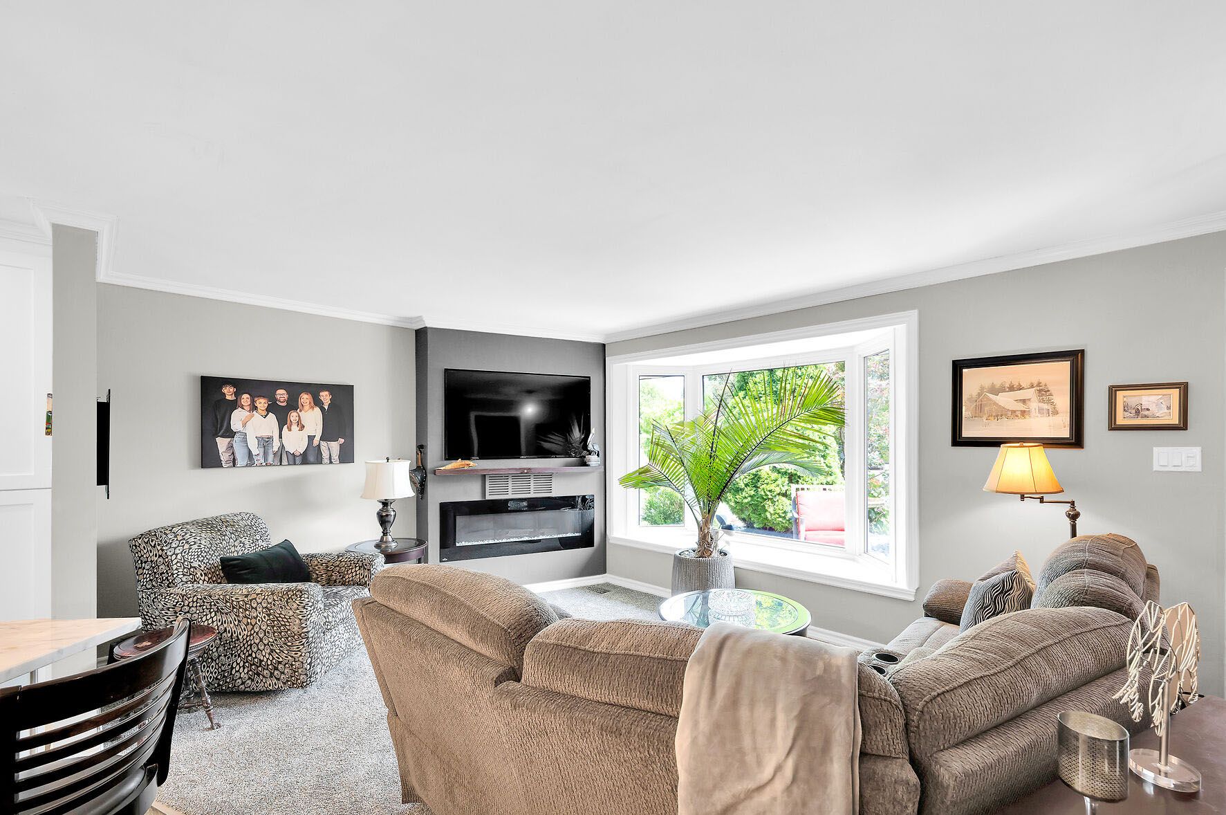 • Bright lower-level rec room with wet bar and additional bedroom.
