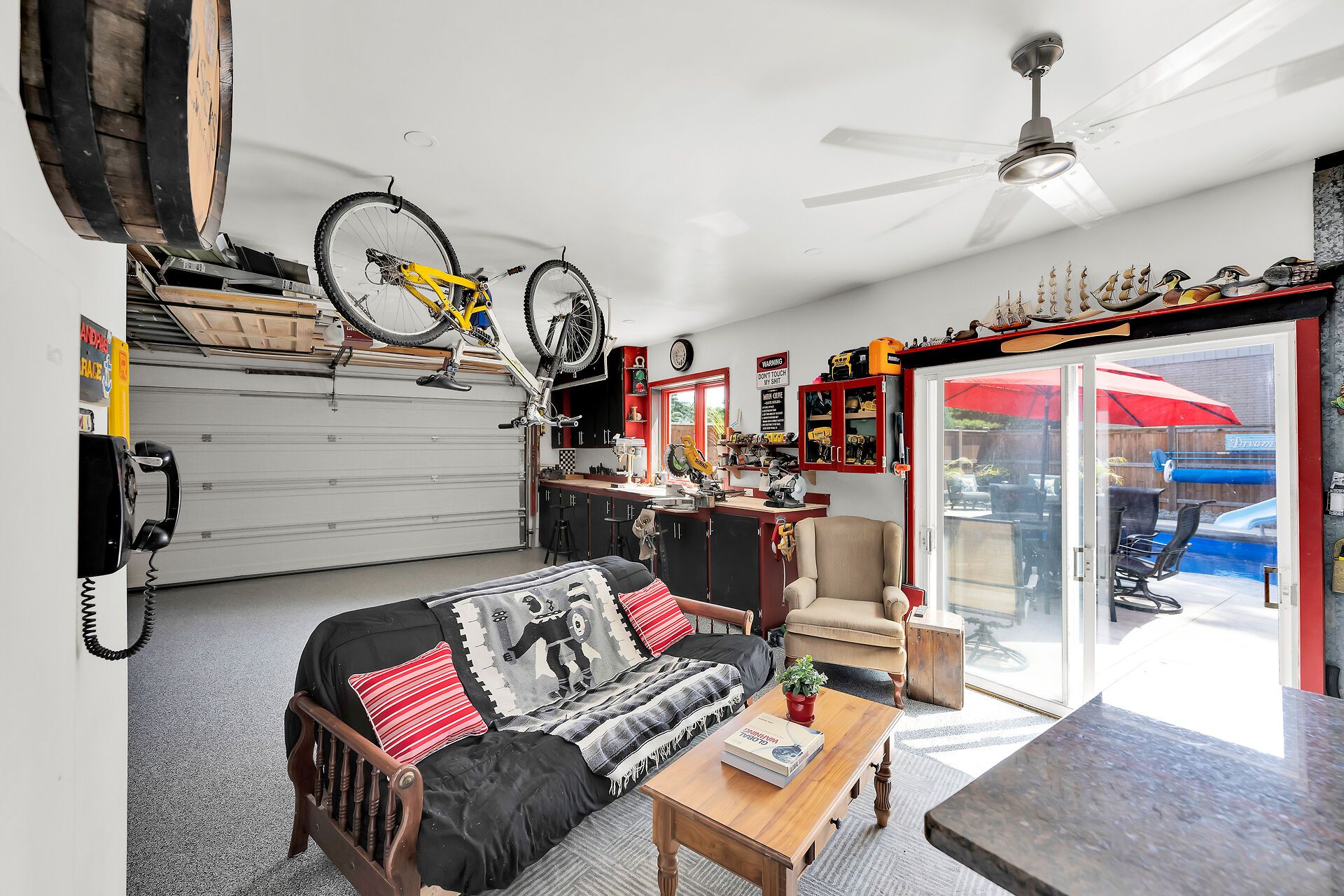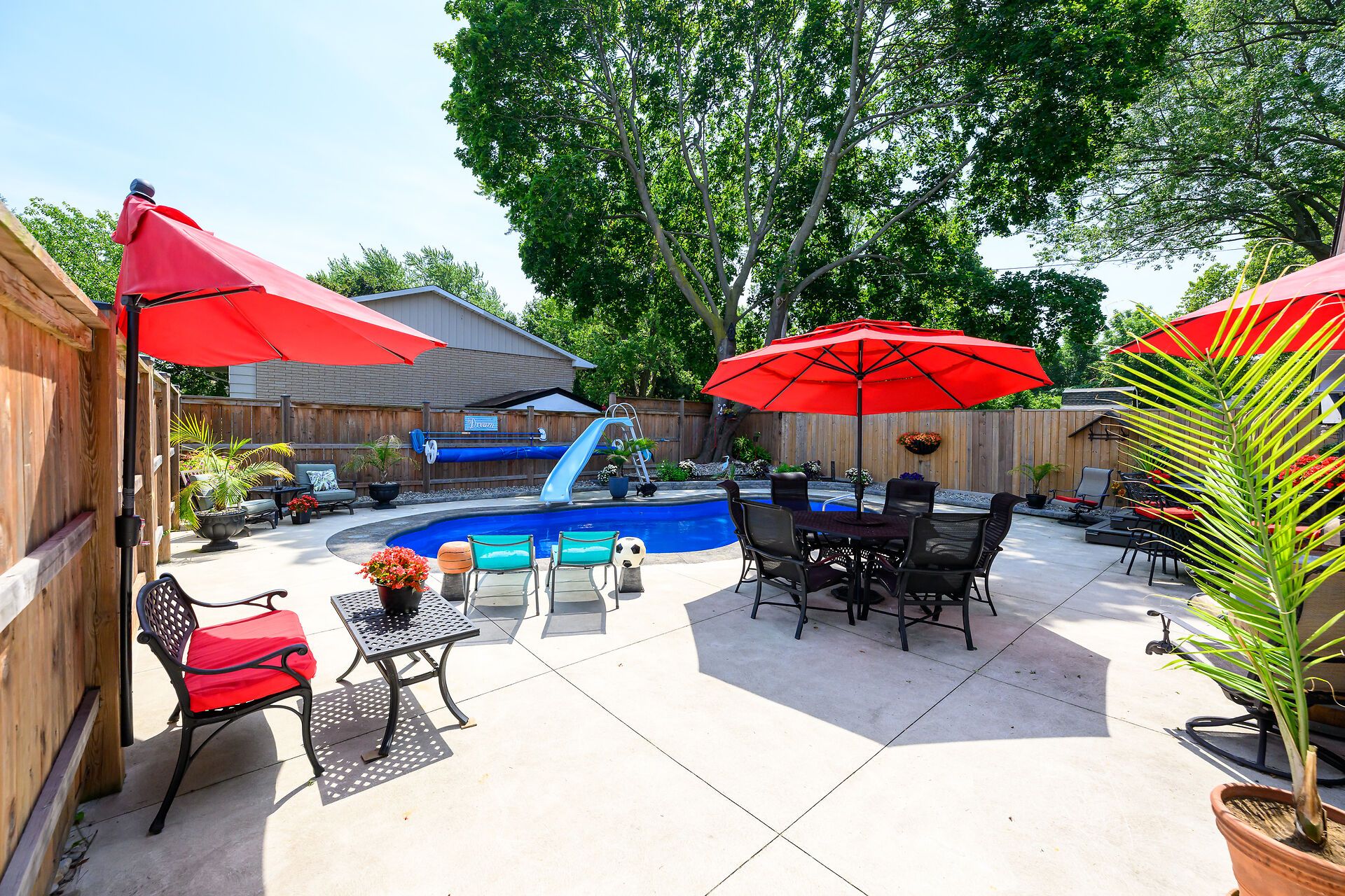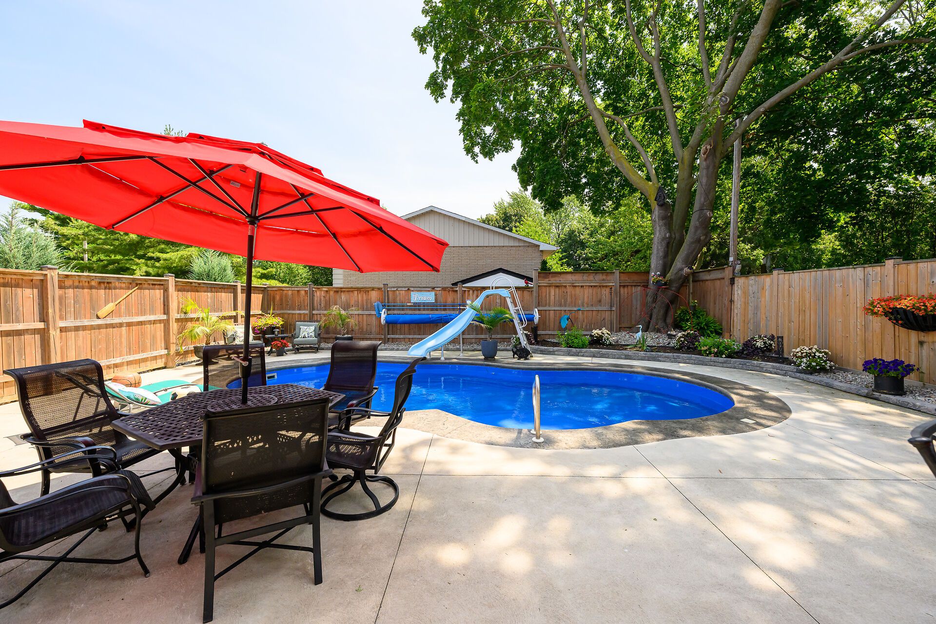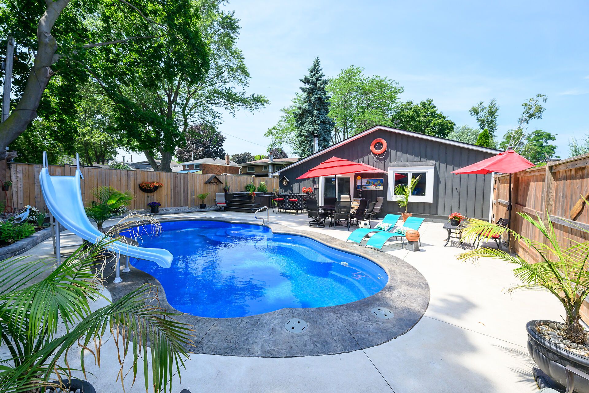 • Private backyard oasis featuring a heated saltwater pool and hot tub.
