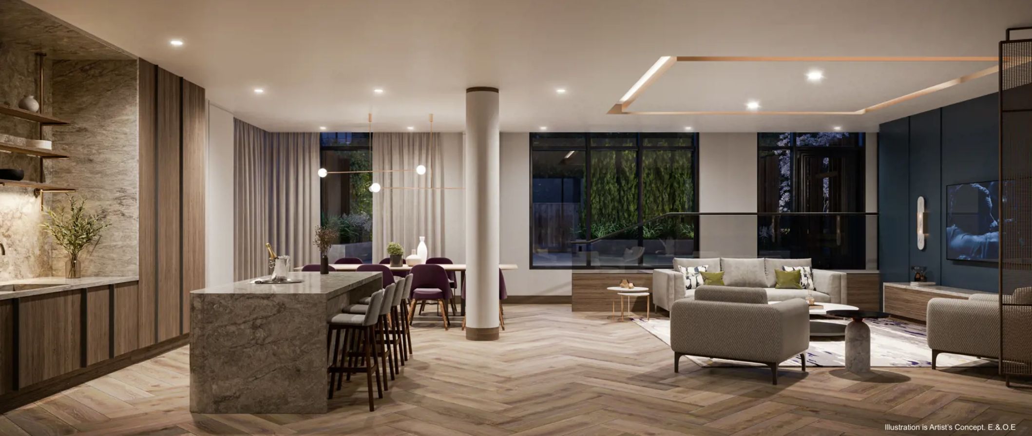 • Bright open-concept layout with access to a sun-filled balcony.