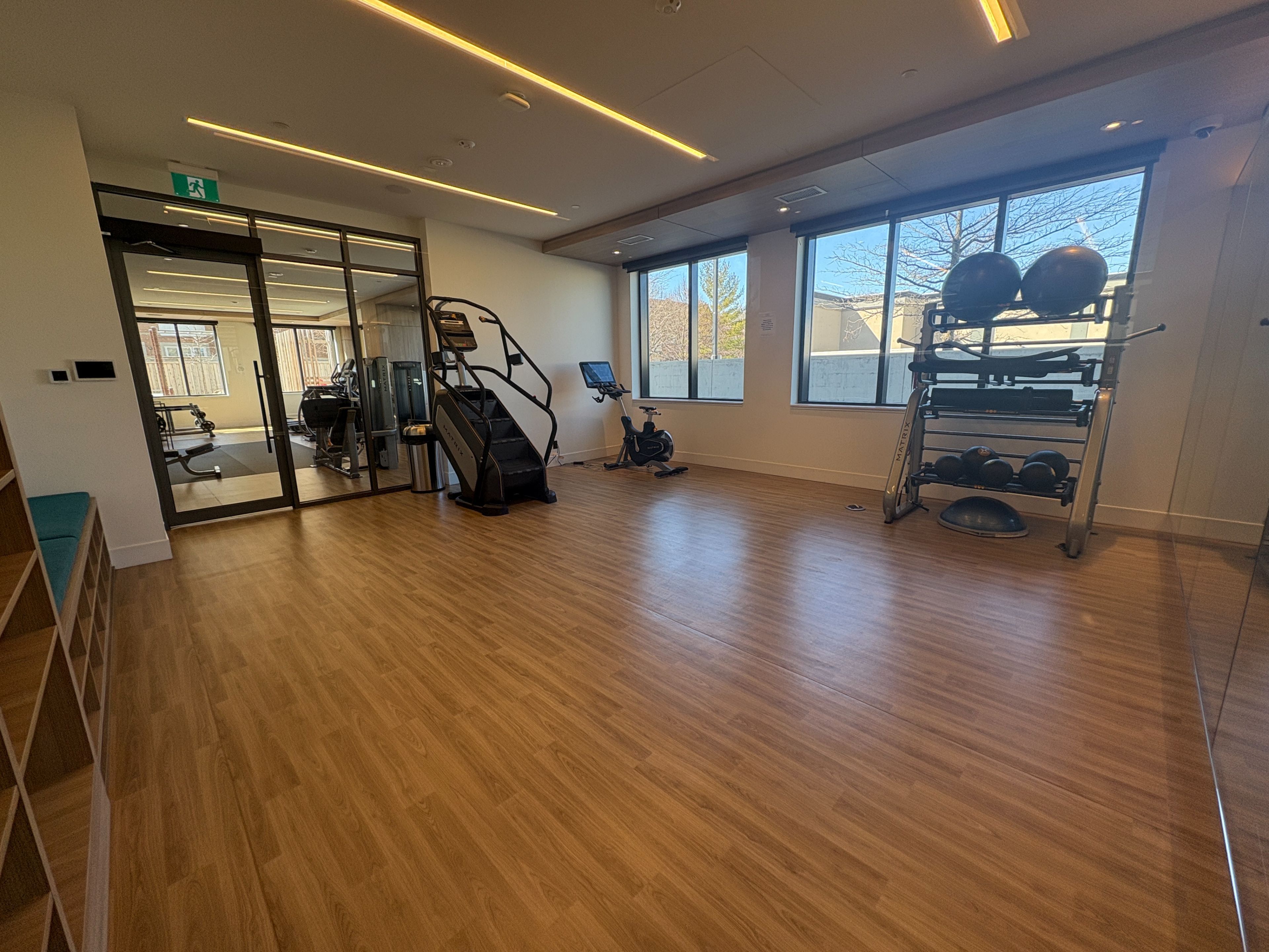 • Building amenities include gym, party room, and outdoor BBQ area.